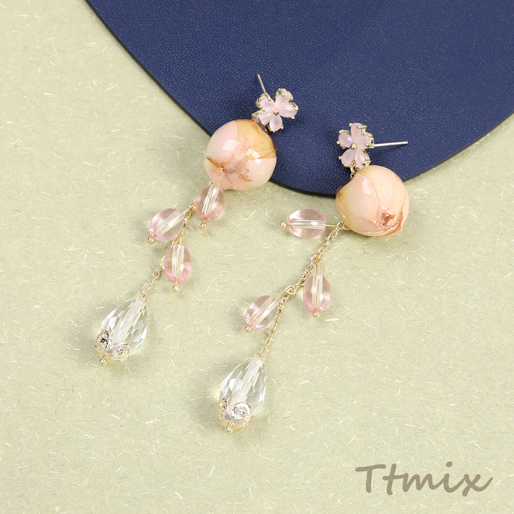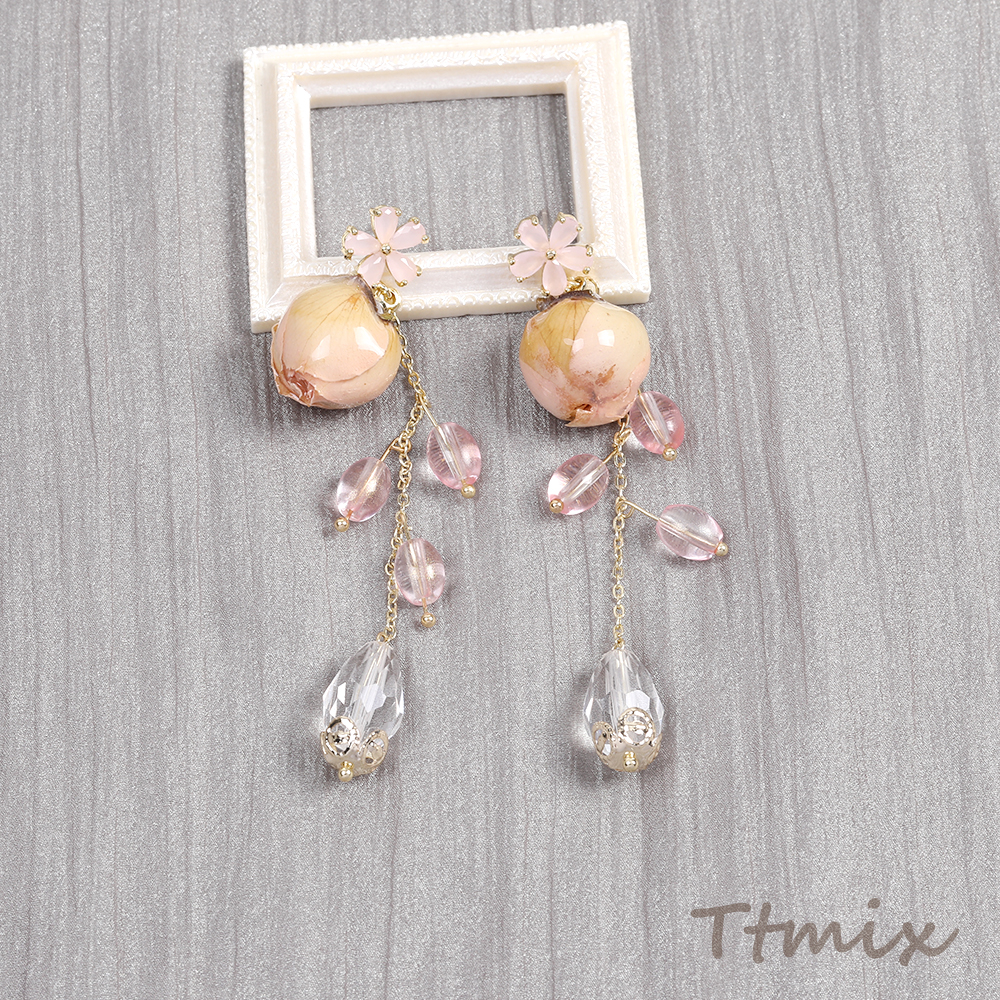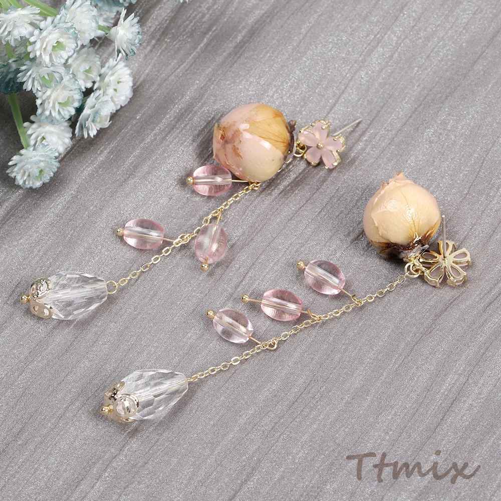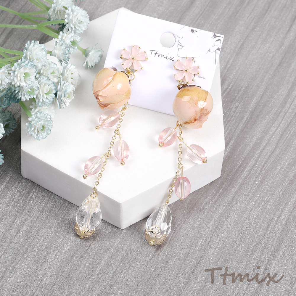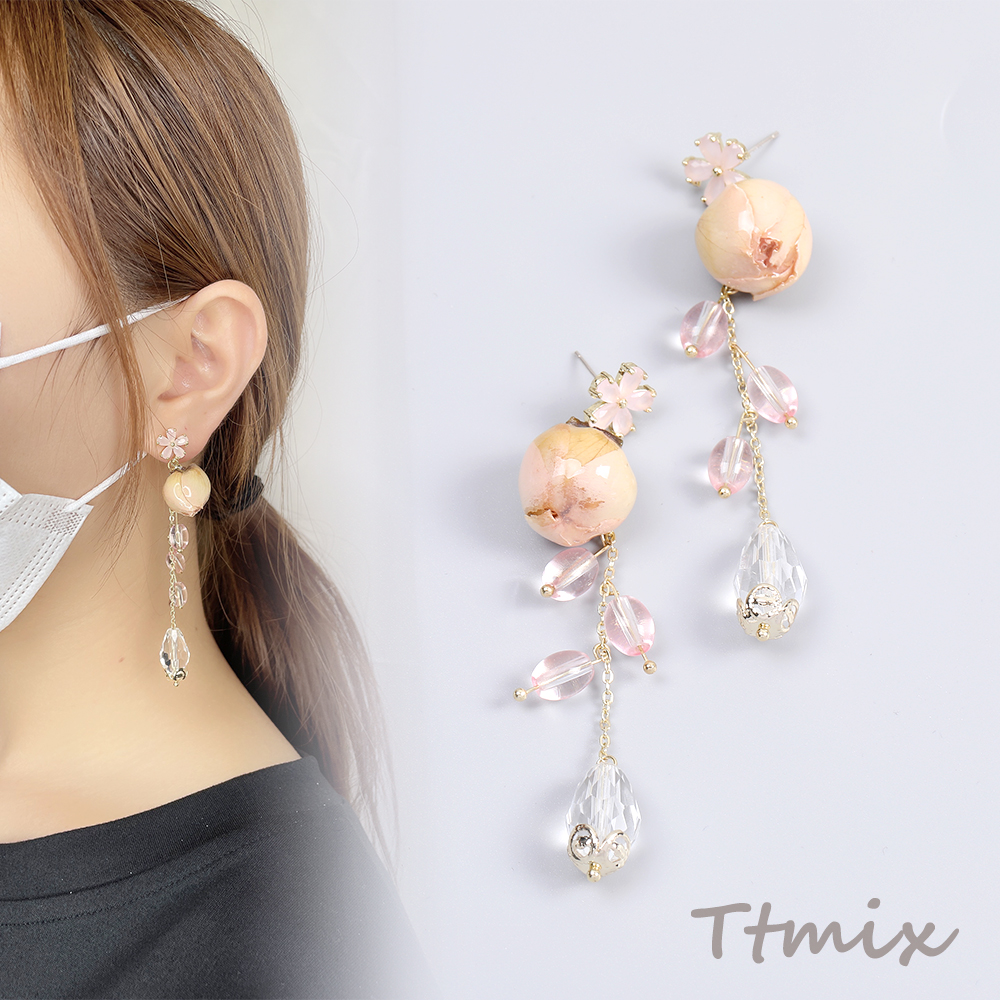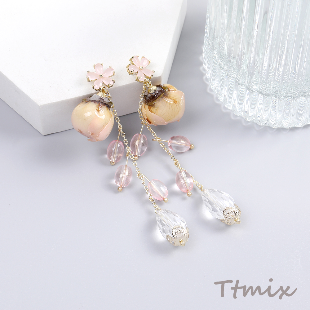 デザインピアス フラワー バラ チェーンタッセル 16×81mm(1ペア)