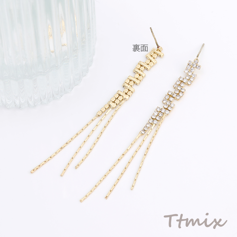 デザインピアス チェーンタッセル 5×74mm ゴールド(2ヶ)