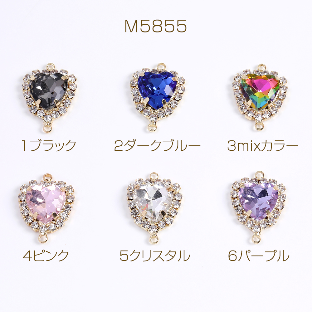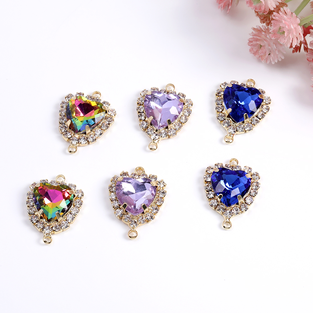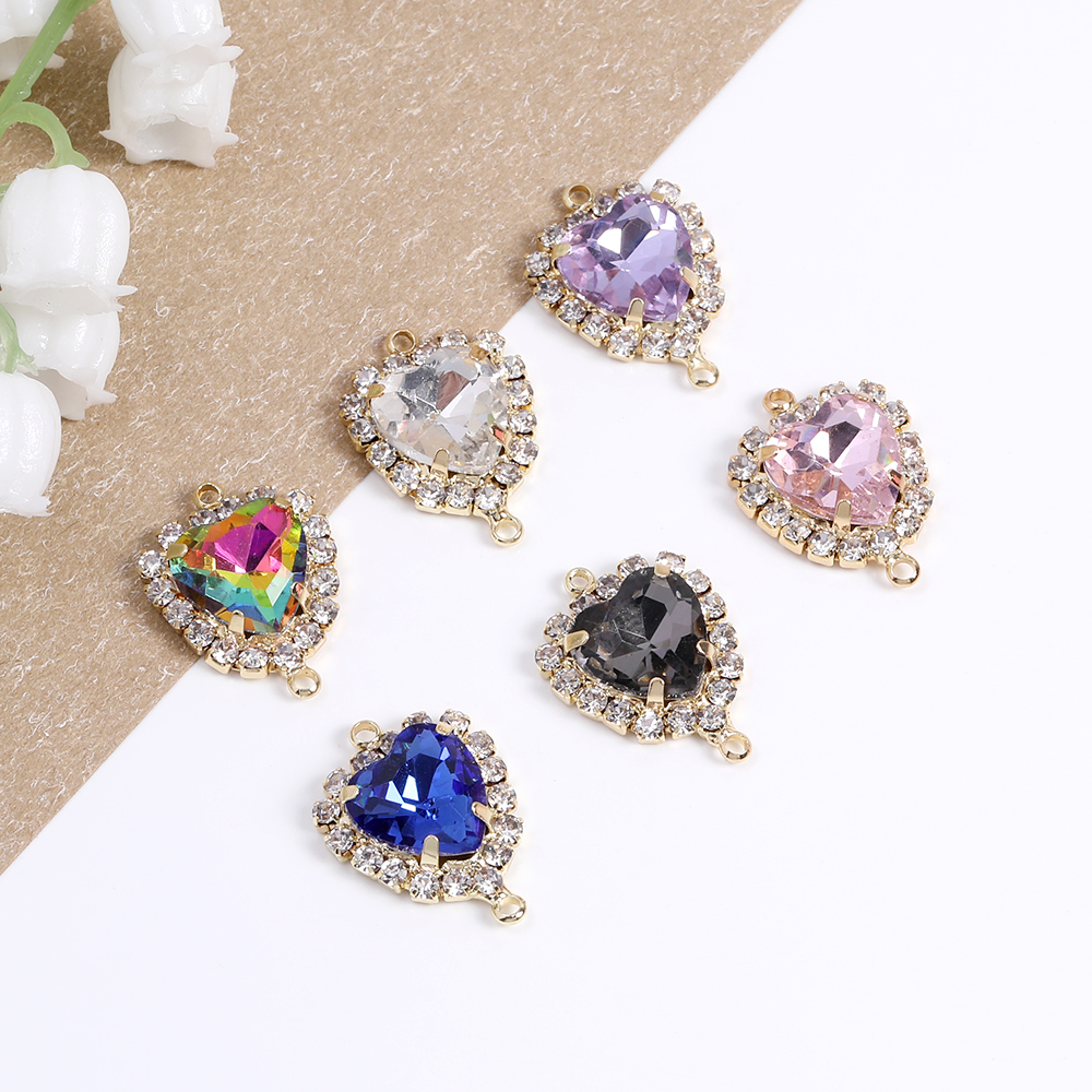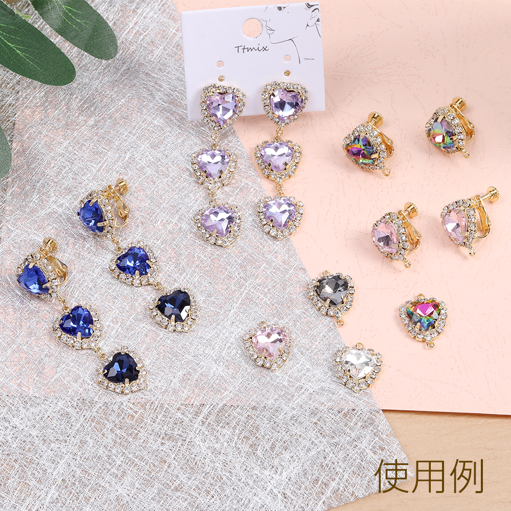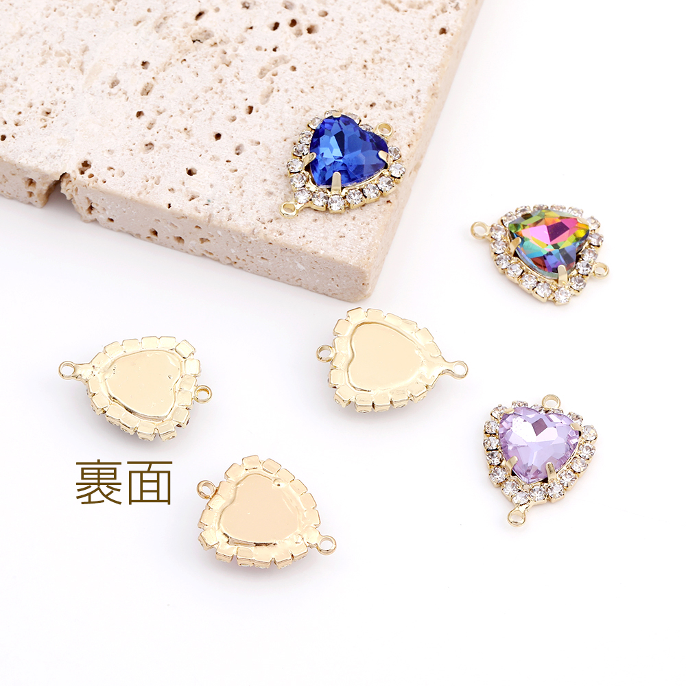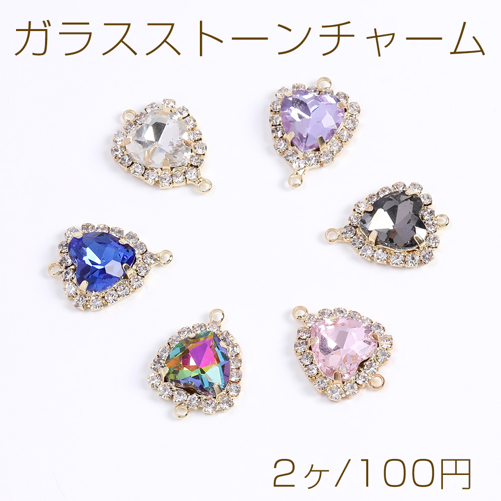 ガラスストーンチャーム コネクターチャーム ハート型 2カン付き 14×19mm ゴールド(2ヶ)
