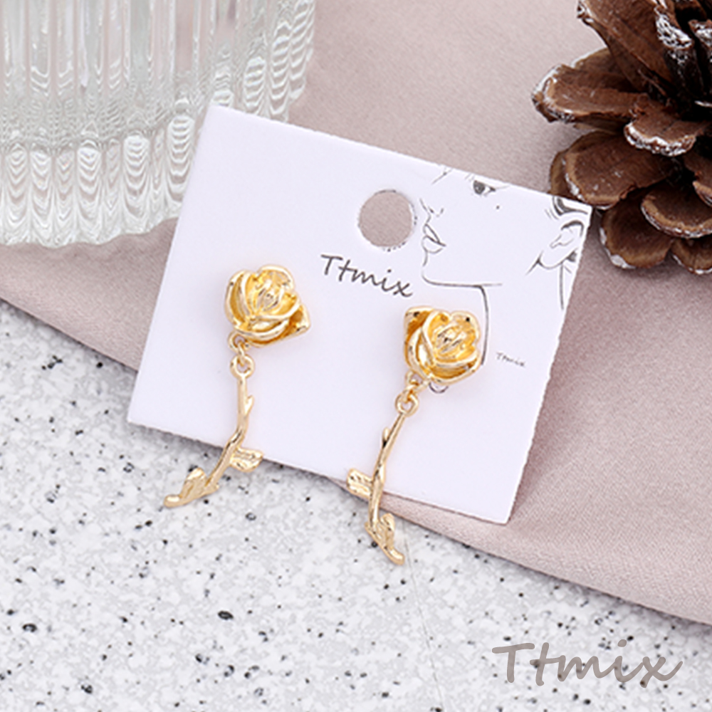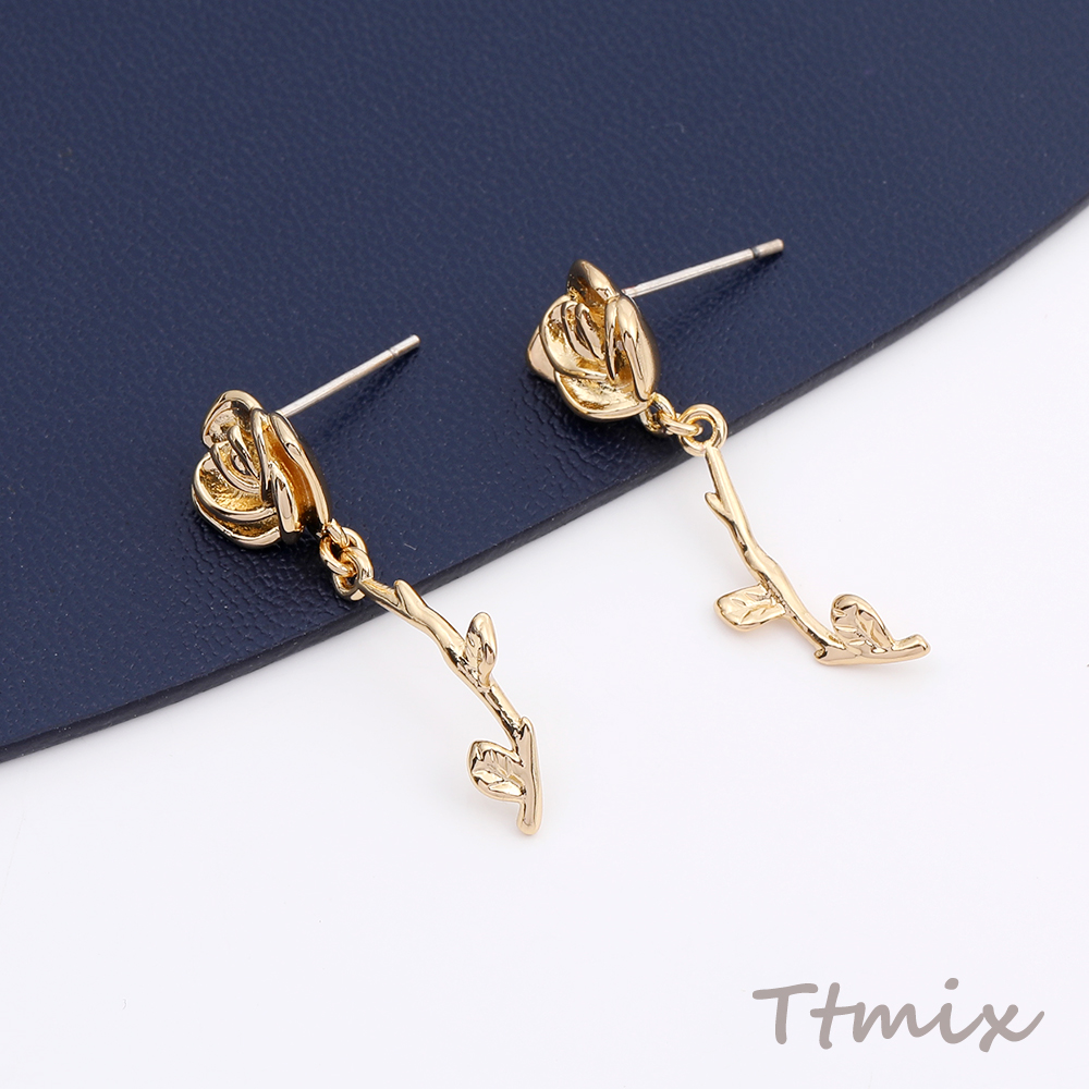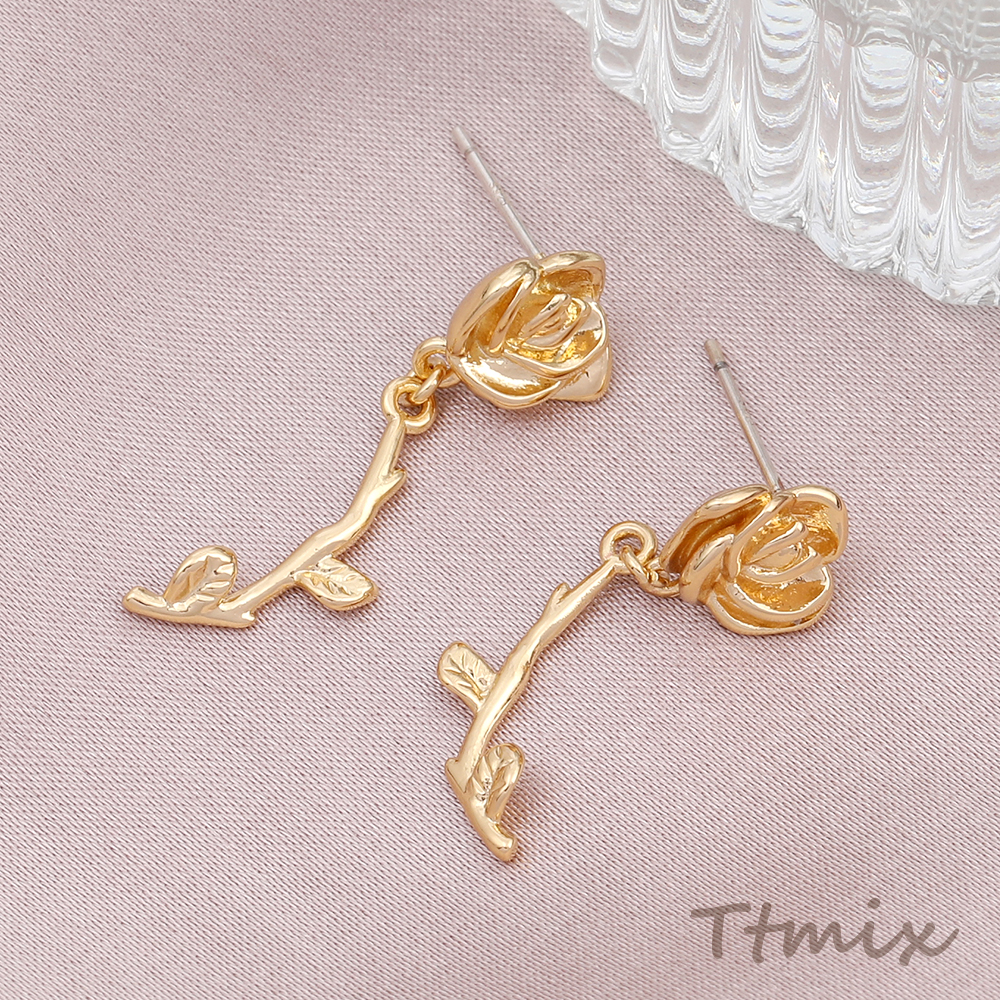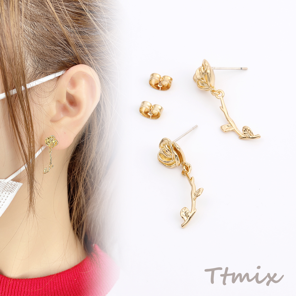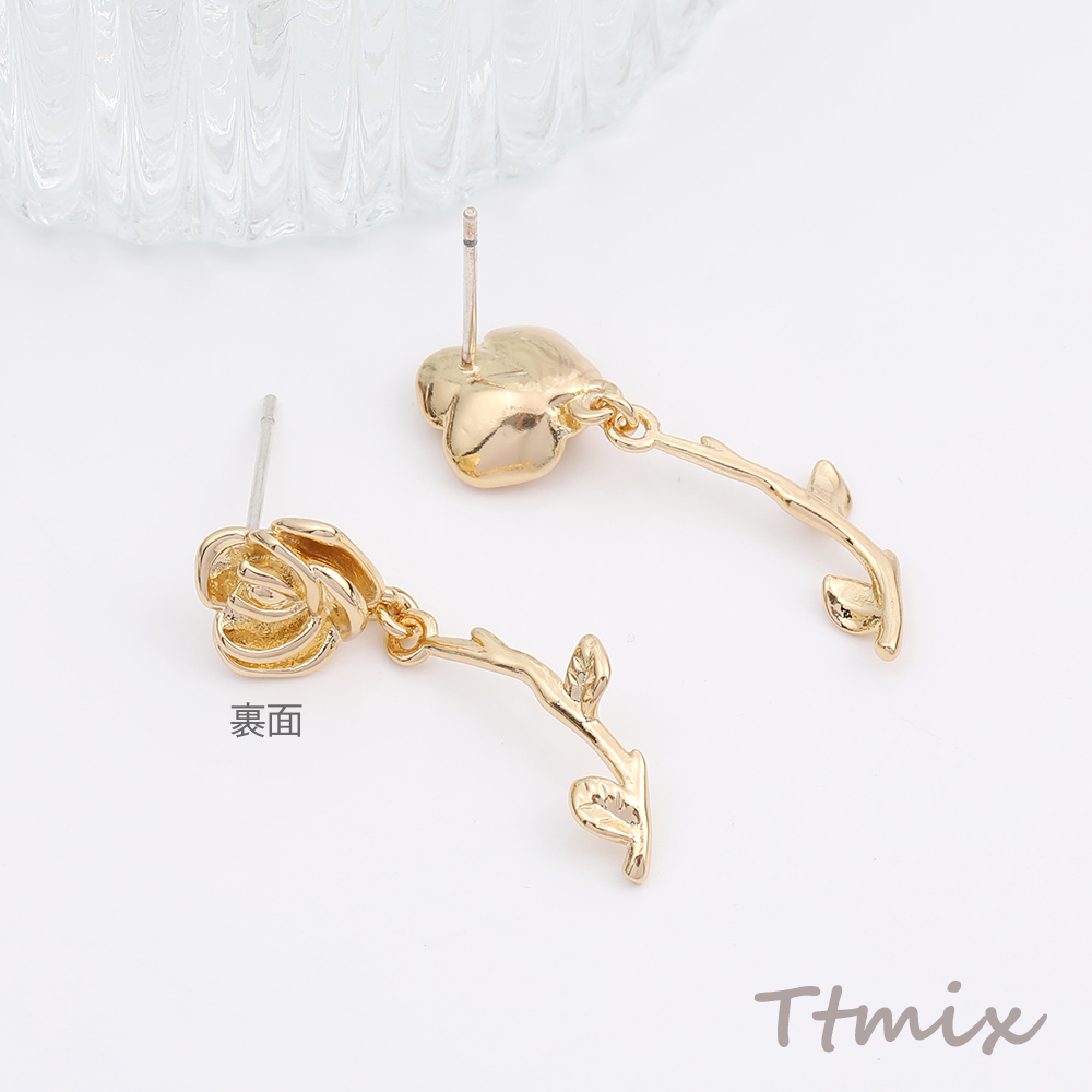 デザインピアス フラワー バラ 9.5×27mm ゴールド(2ヶ)