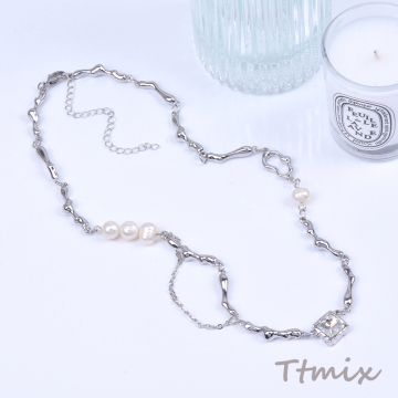 淡水パール&メタルネックレス ロジウム(1連)