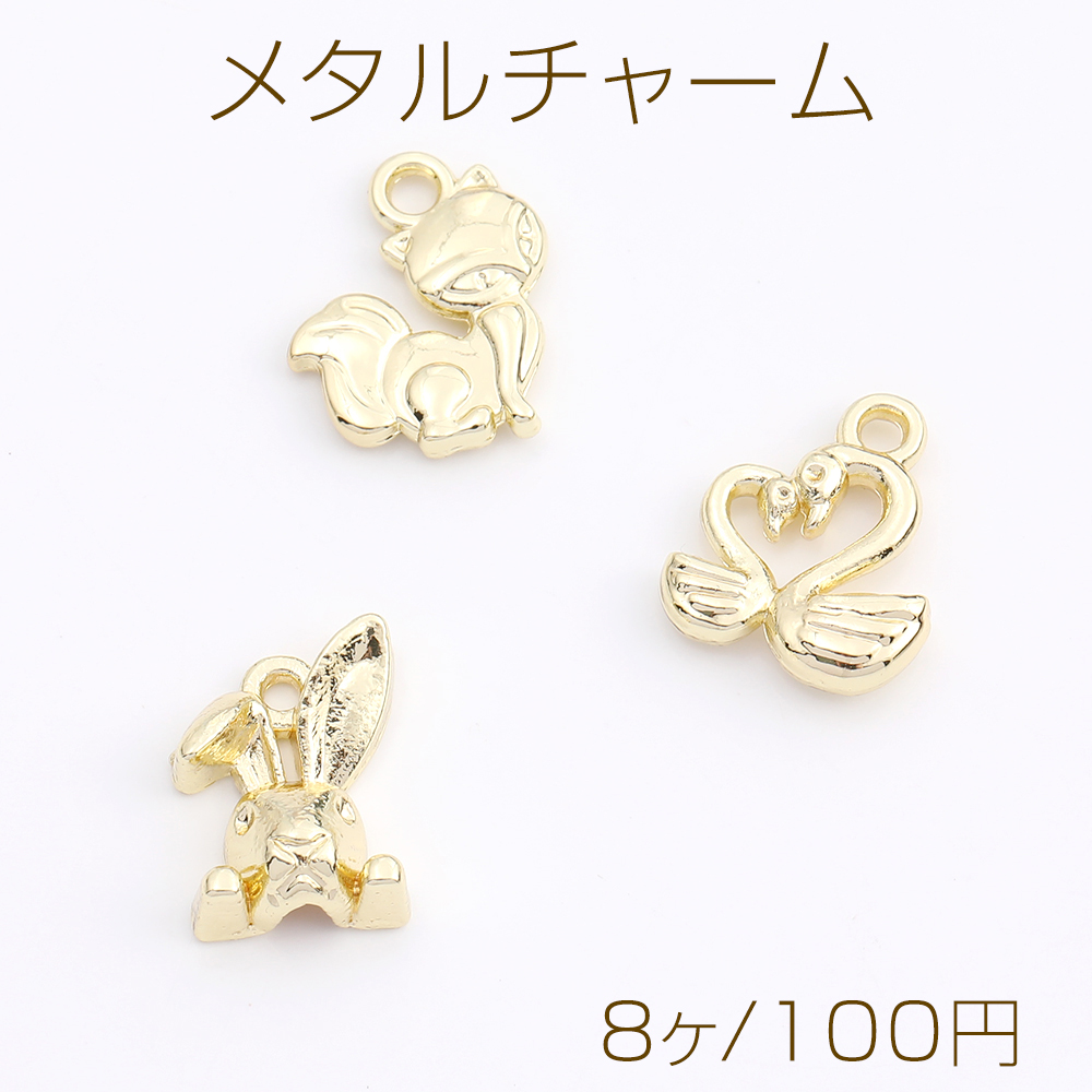 メタルチャーム キツネ スワン 兎 ゴールド(8ヶ)