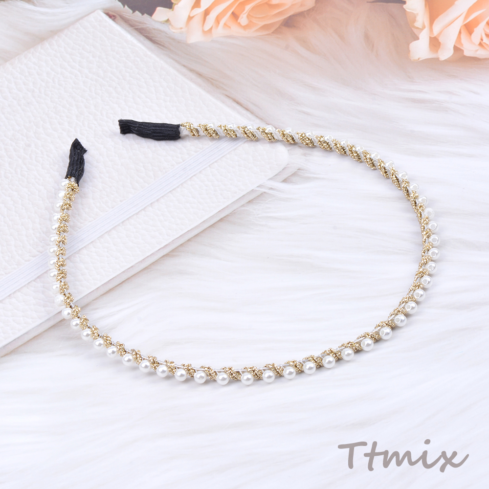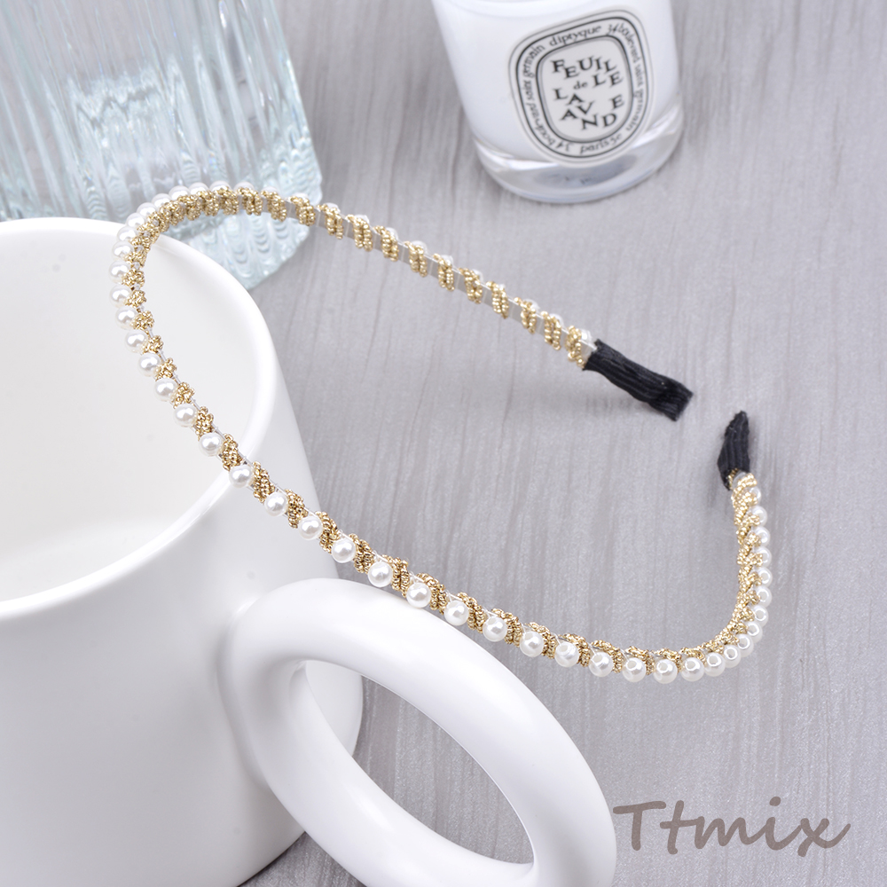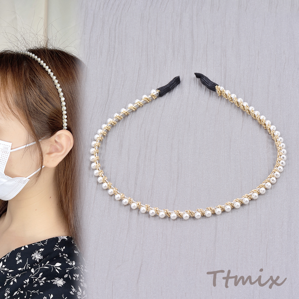 パール付きカチューシャ ヘアアクセサリー 幅約4mm(1ヶ)