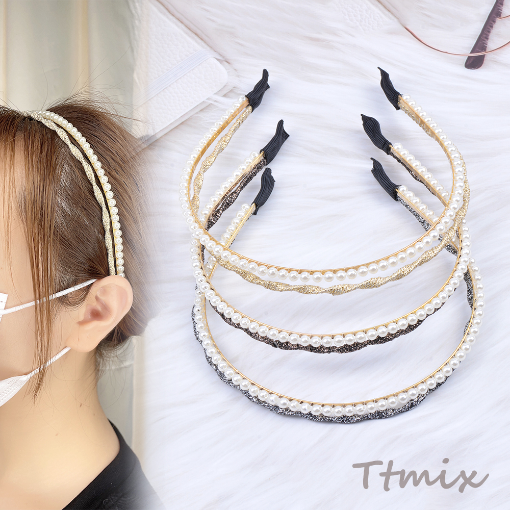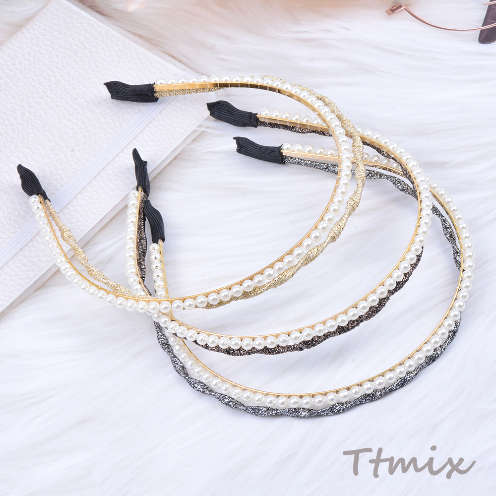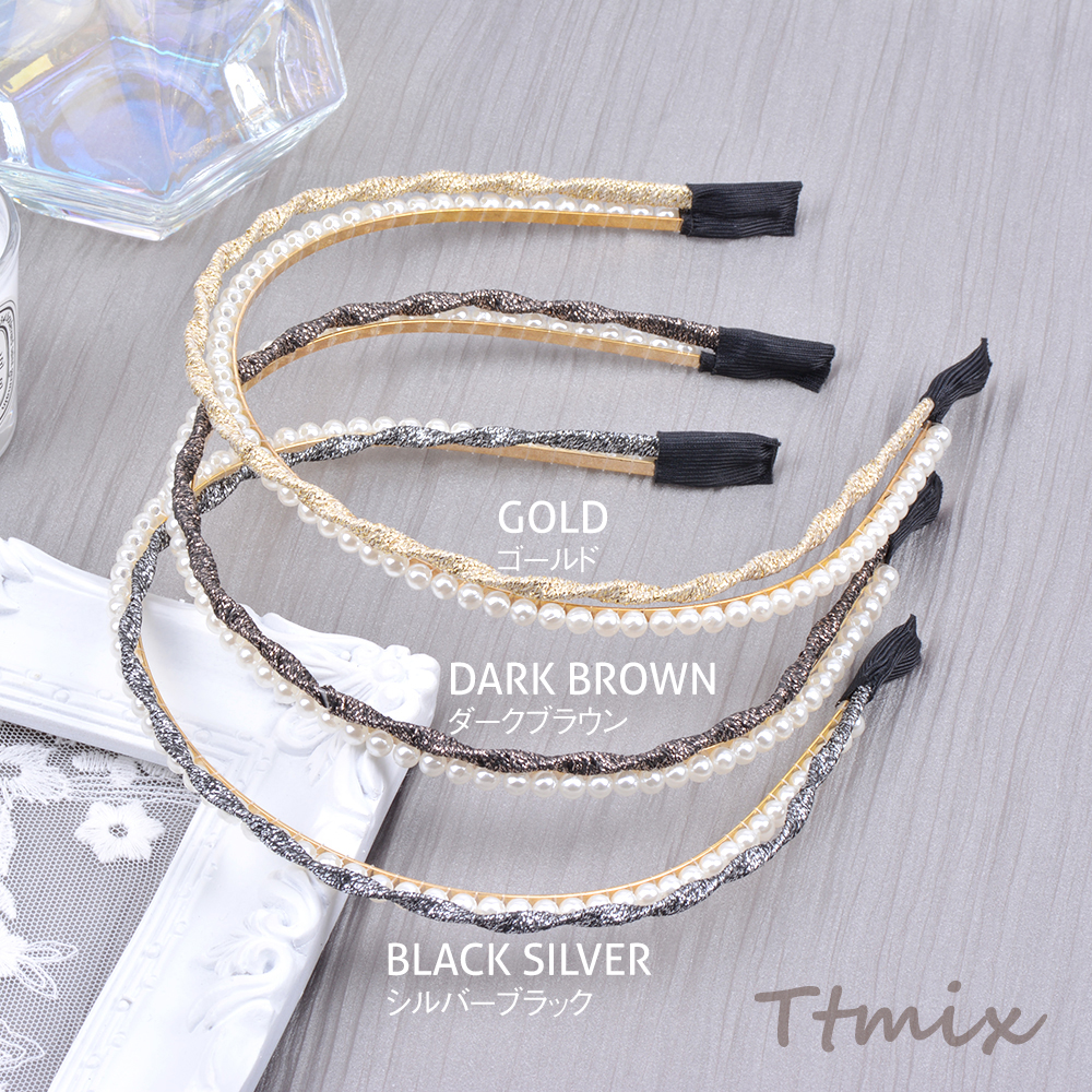 パール付きカチューシャ ヘアアクセサリー 幅約9mm(1ヶ)