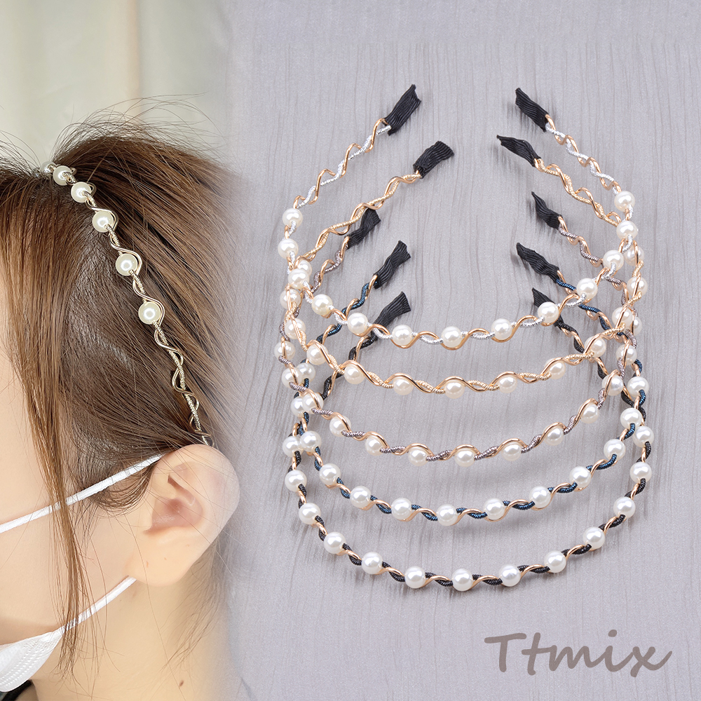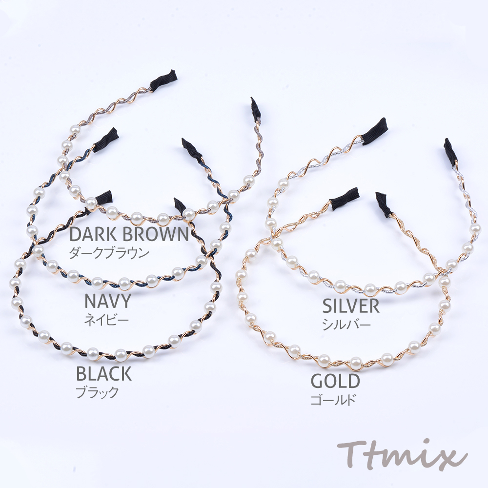 パール付きカチューシャ ヘアアクセサリー 幅約9mm(1ヶ)