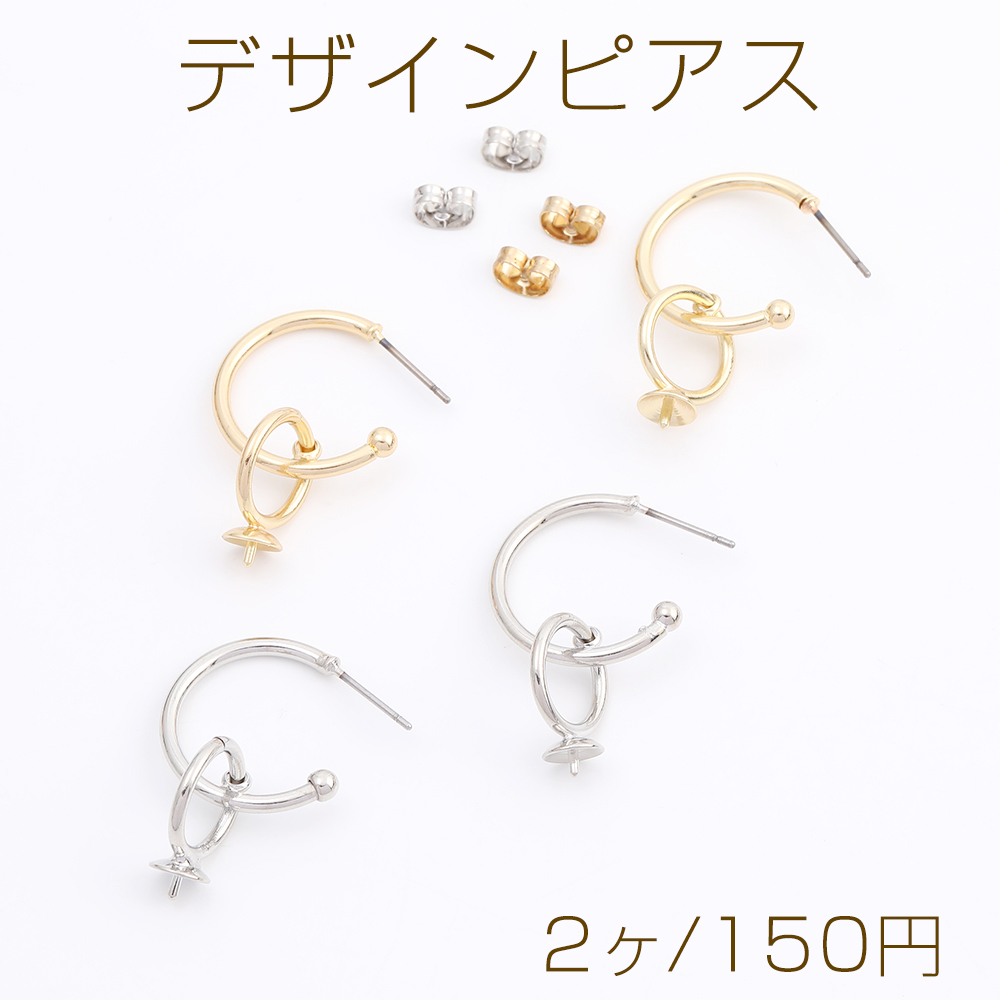 デザインピアス Cフープ 芯立丸皿付き 20×32mm(2ヶ)