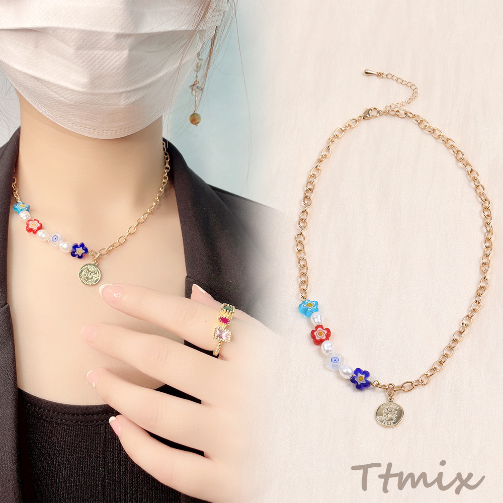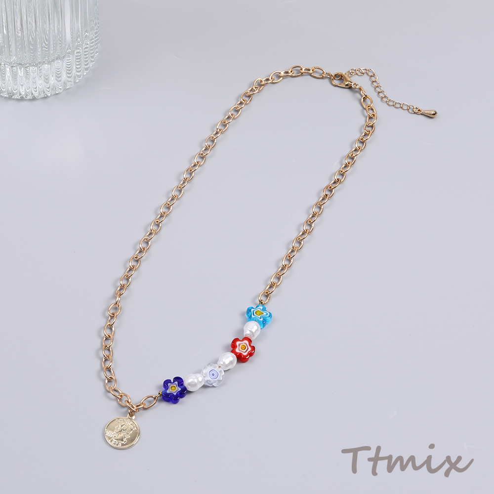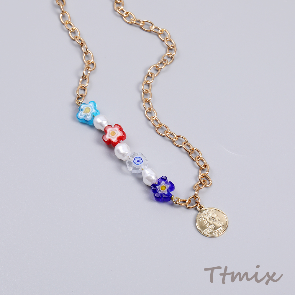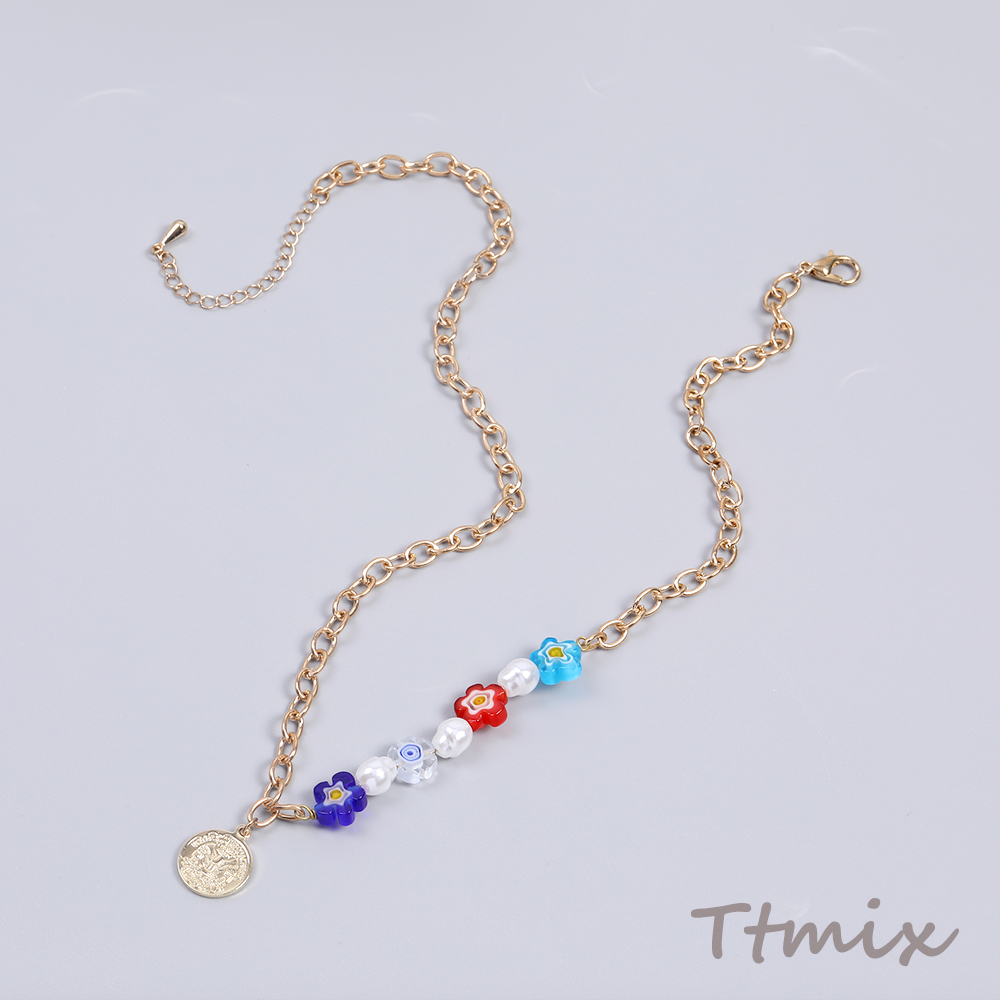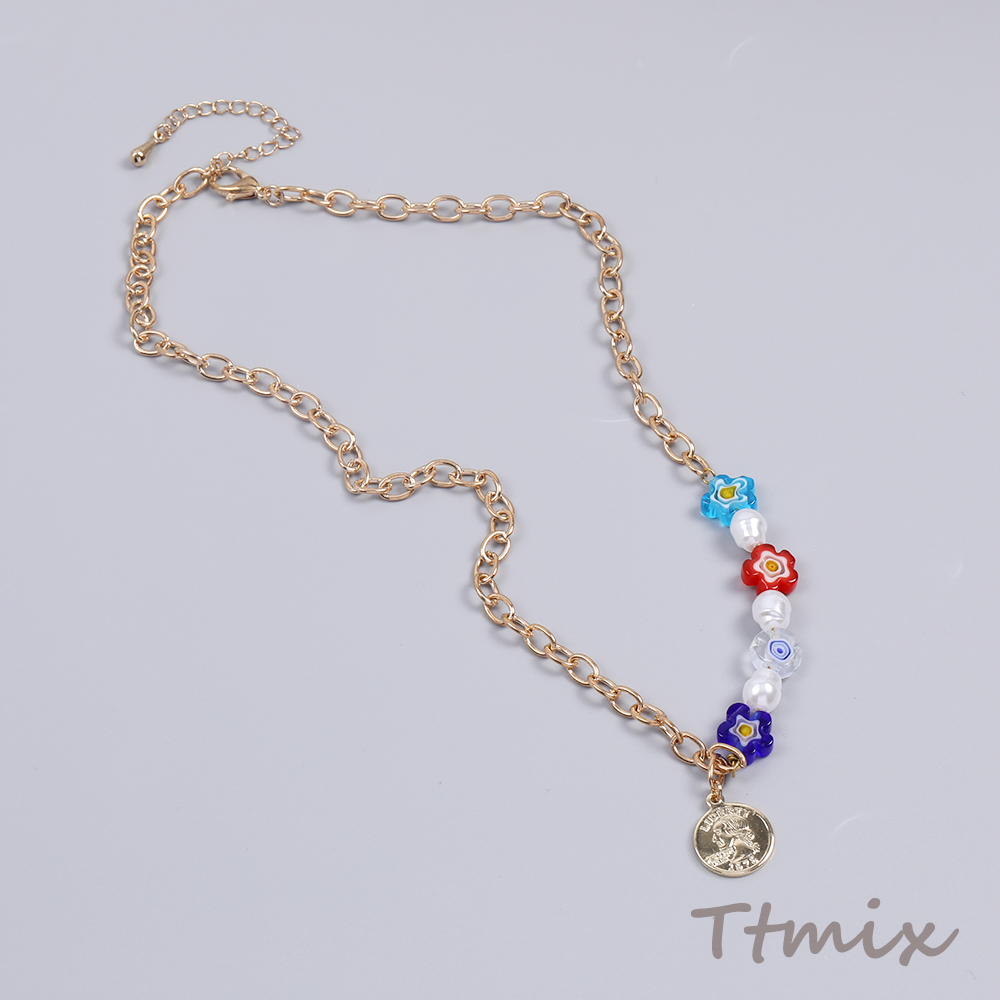 瑠璃&パール&メタルネックレス ゴールド(1連)