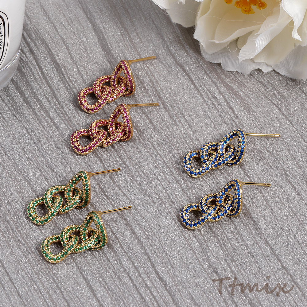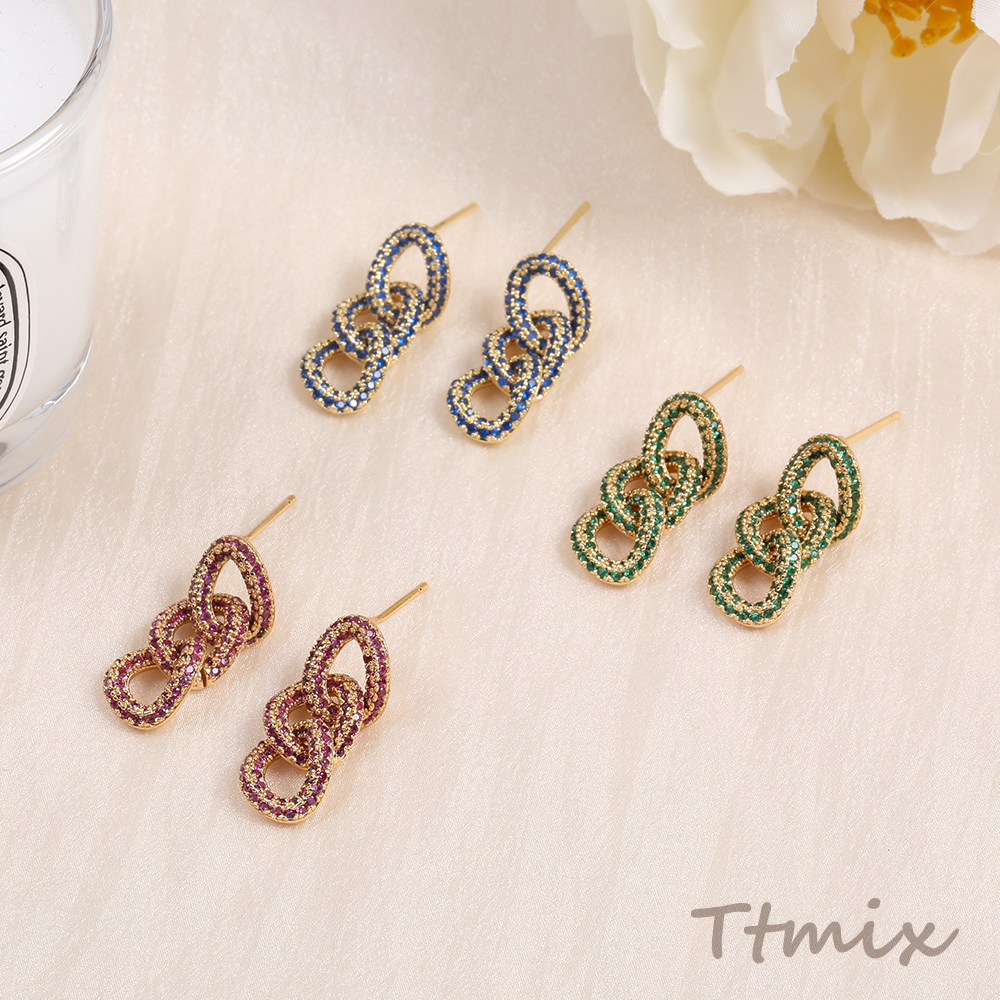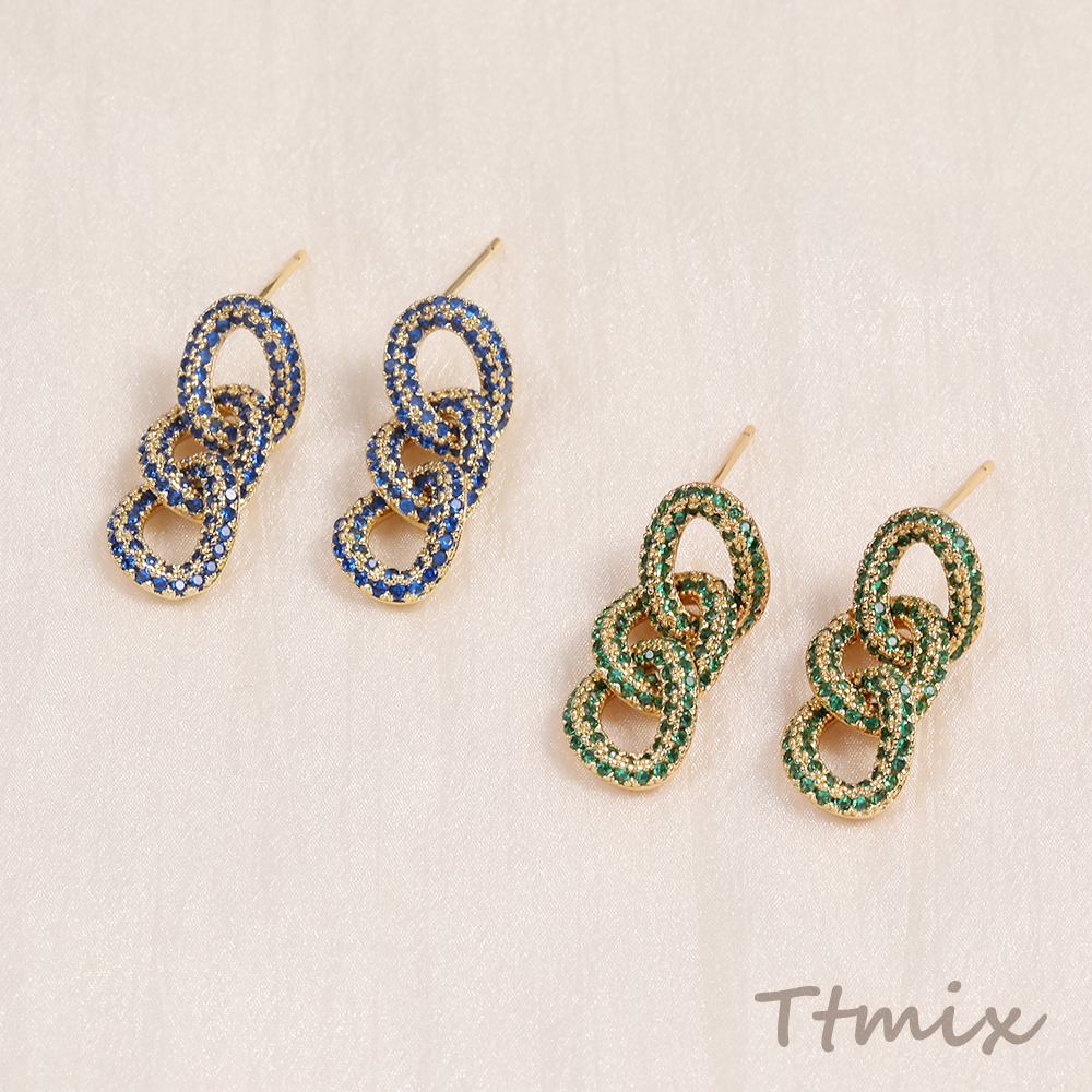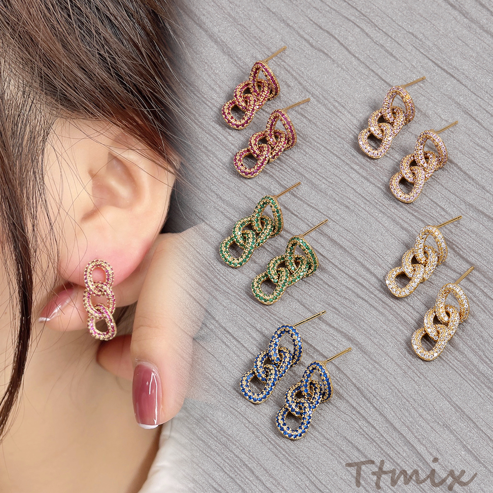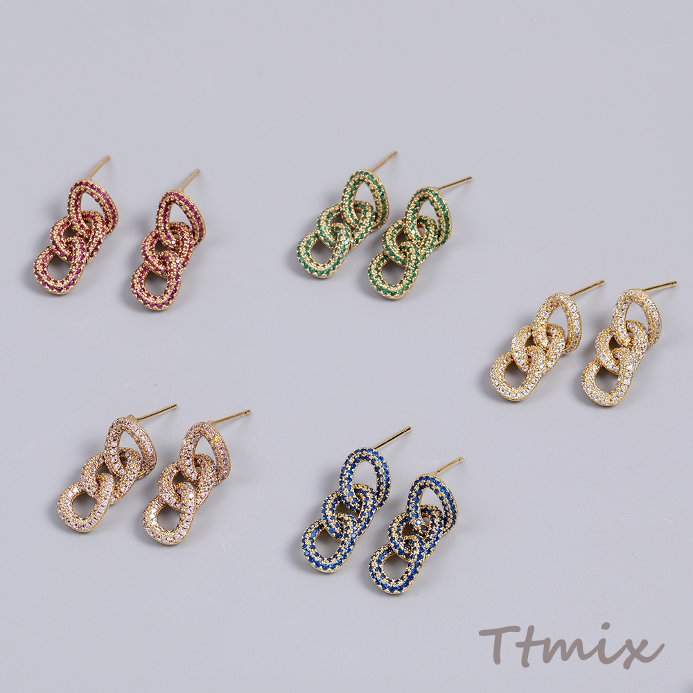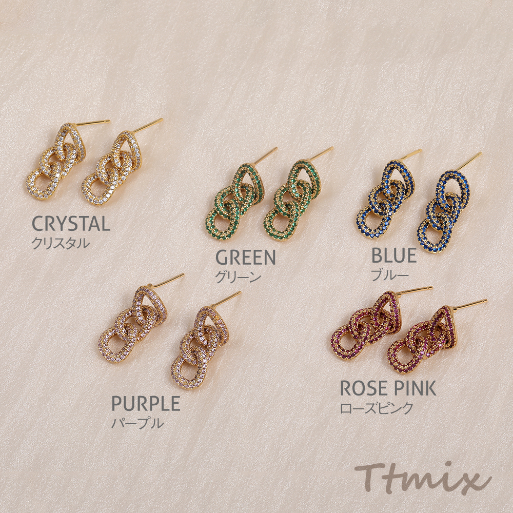 高品質ジルコニアピアス デザインピアス チェーン ゴールド(1ペア)