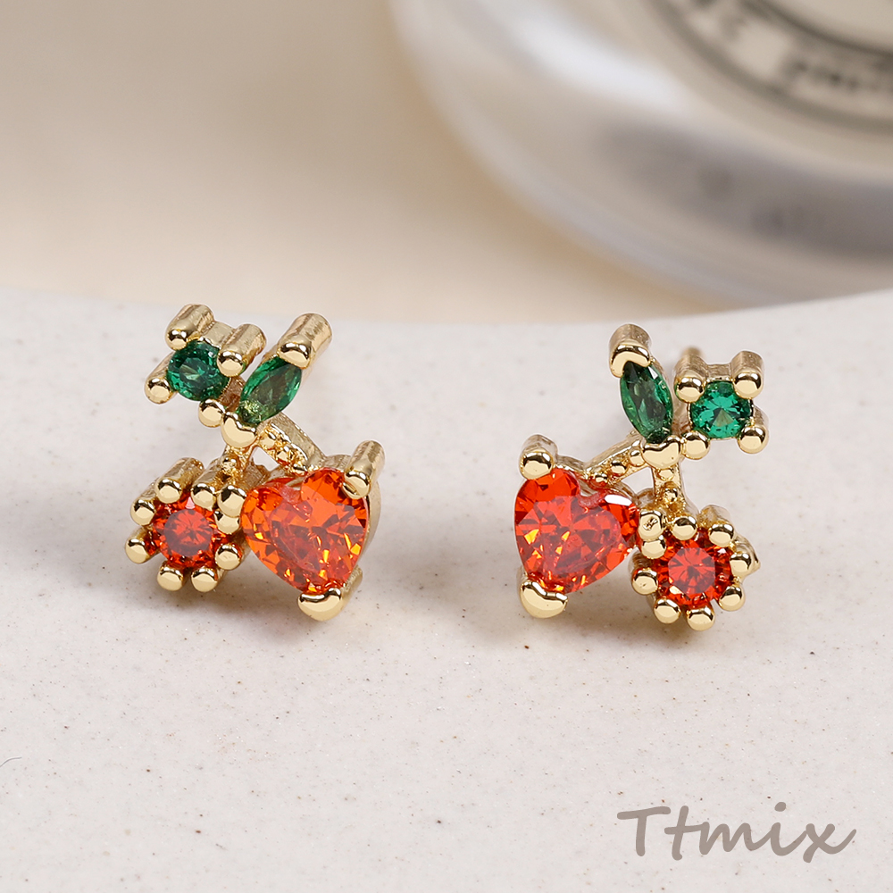 高品質ジルコニアピアス デザインピアス さくらんぼ ゴールド(1ペア)