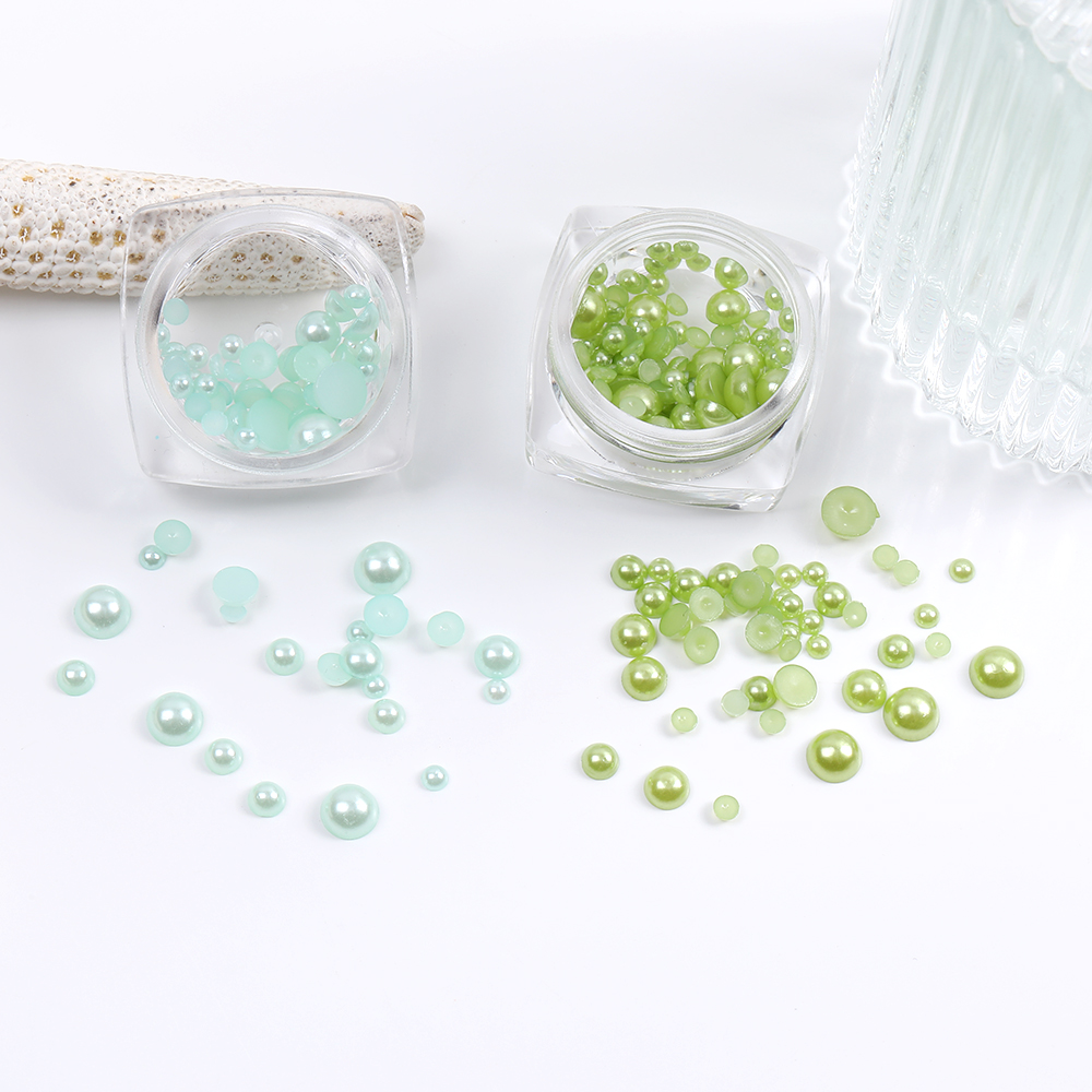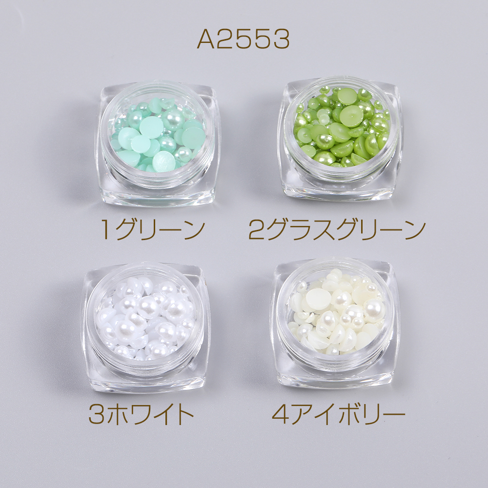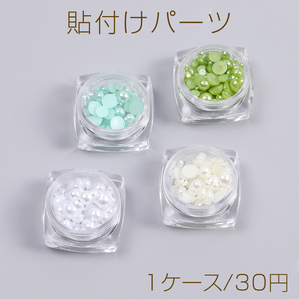 貼付けパーツ 染色パール貼付けパーツ 染色パールカボション 半円 サイズミックス 5-7mm(1ケース)