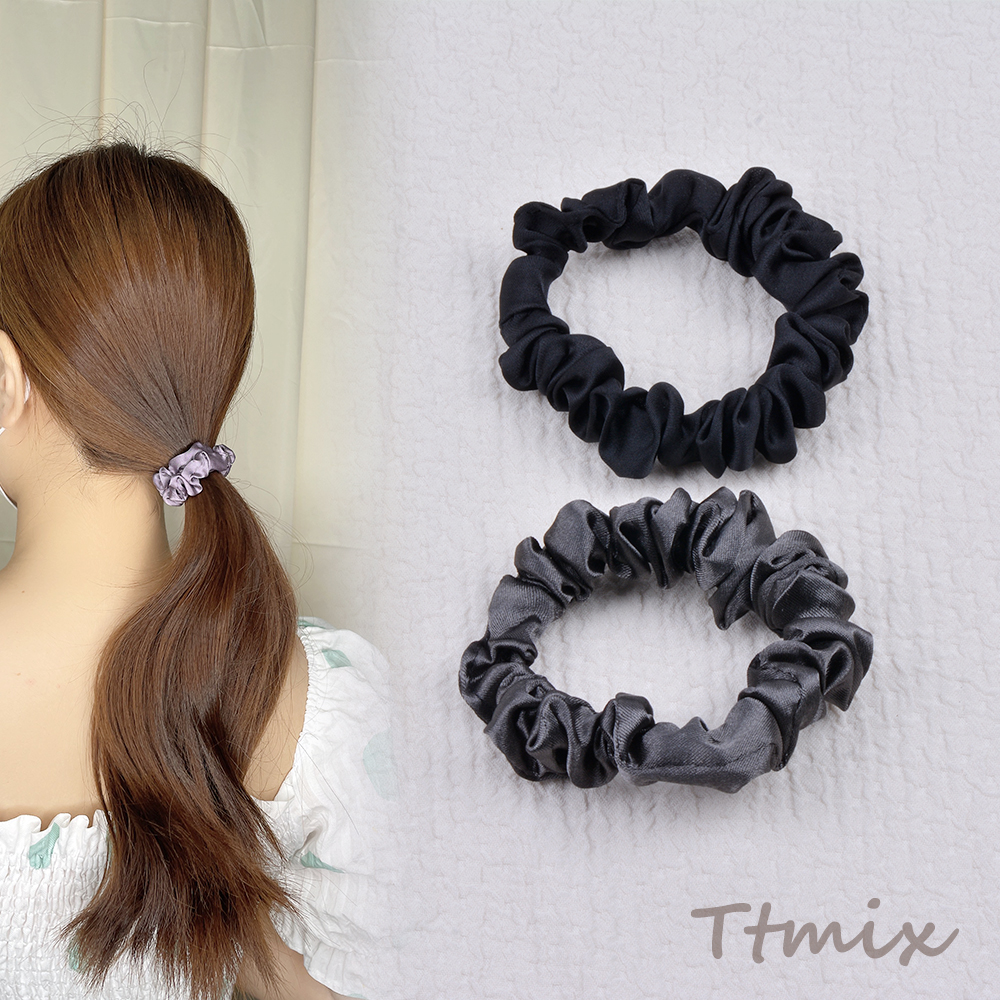 シュシュ ヘアアクセサリー 6.5cm ブラック&グレー(2個セット)