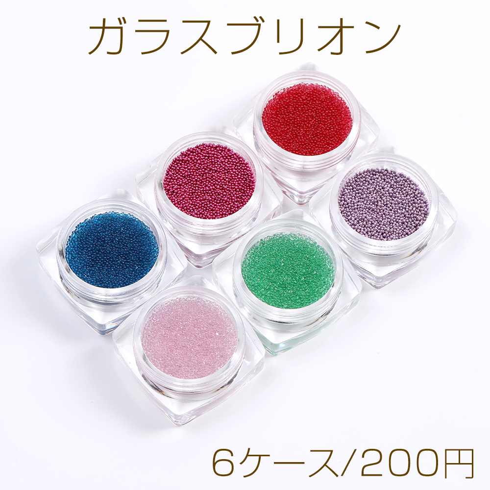ガラスブリオン ネイルパーツ レジン封入パーツ 6色セット 各約4g(6ケース)