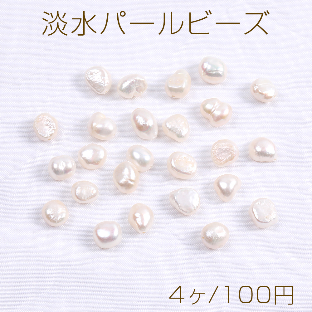 高品質淡水パールビーズ 天然素材 不規則型 8-9mm(4ヶ)