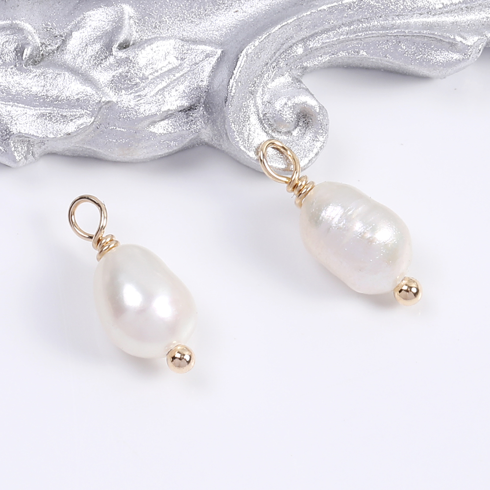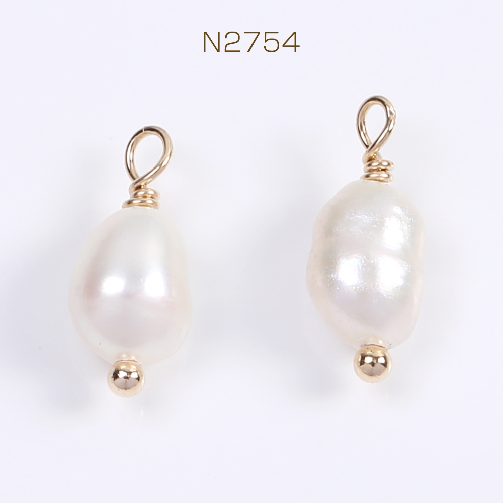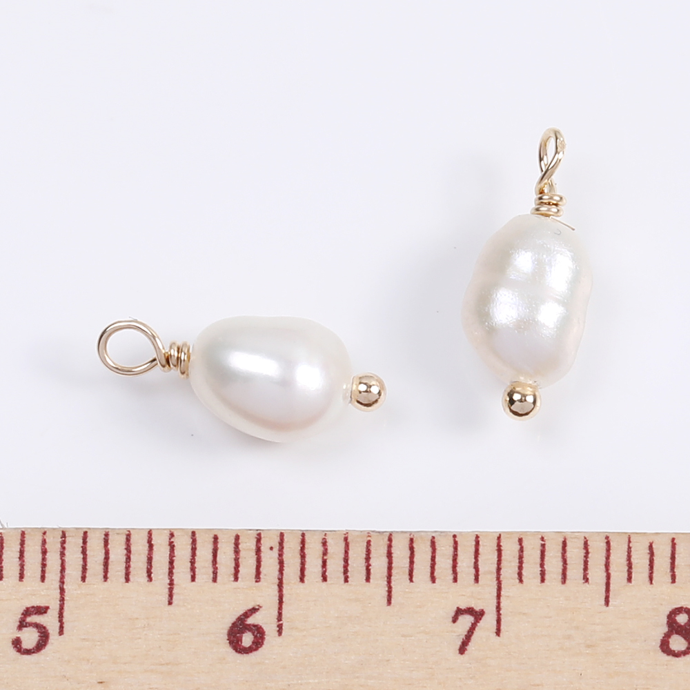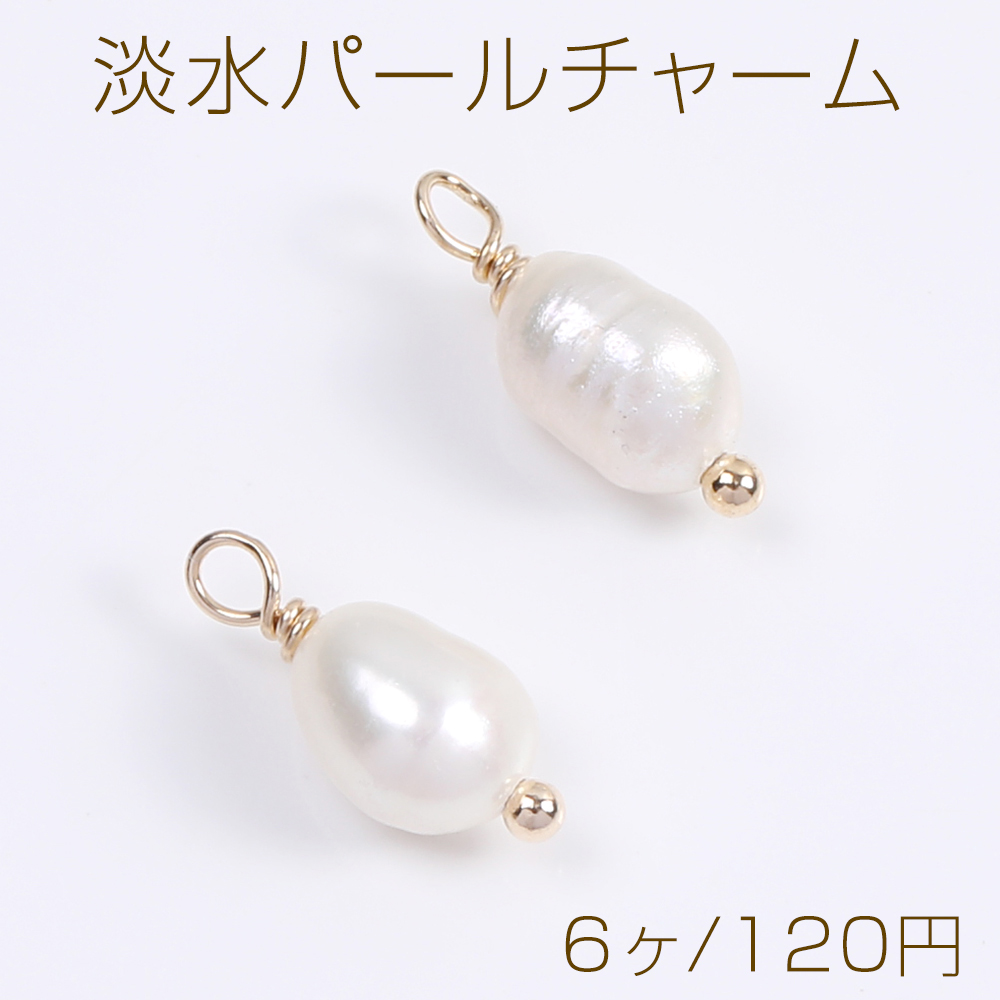 高品質淡水パールチャーム めがね留め 不規則ライス カン付き 6-7mm(6ヶ)