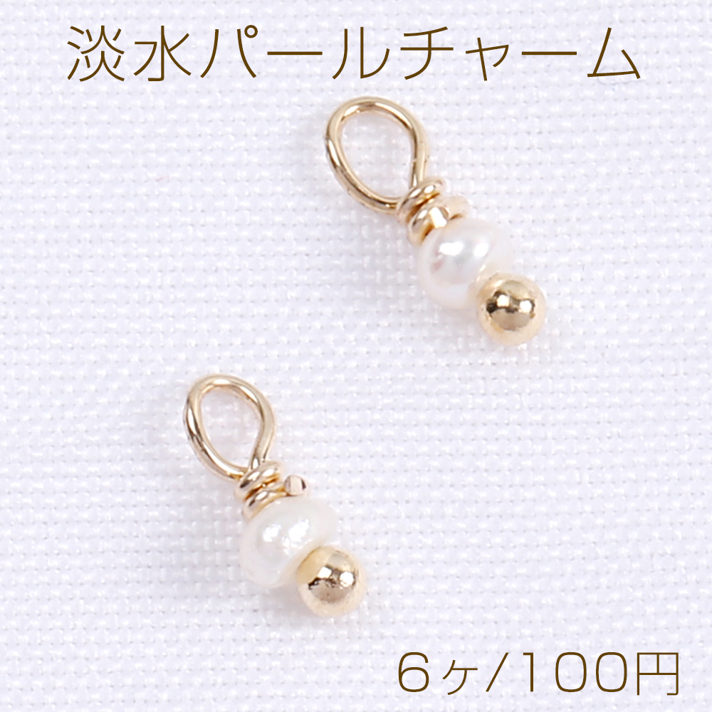 高品質淡水パールチャーム めがね留め 不規則型 カン付き 2.5-3mm(6ヶ)