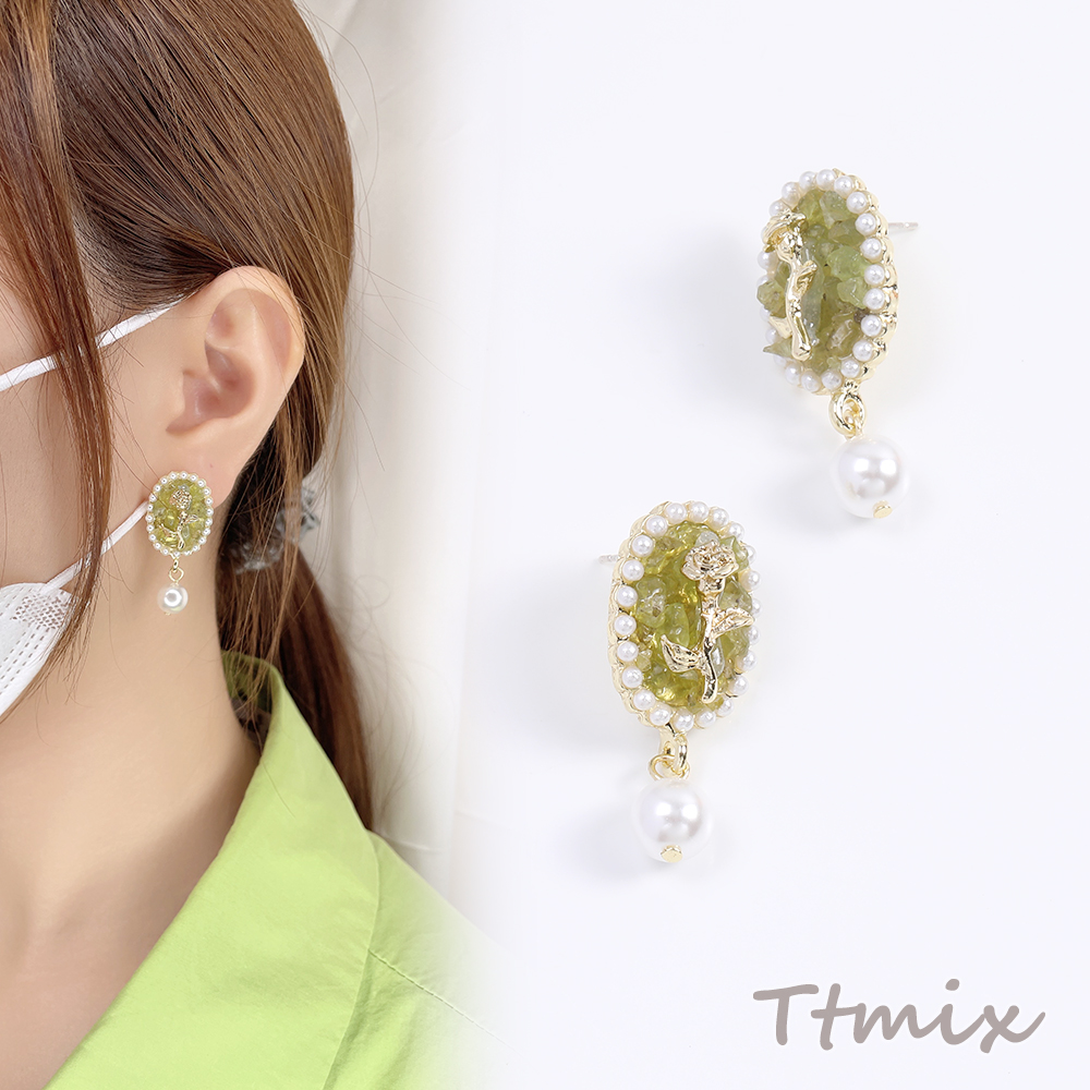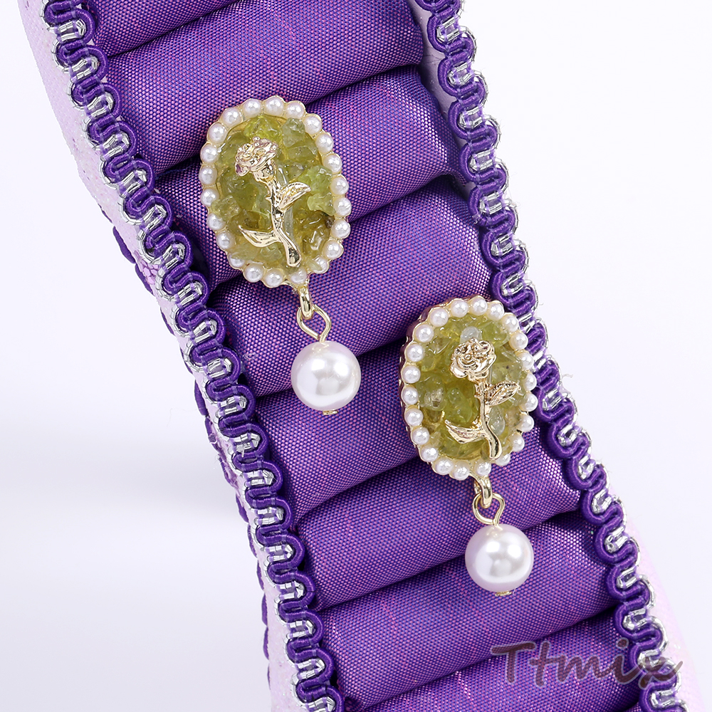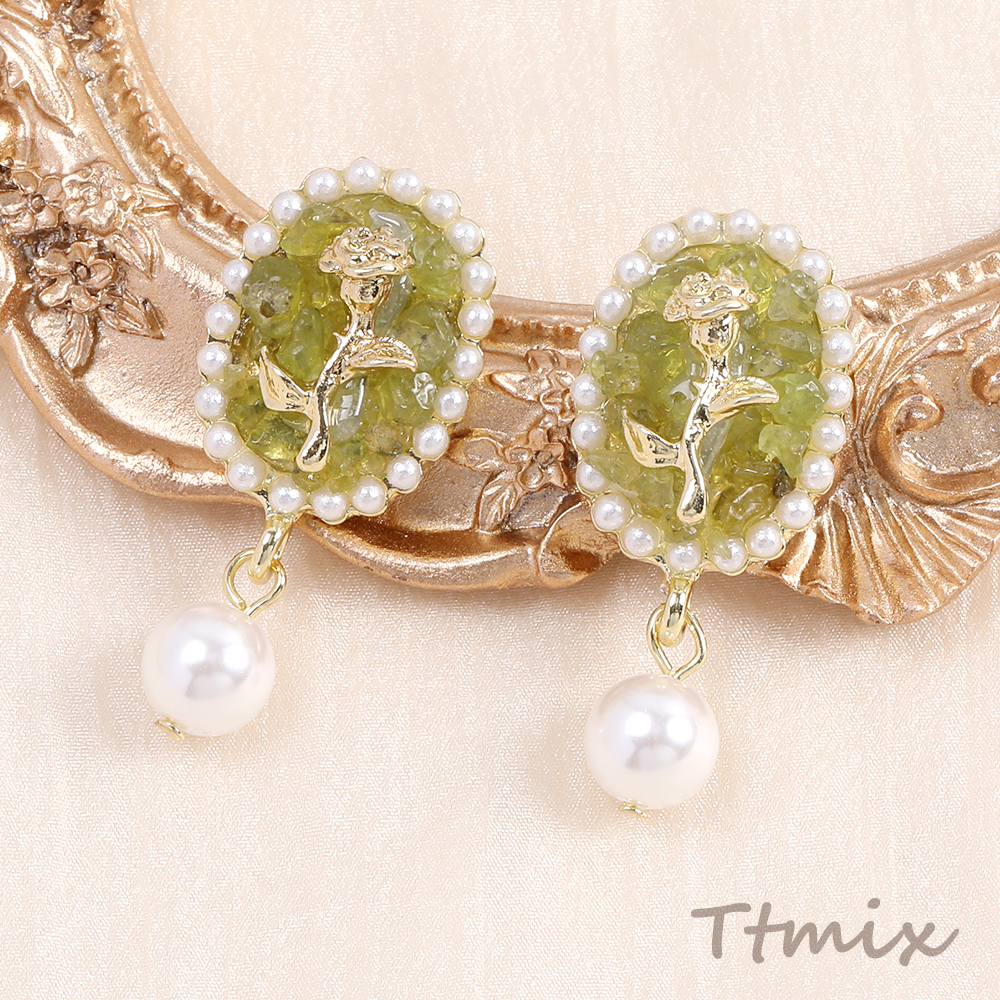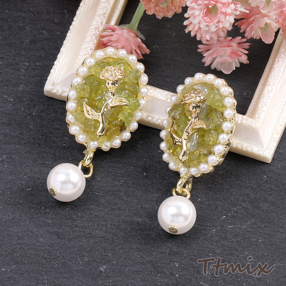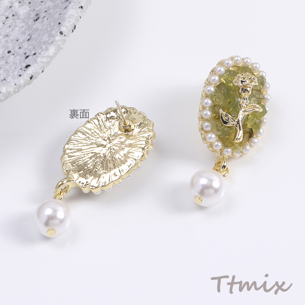 デザインピアス オーバル フラワー バラ パール 16×36mm(1ペア)