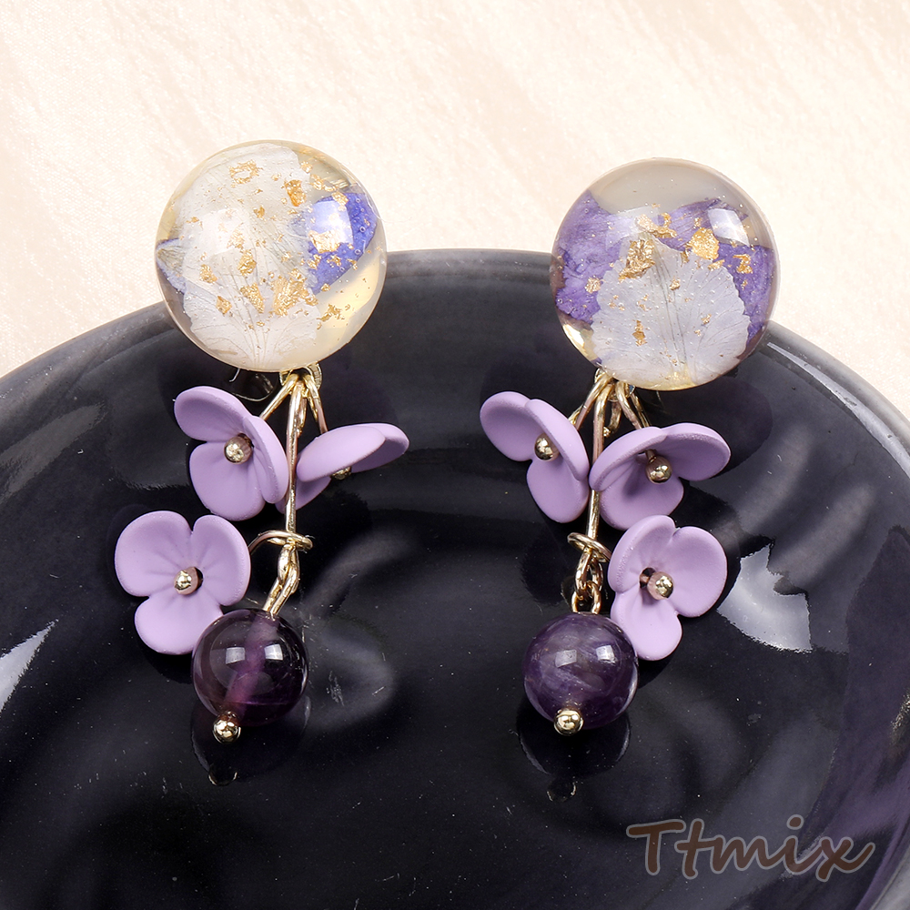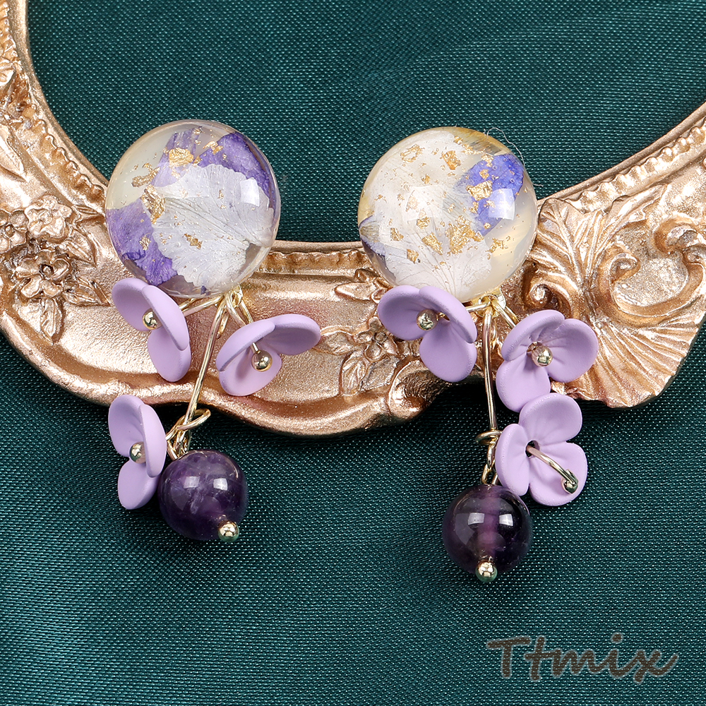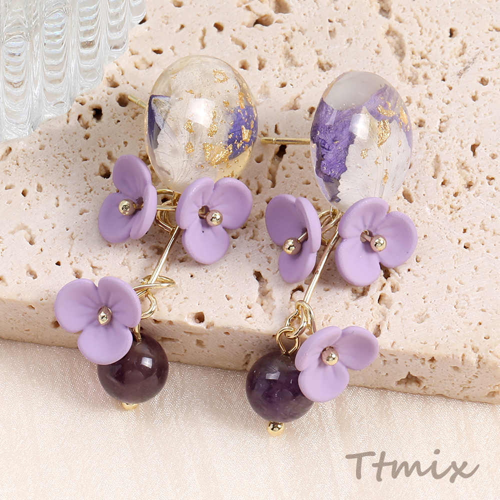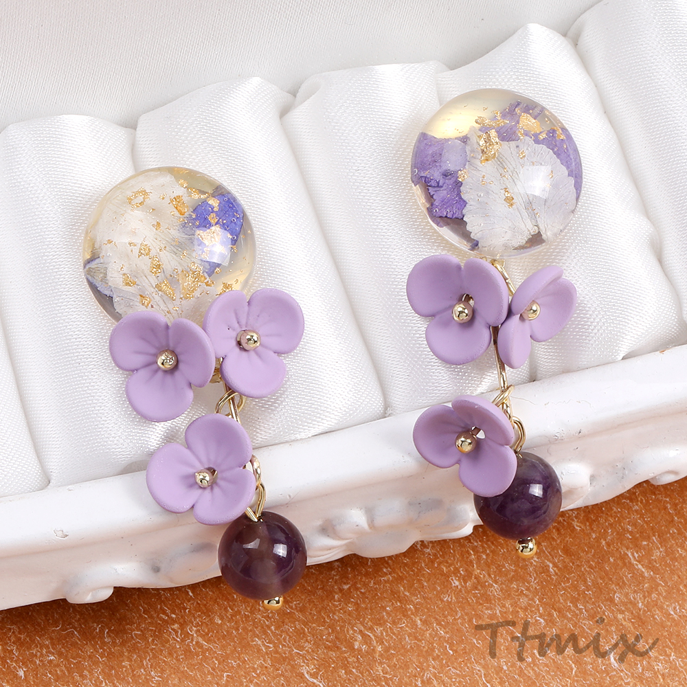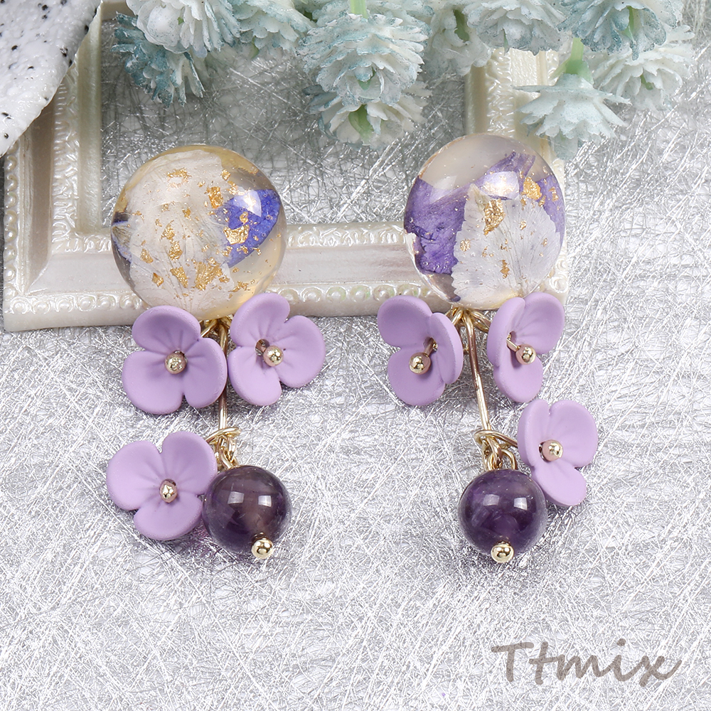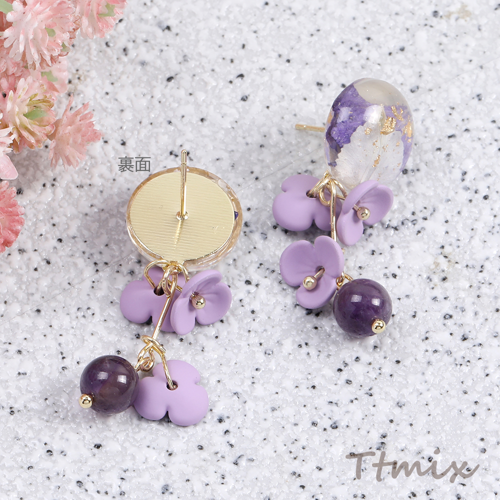 デザインピアス フラワー 15×43mm パープル(1ペア)