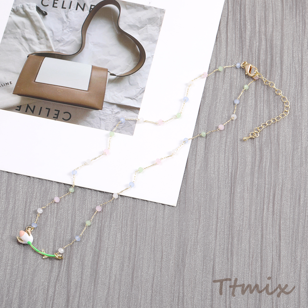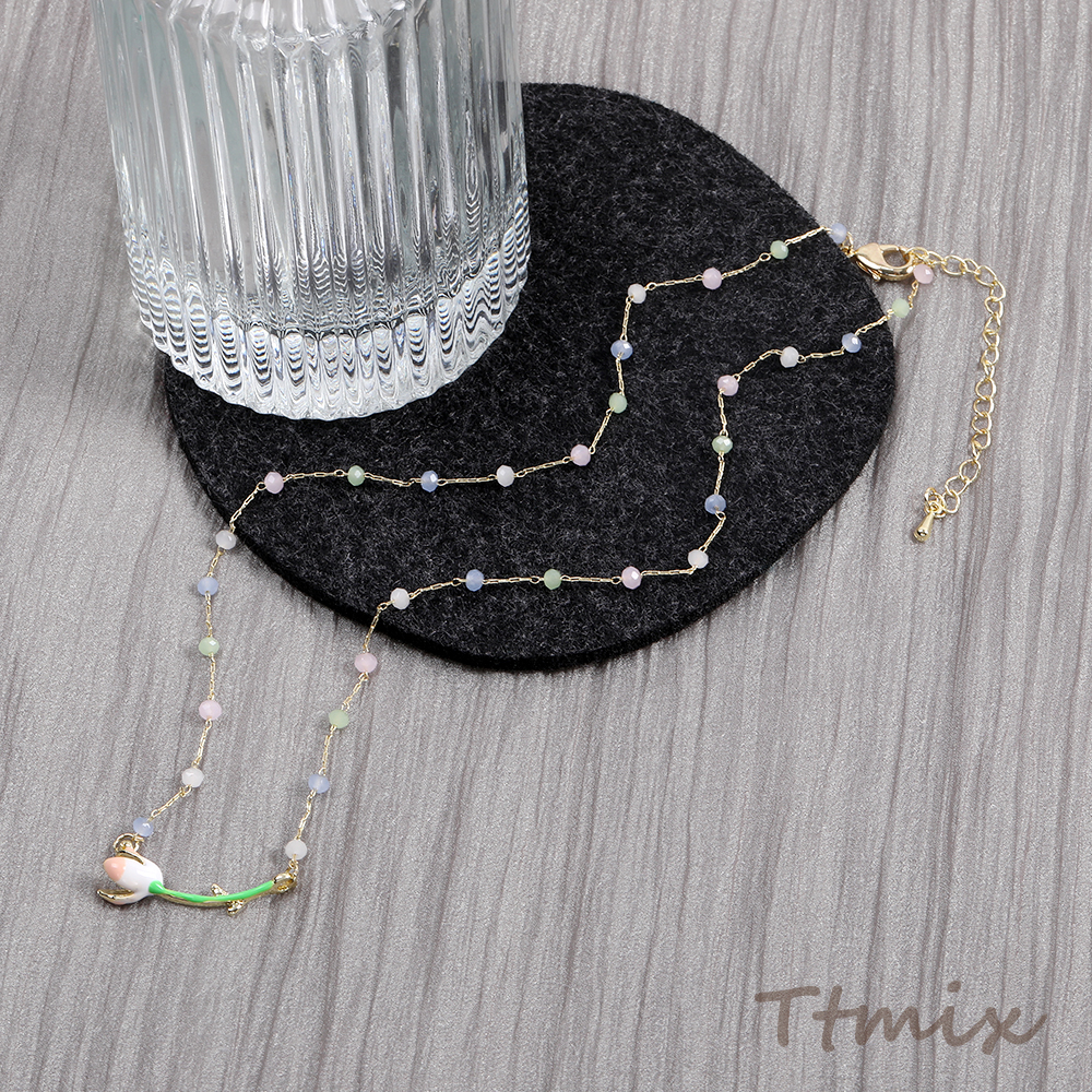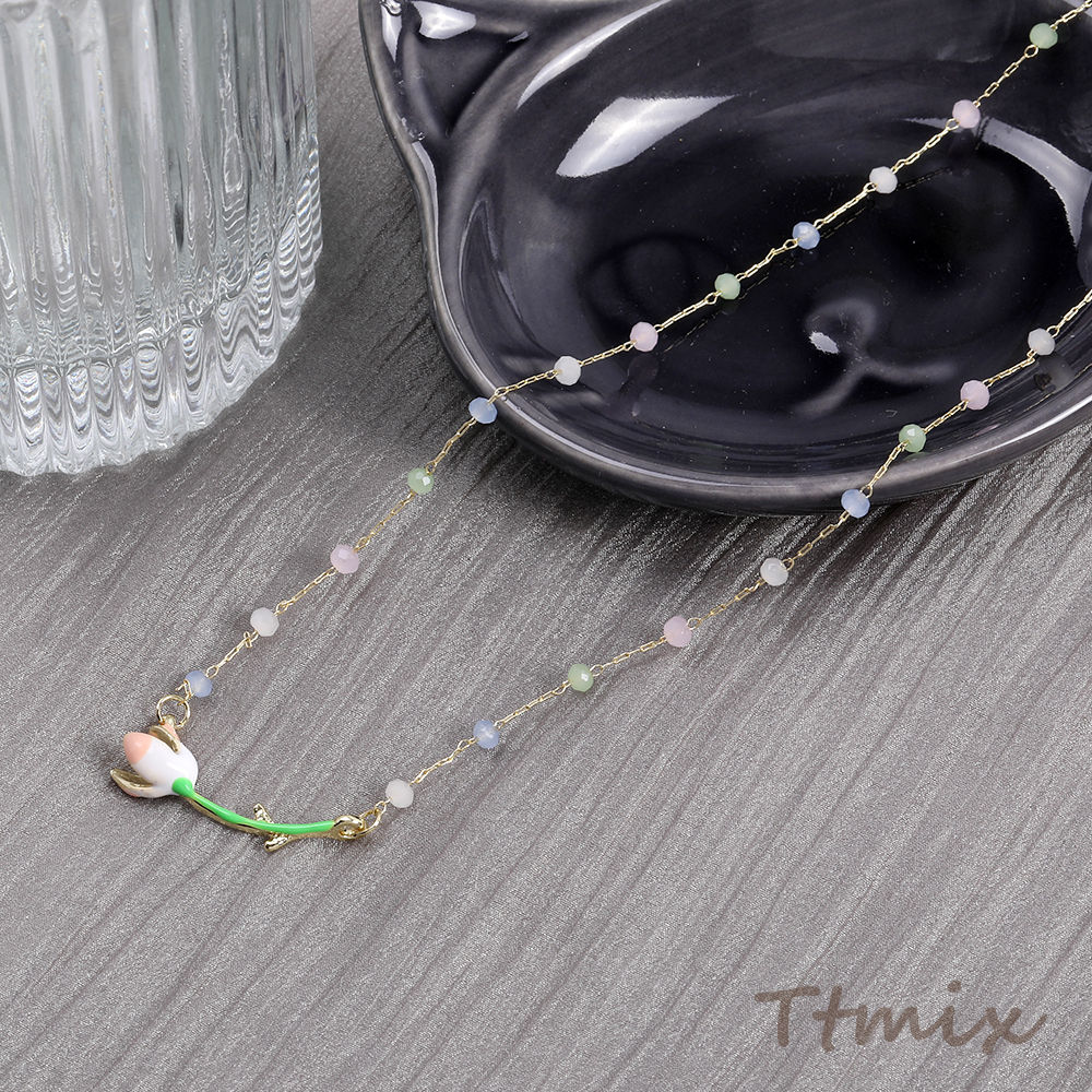 カラーガラスビーズネックレス フラワー(1連)