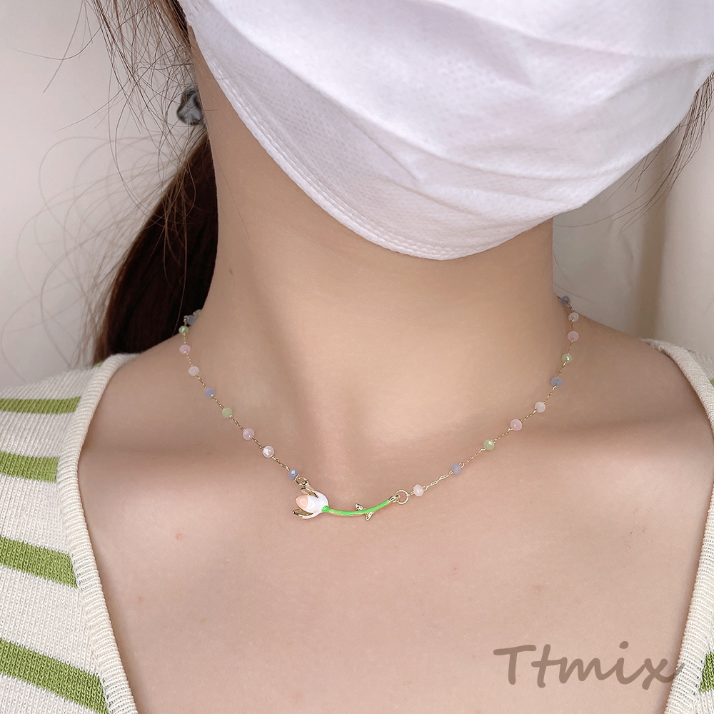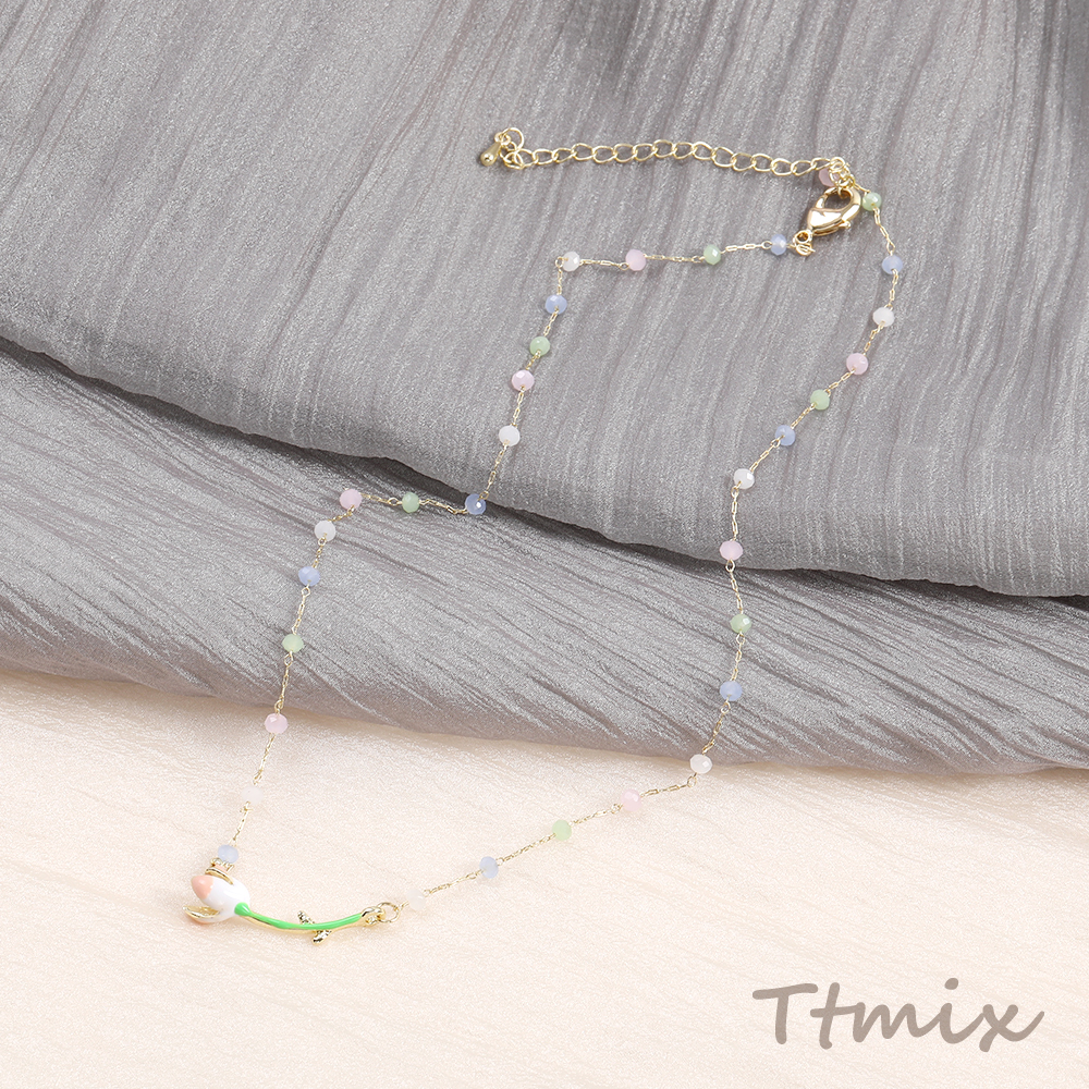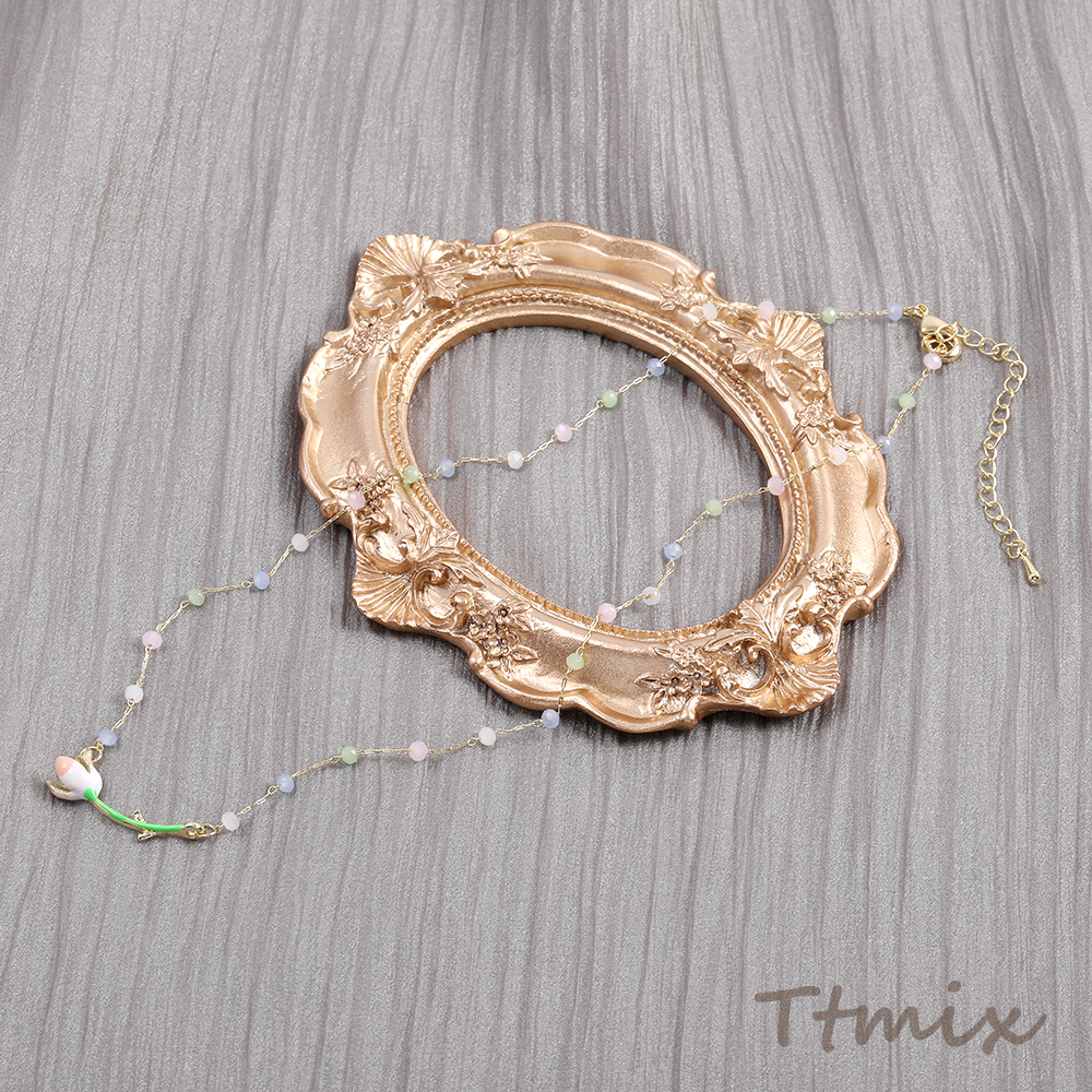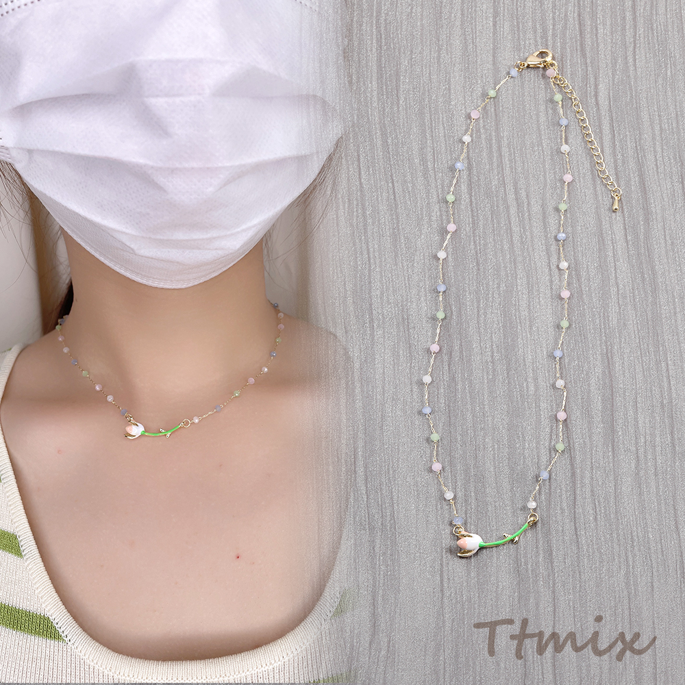 カラーガラスビーズネックレス フラワー(1連)