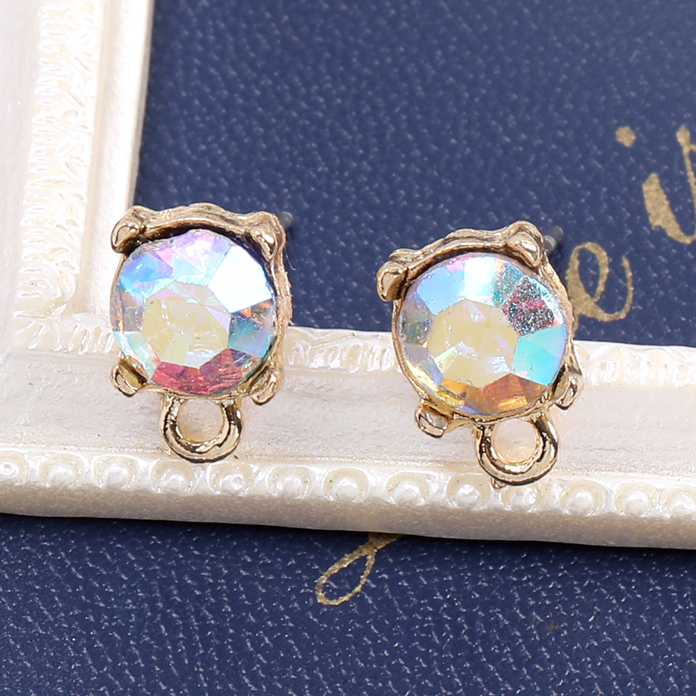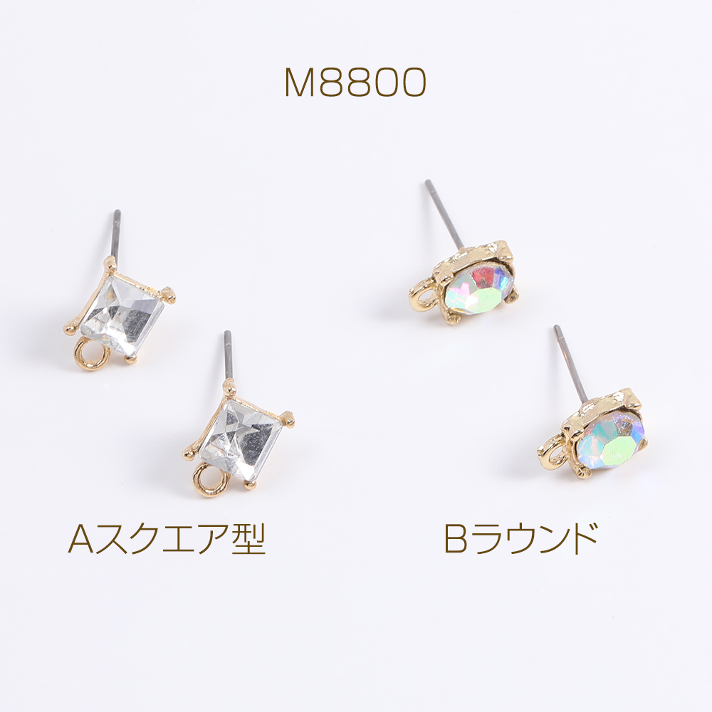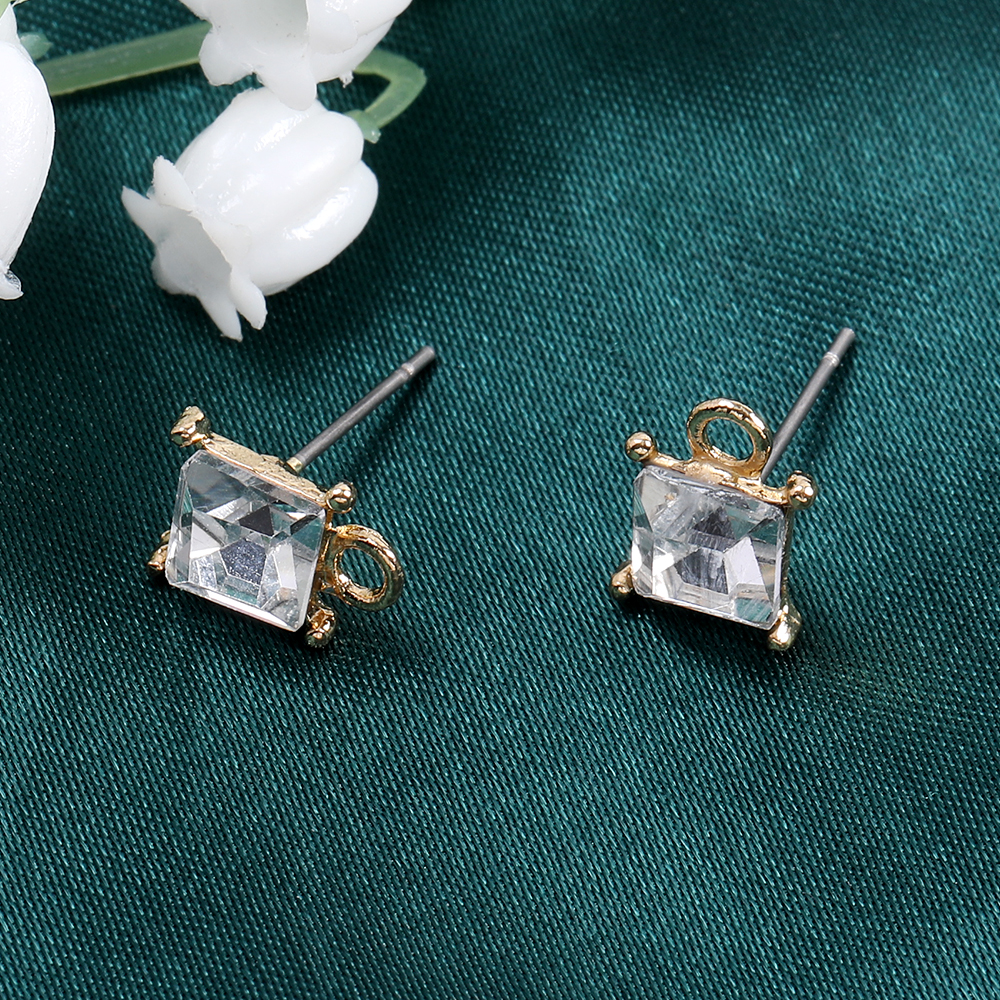 デザインチタンピアス ラインストーン付き スクエア型 ラウンド カン付き ゴールド(6ヶ)