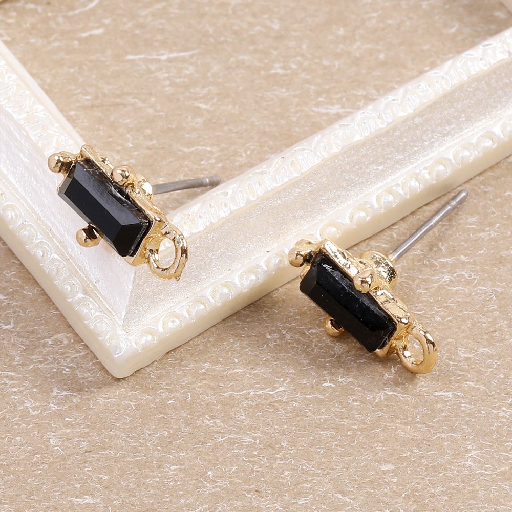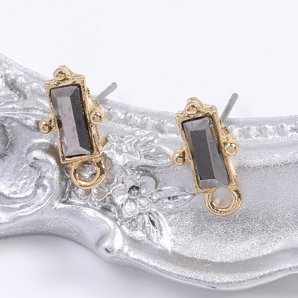 デザインチタンピアス ラインストーン付き 長方形型 カン付き 7×13mm ゴールド(6ヶ)
