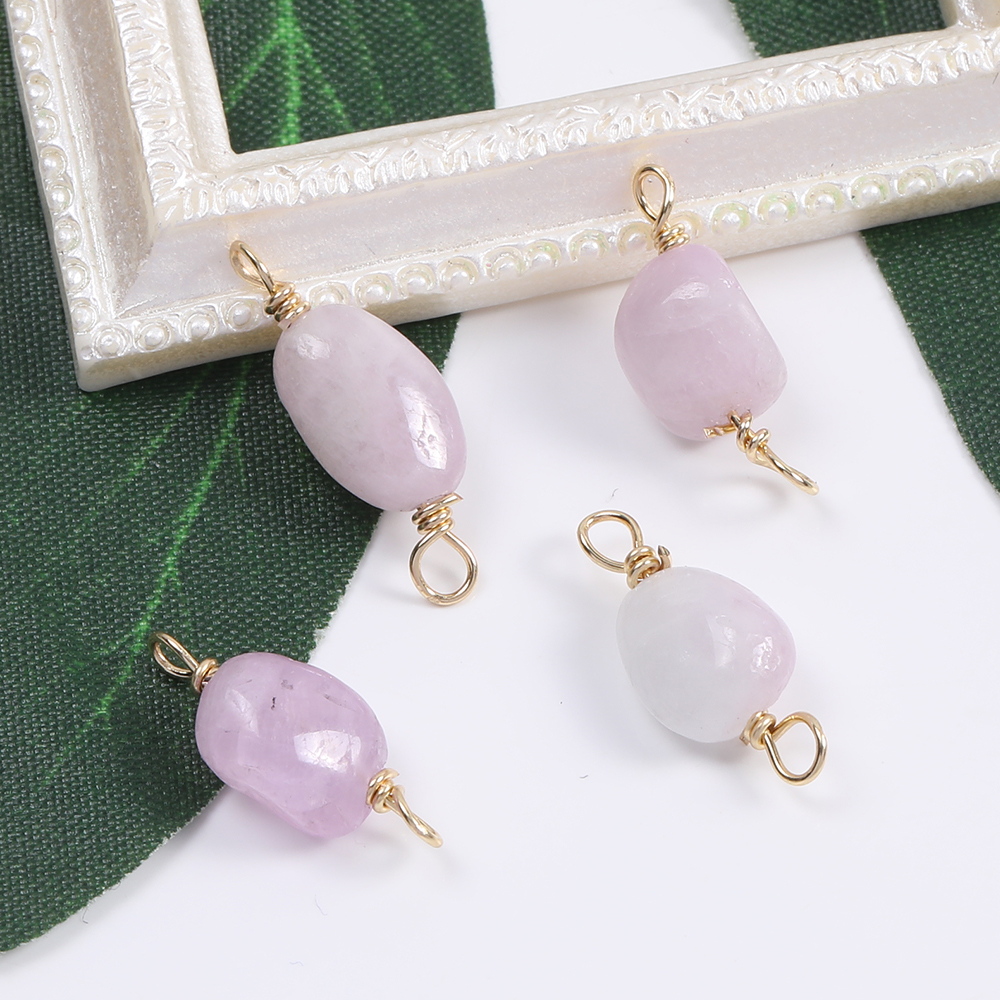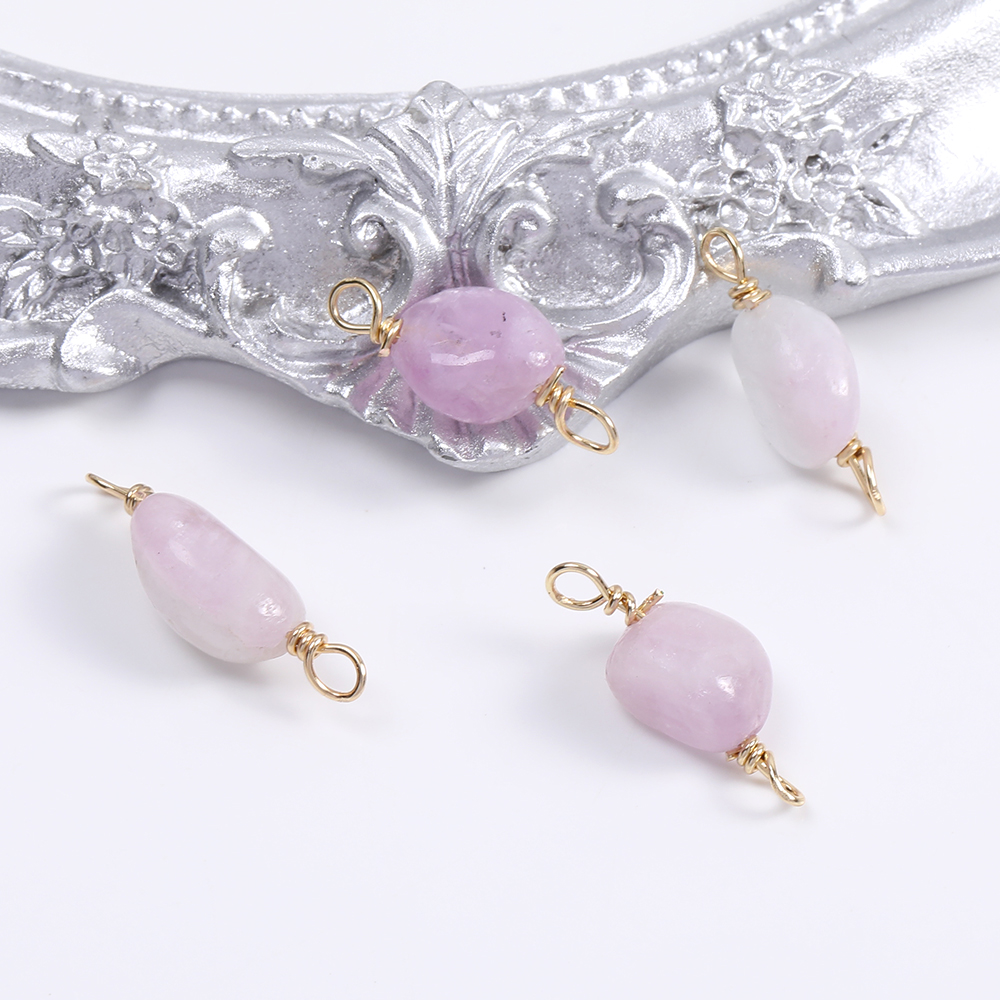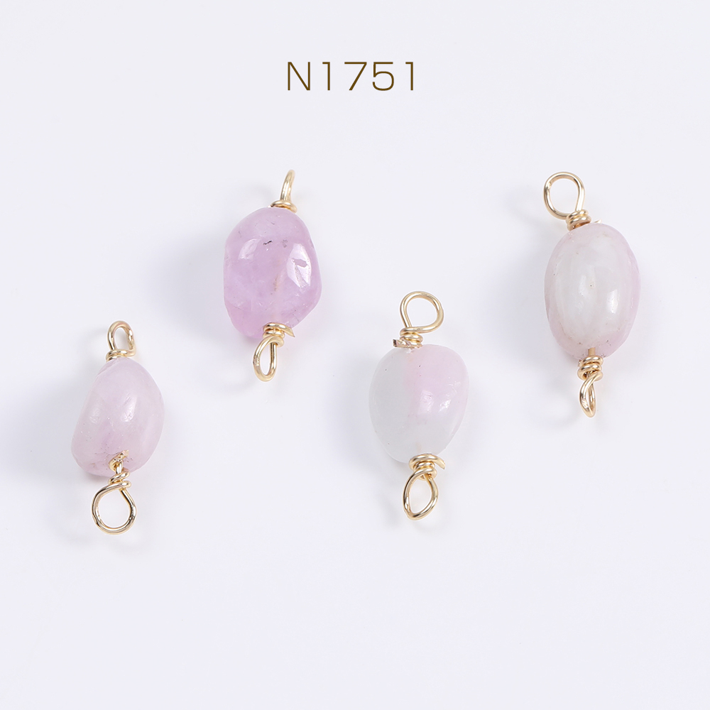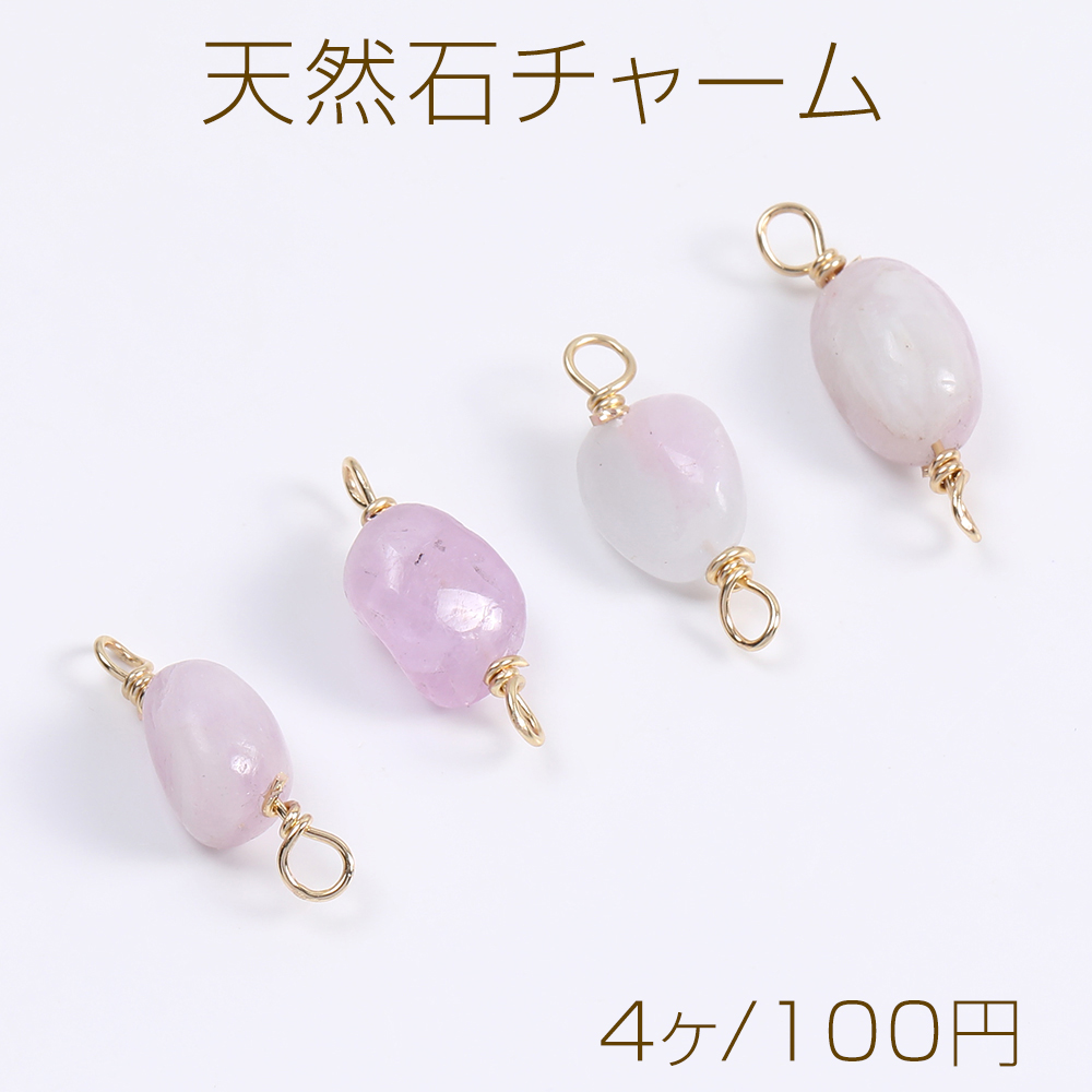 天然石チャーム 天然石コネクターチャーム パープルジェイド 2カン付き ゴールド(4ヶ)