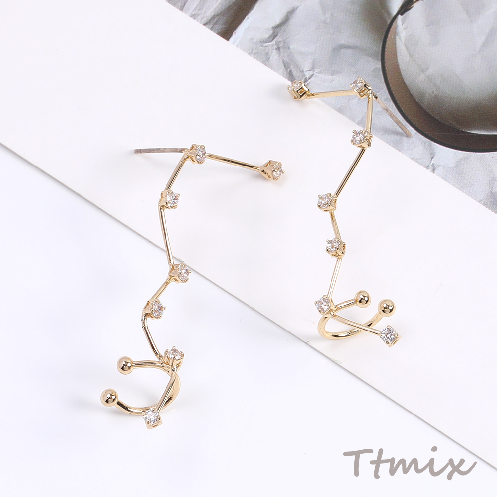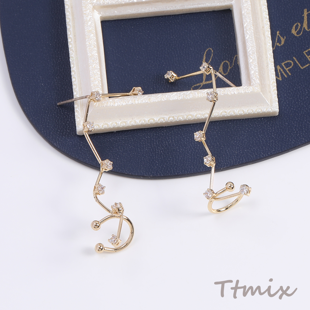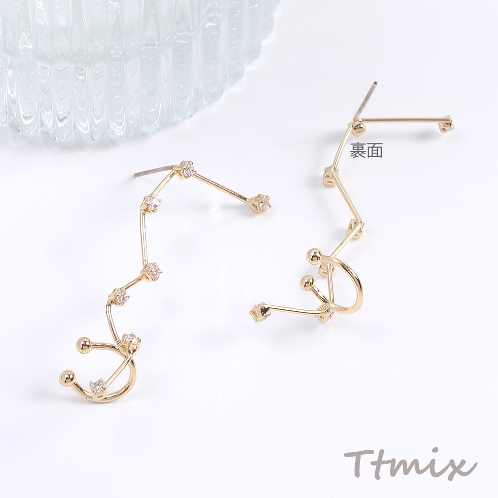 デザインピアス&イヤーカフ ジルコニア付き星座 14×50mm ゴールド(1ペア)