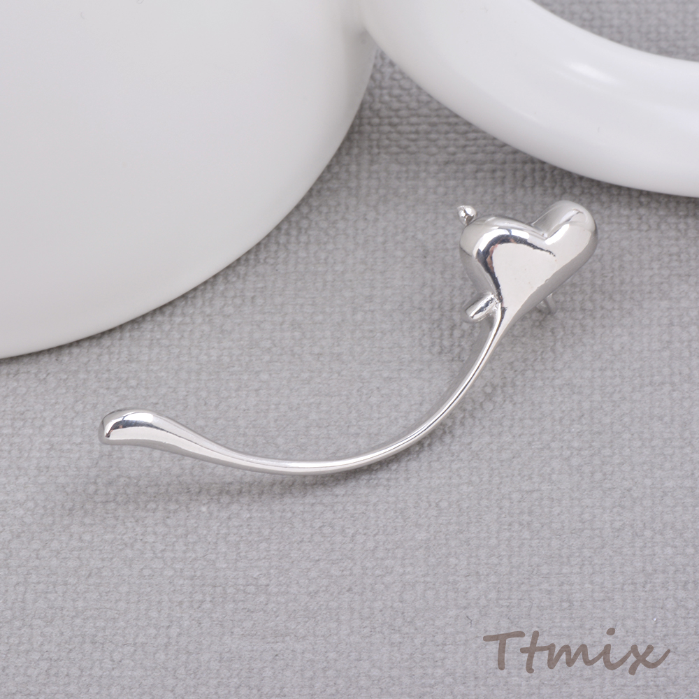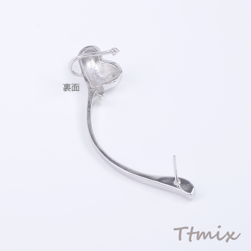 イヤーカフ&デザインピアス ハート型 片耳用 ロジウム(1ヶ)