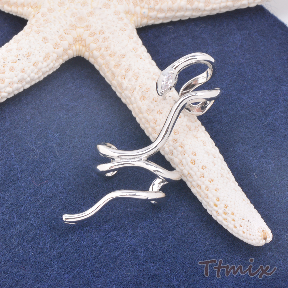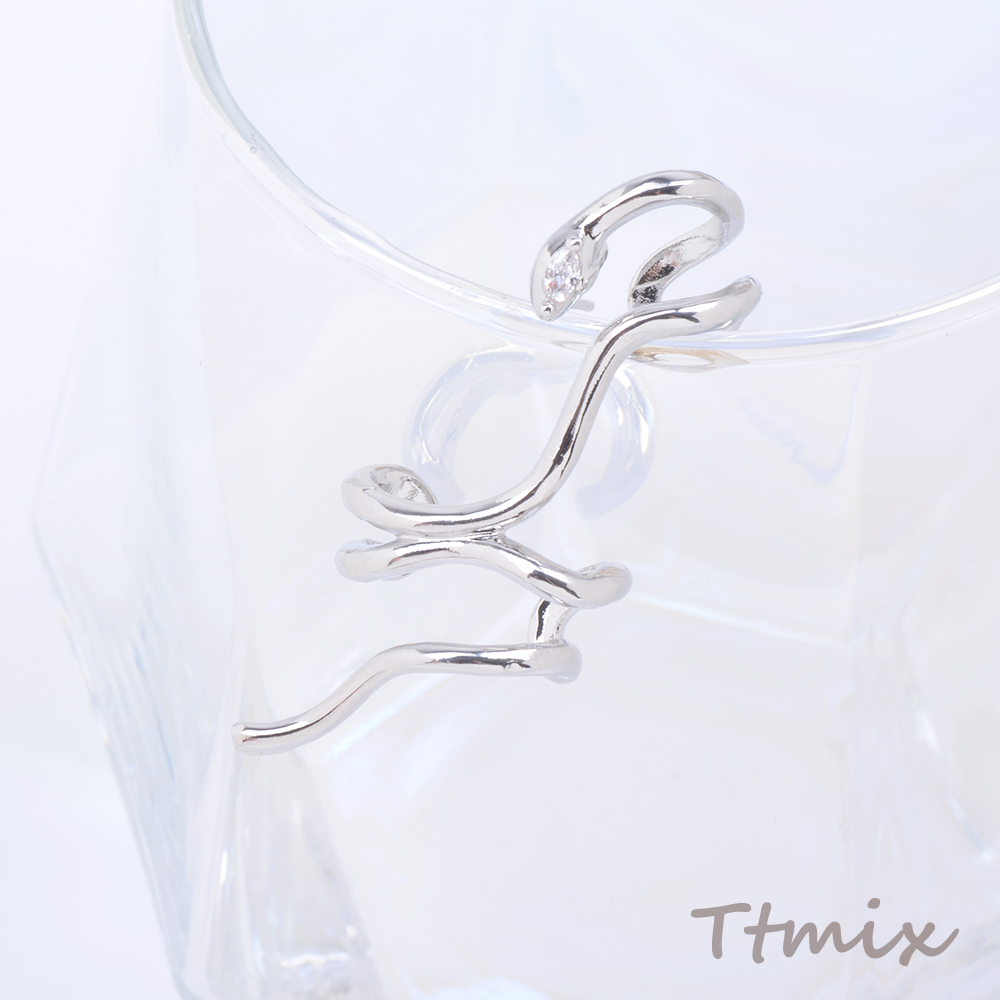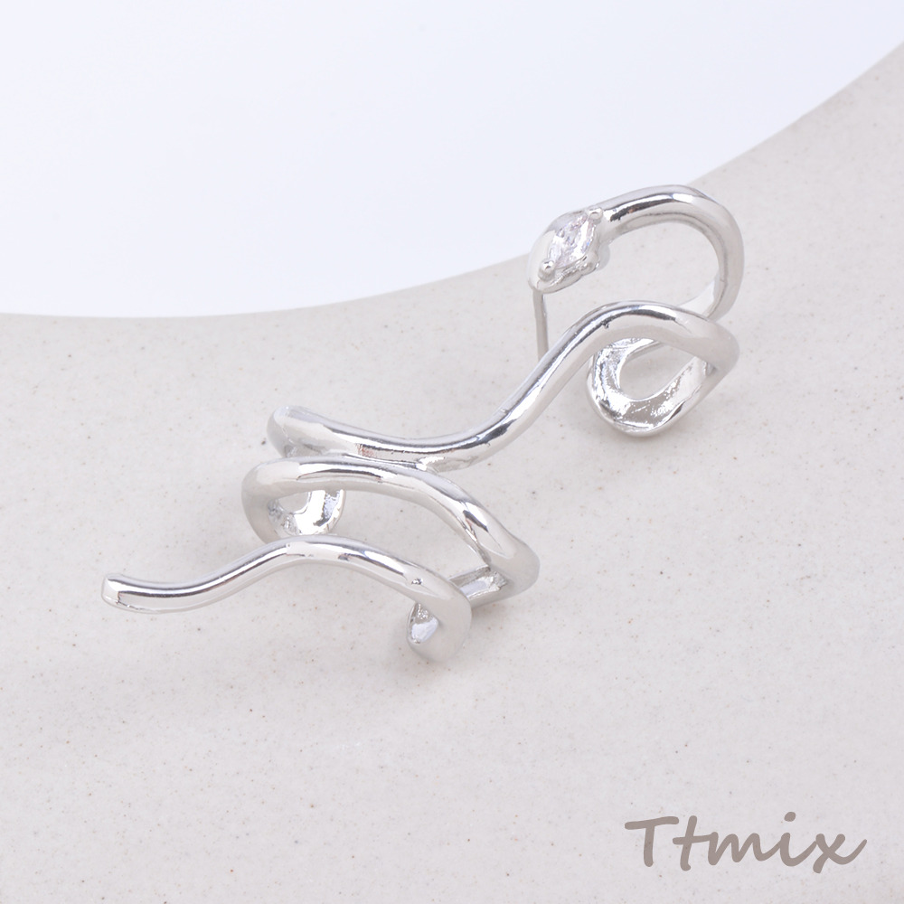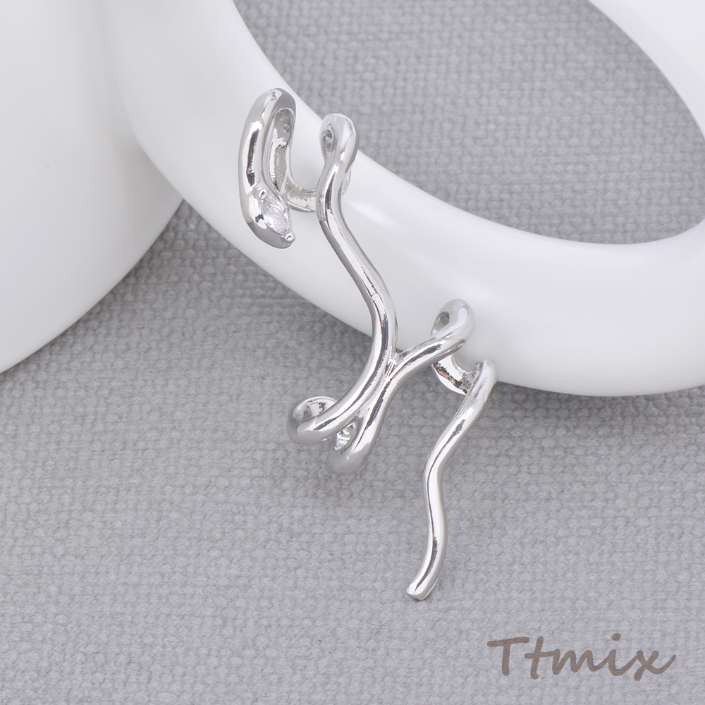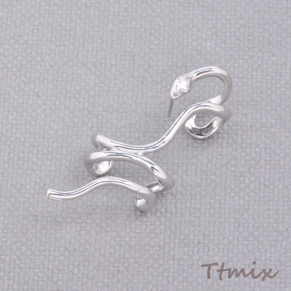 イヤーカフ&デザインピアス ヘビ型 片耳用 ロジウム(1ヶ)