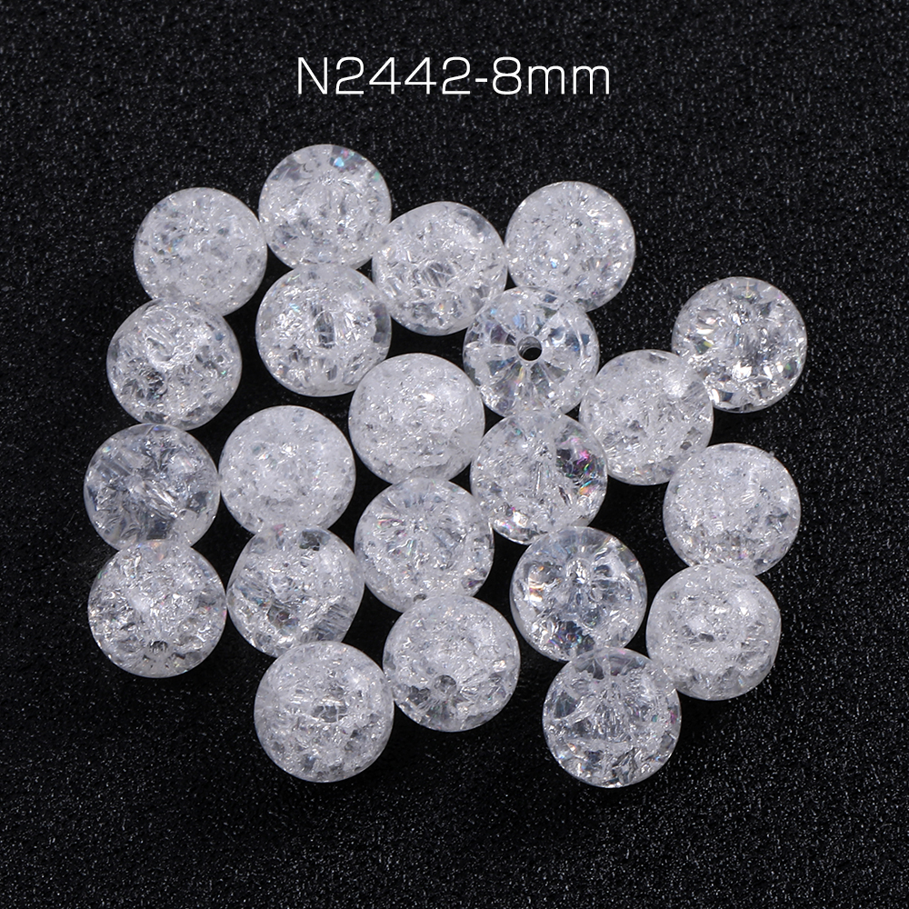 天然石ビーズ 合成クラック水晶 丸玉 8mm(15ヶ)
