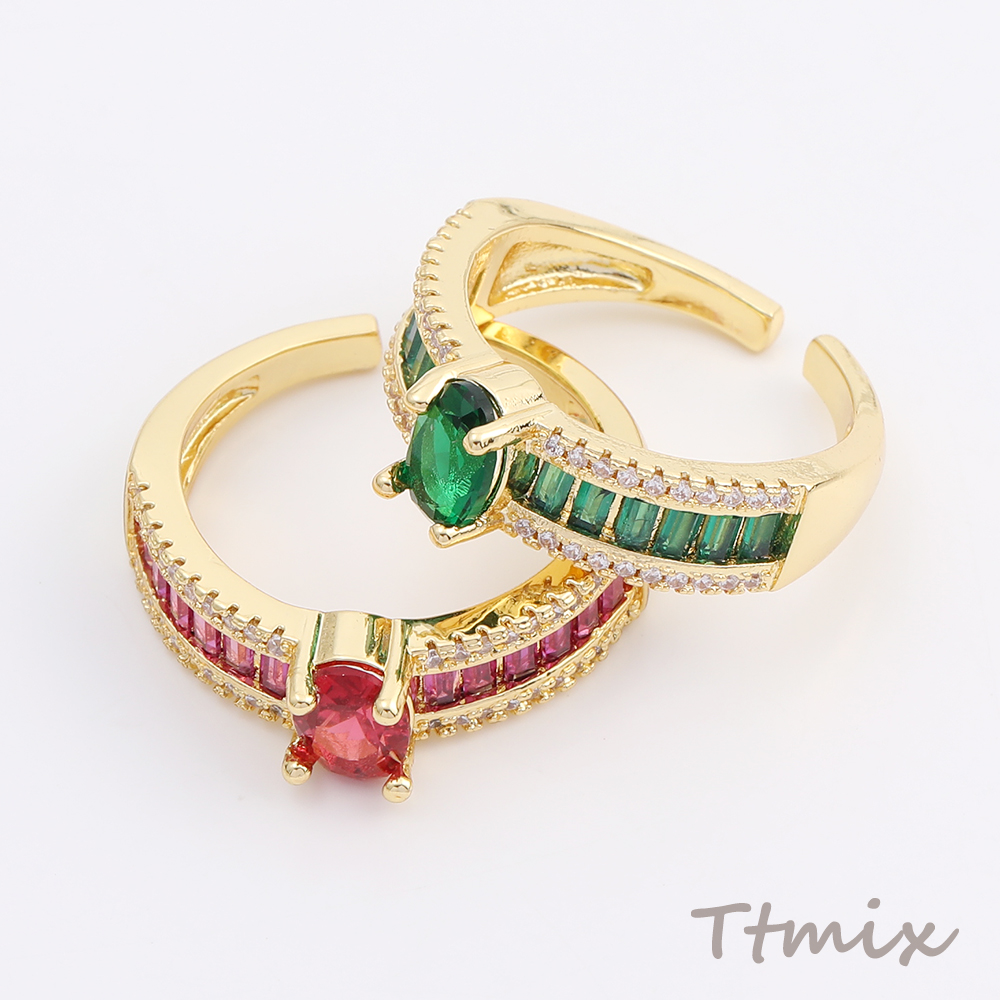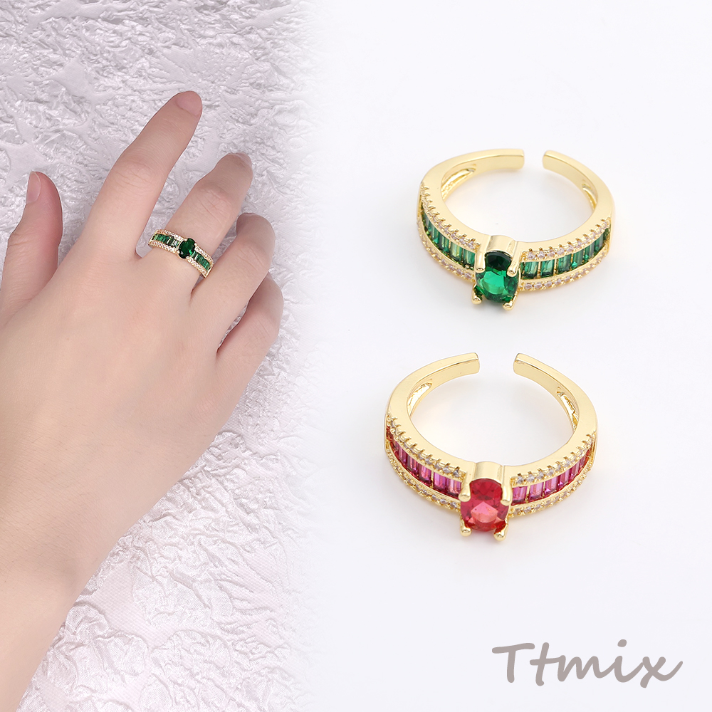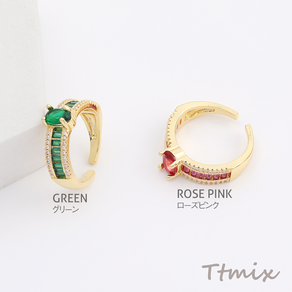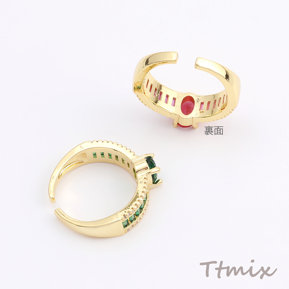 高品質ジルコニアリング デザインリング 指輪 オーバル 幅約7mm ゴールド(1ヶ)