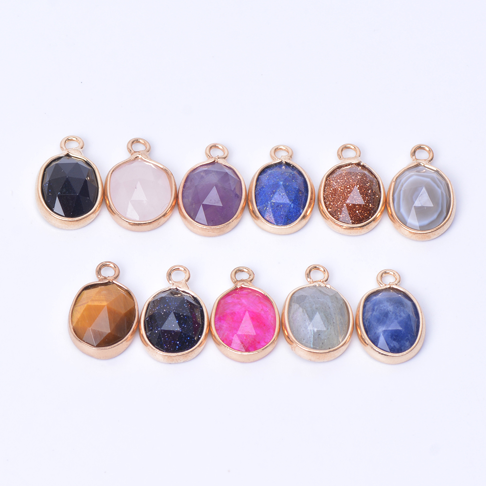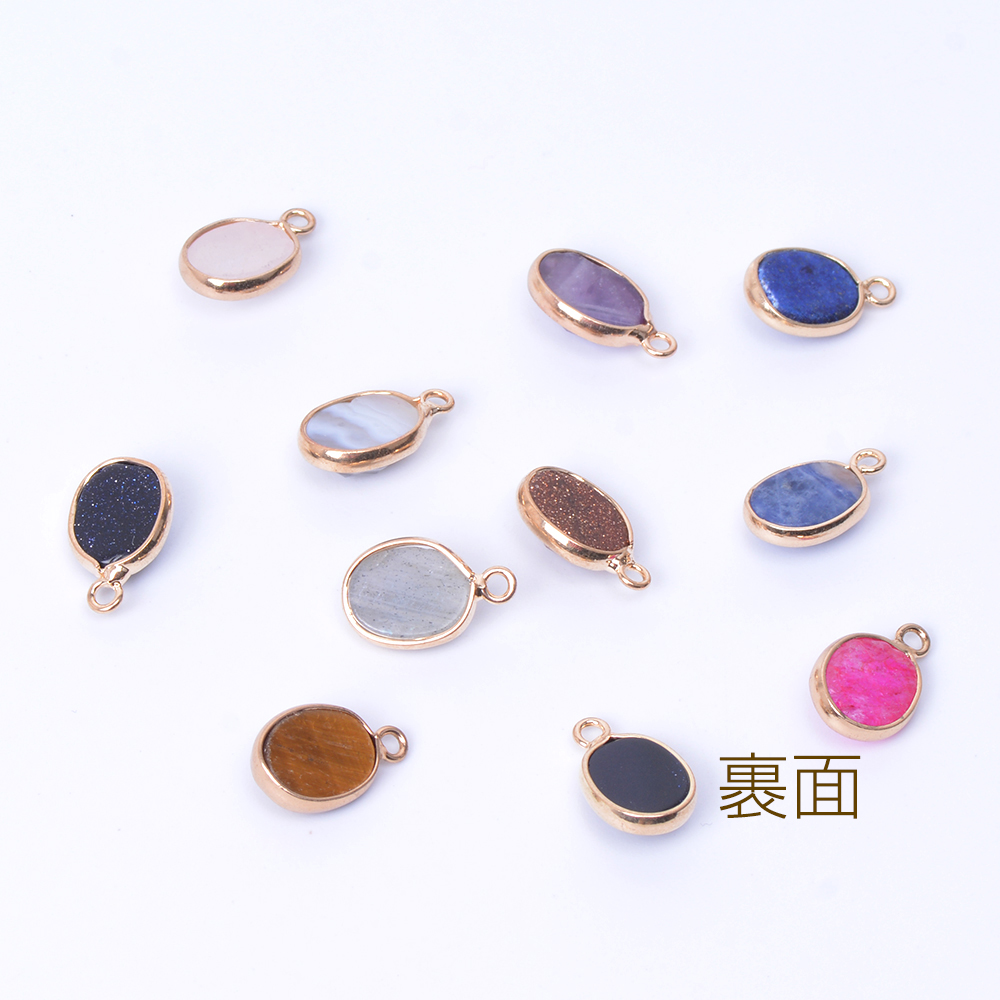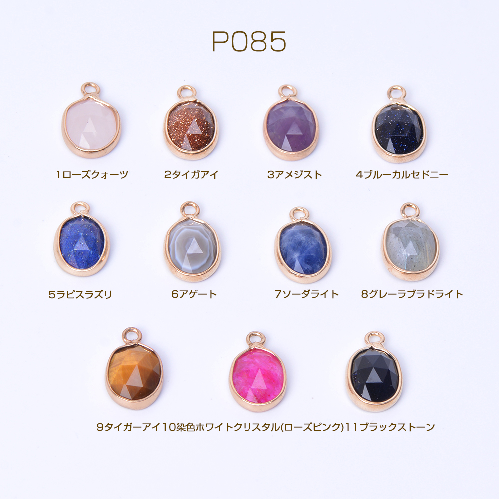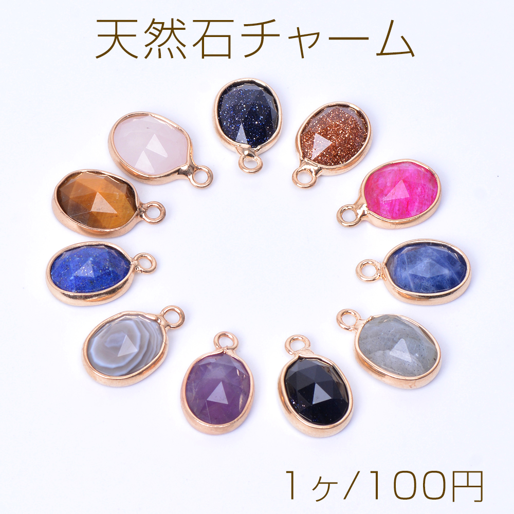 天然石チャーム オーバルカット カン付き 9×14mm ゴールド(1ヶ)