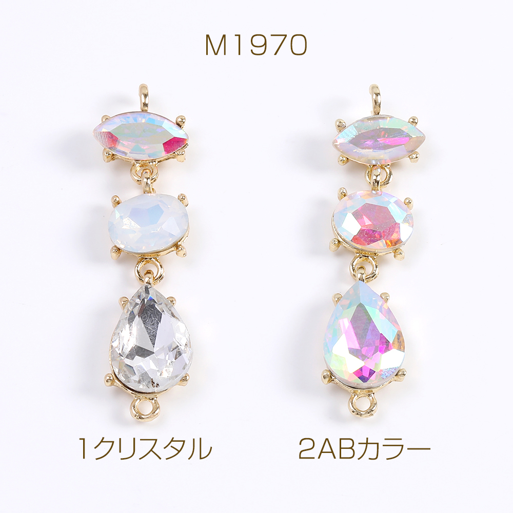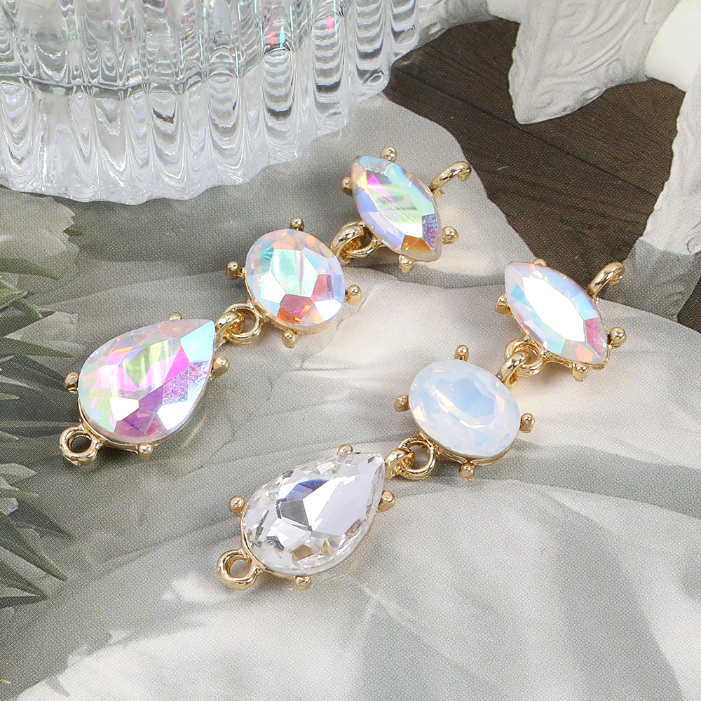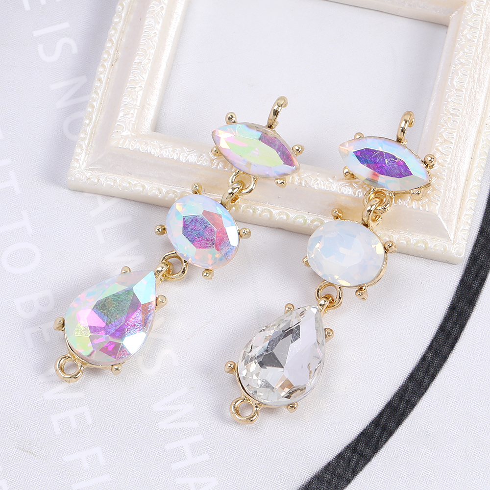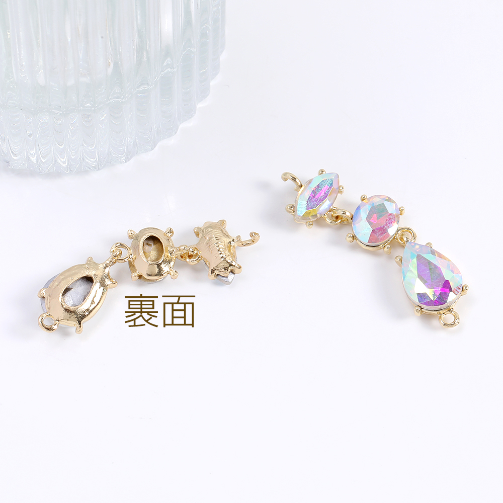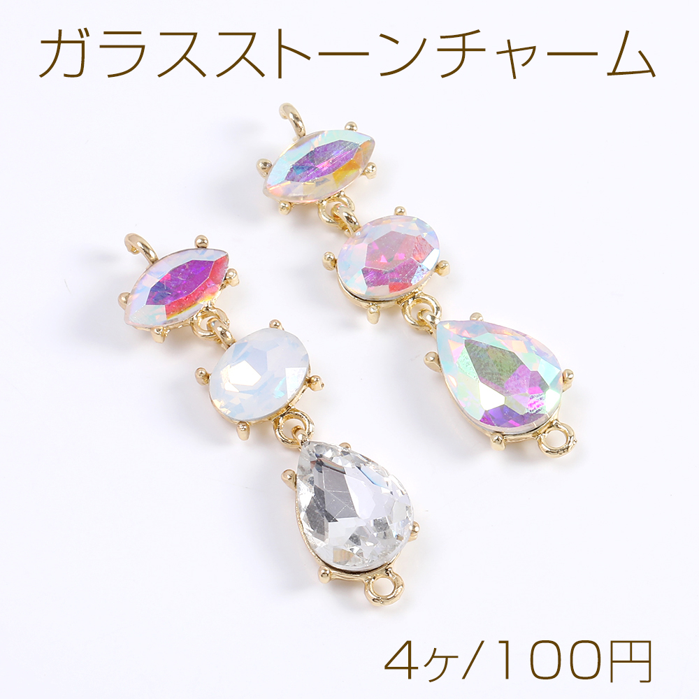 ガラスストーンチャーム コネクターチャーム 幾何学型 2カン付き 12×45mm ゴールド(4ヶ)