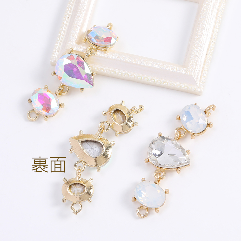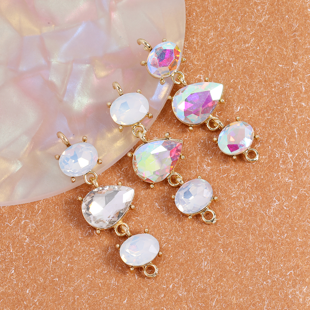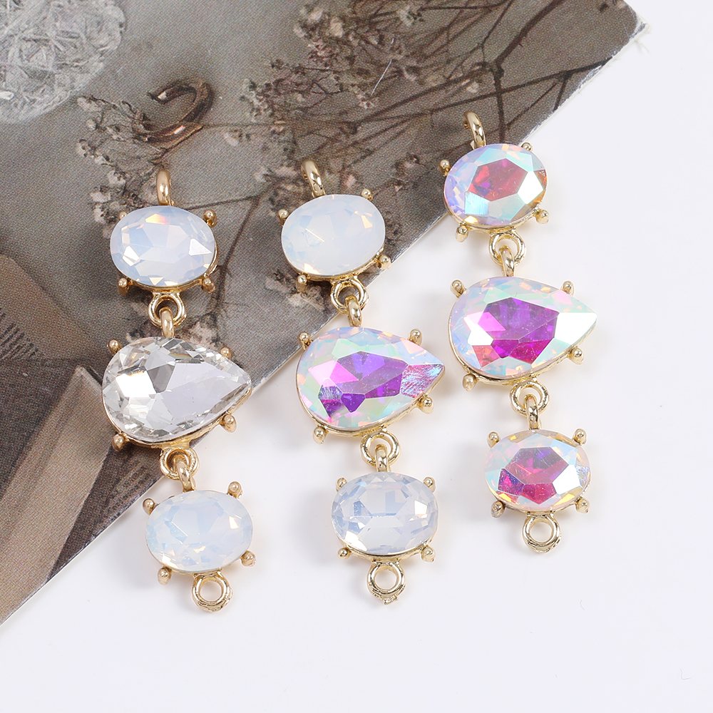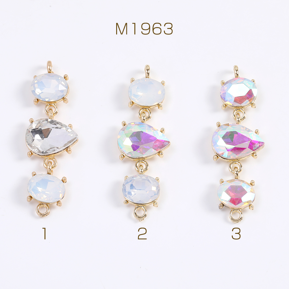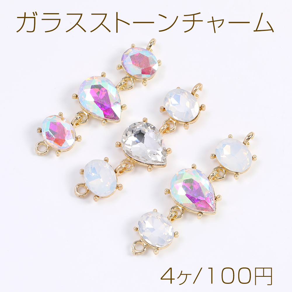 ガラスストーンチャーム コネクターチャーム 幾何学型 2カン付き 14×44mm ゴールド