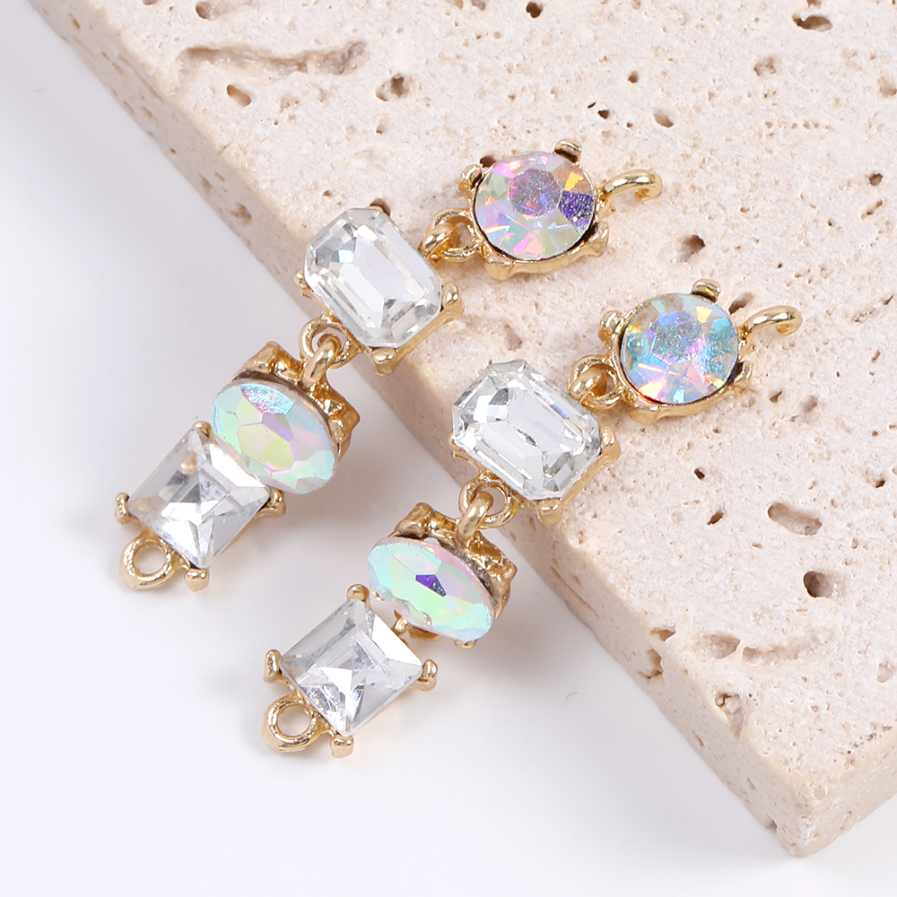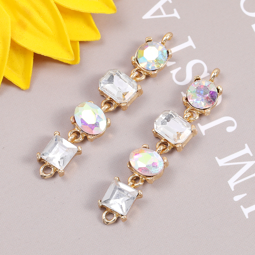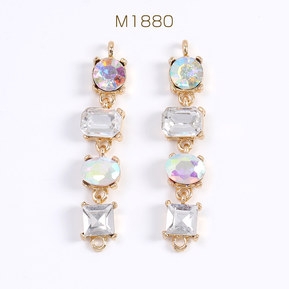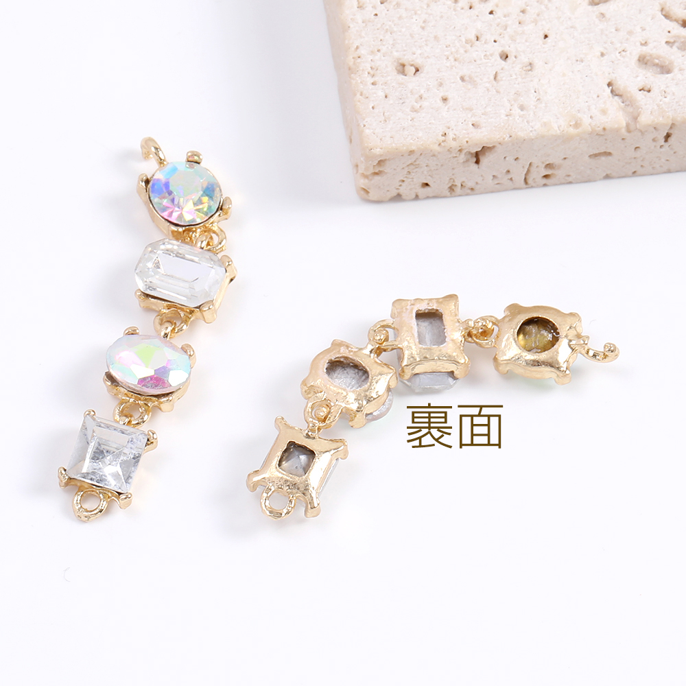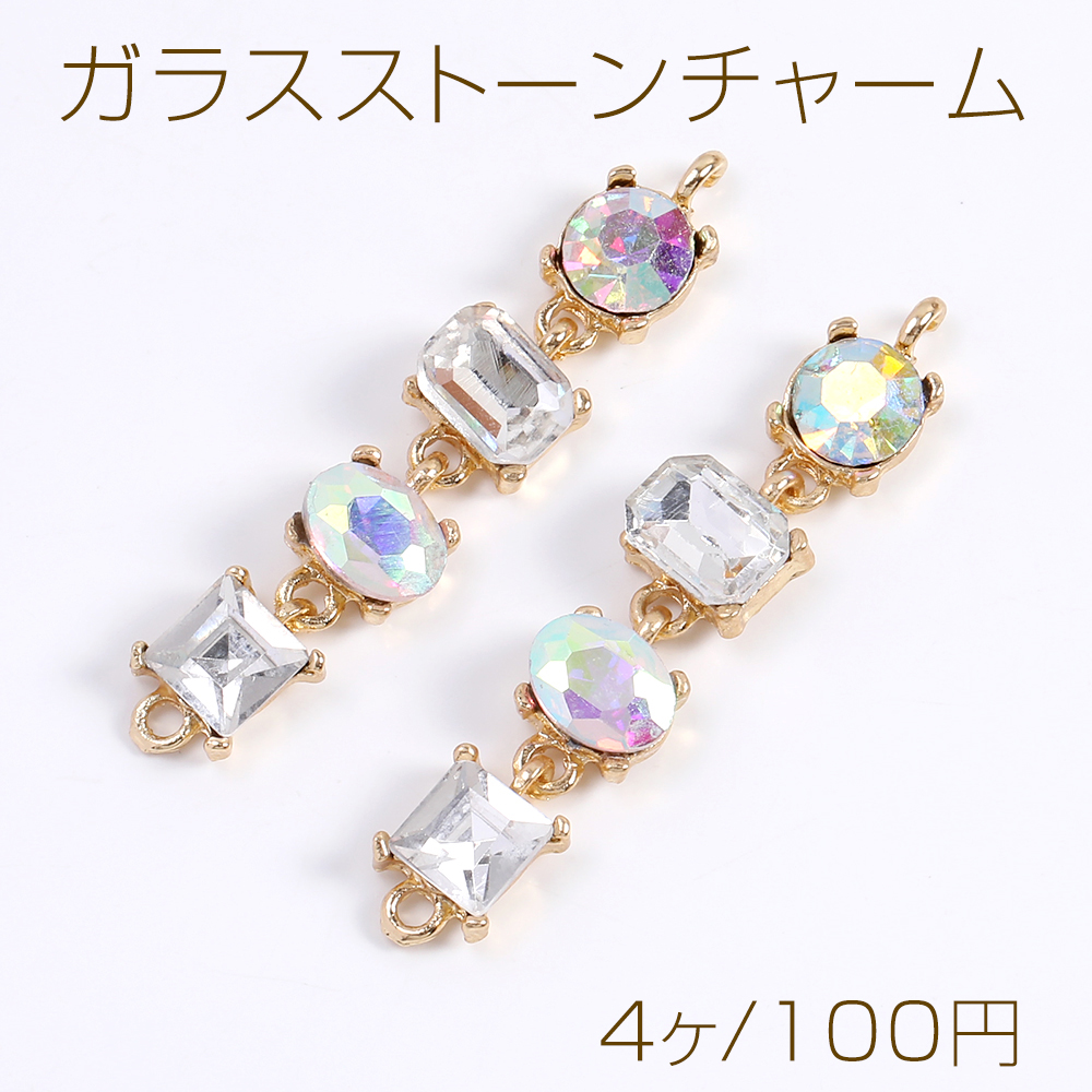 ガラスストーンチャーム コネクターチャーム 幾何学型 2カン付き 8×43mm ゴールド(4ヶ)