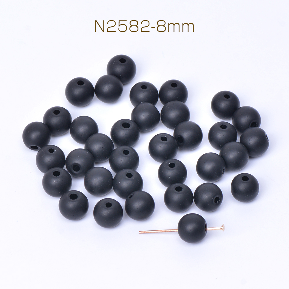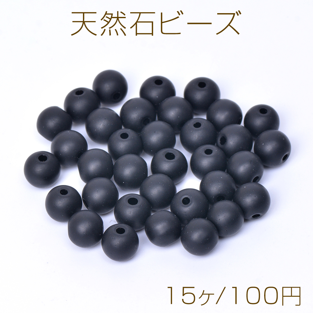 天然石ビーズ フロスト加工 ブラックストーン 丸玉 8mm(15ヶ)