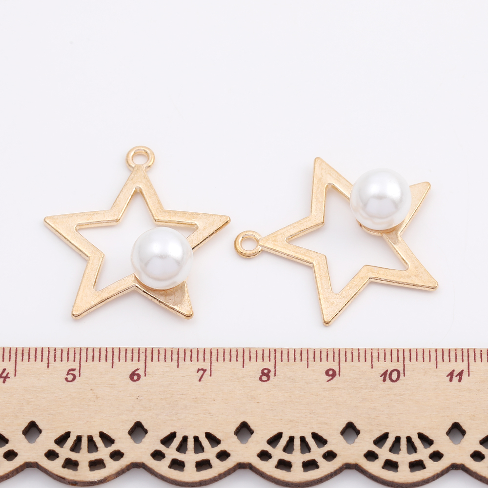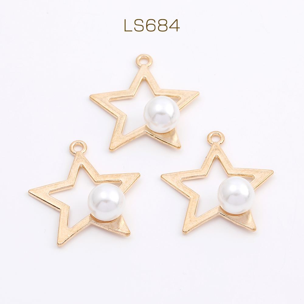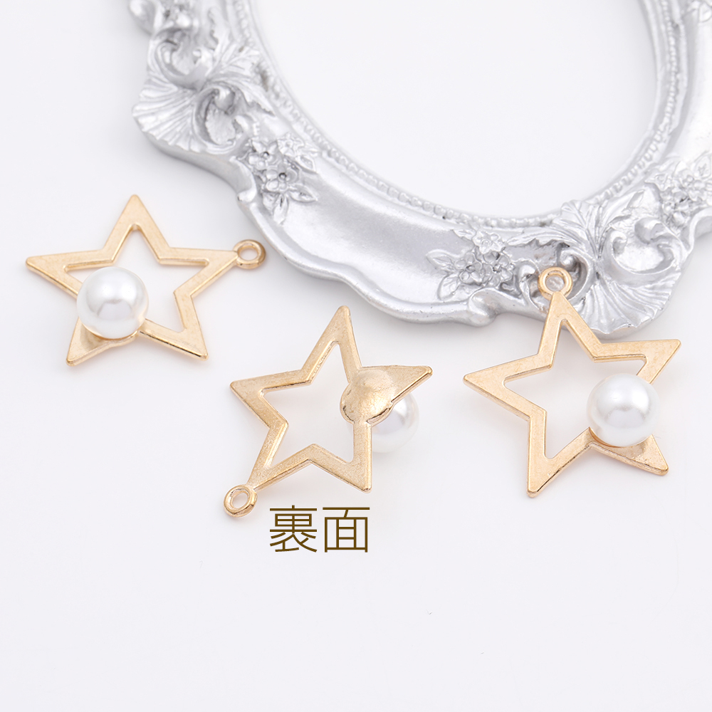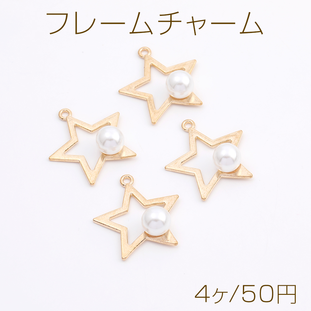 フレームチャーム 星形 パール付き 30×31mm ゴールド(4ヶ)