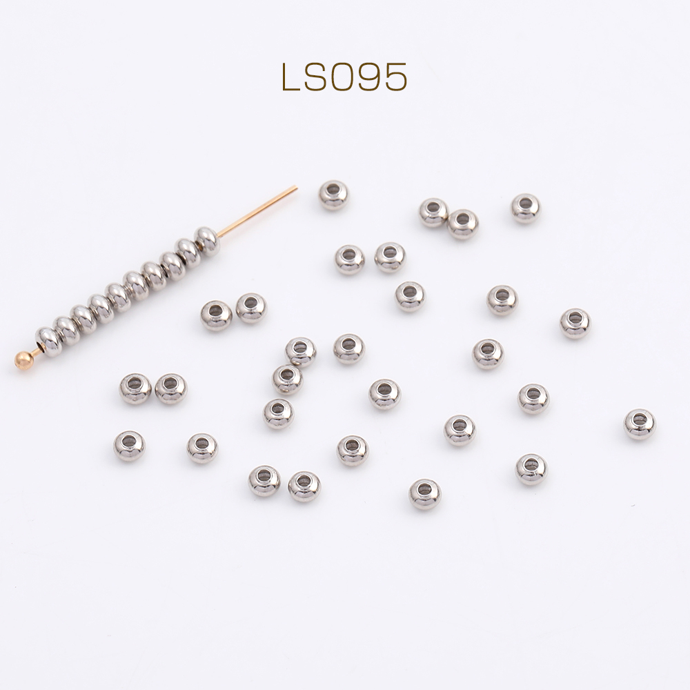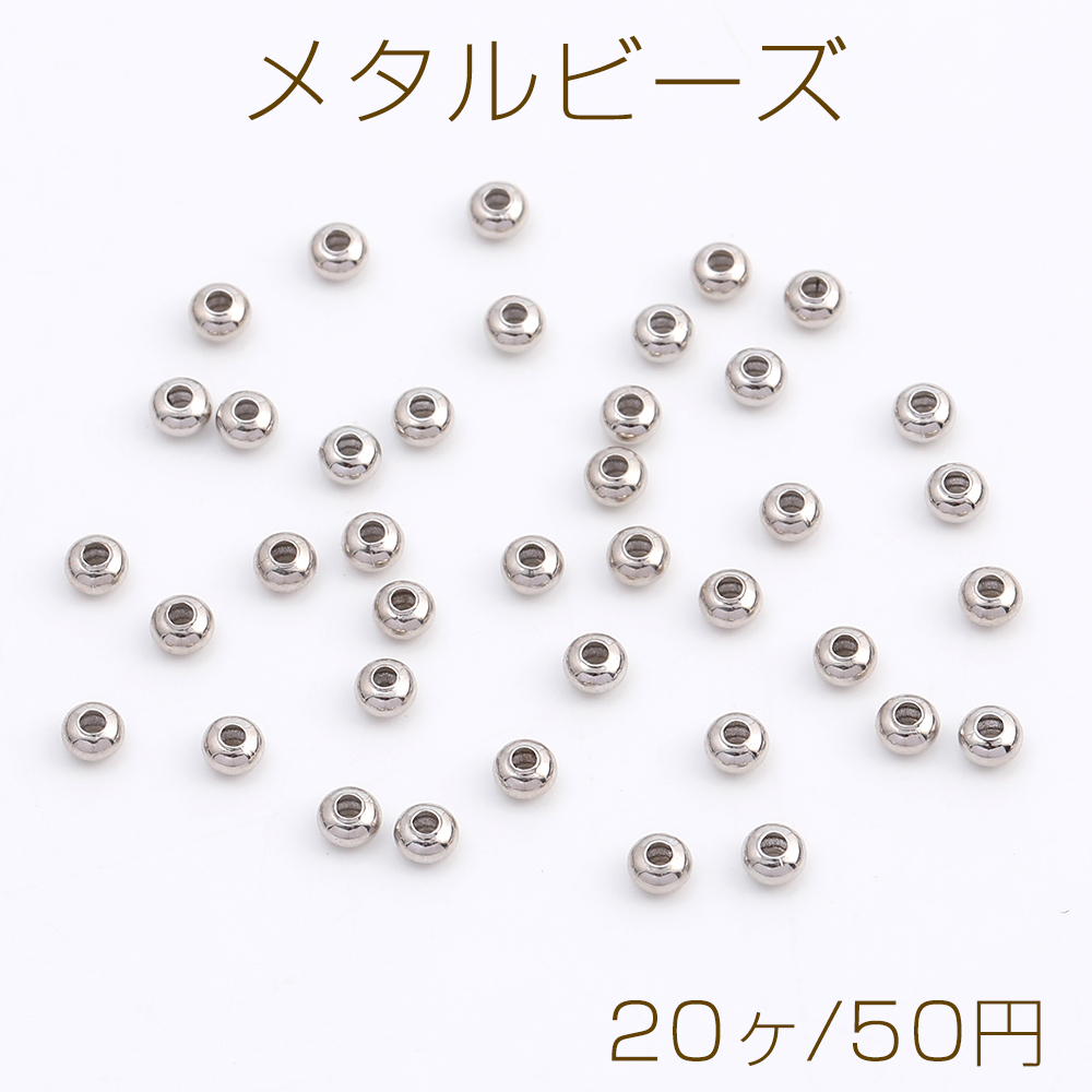 メタルビーズ ボタン型 2×3mm ロジウム(20ヶ)