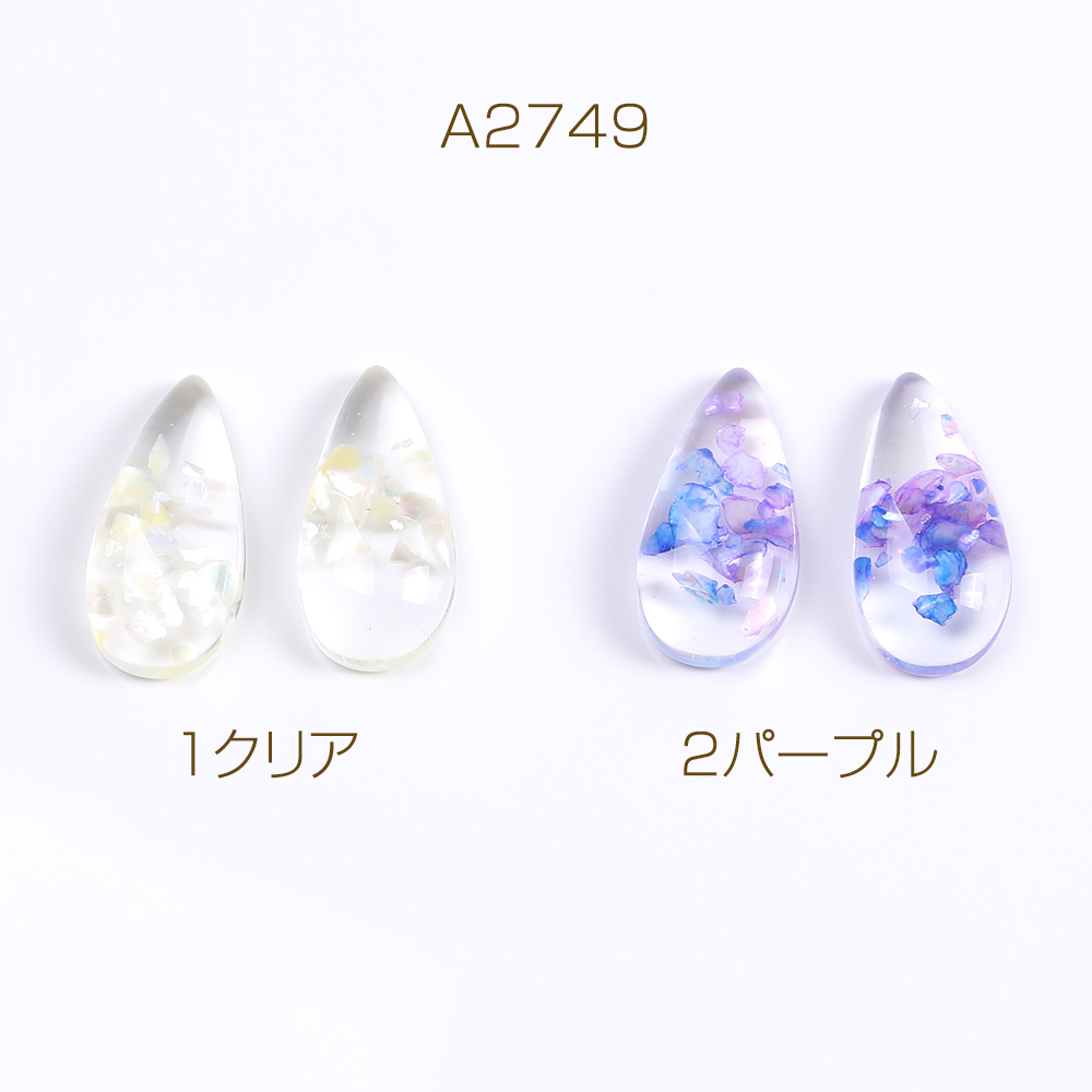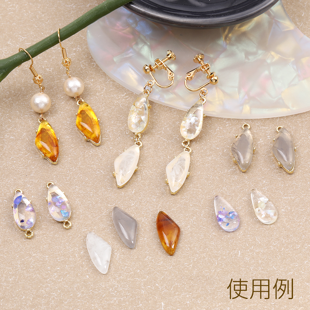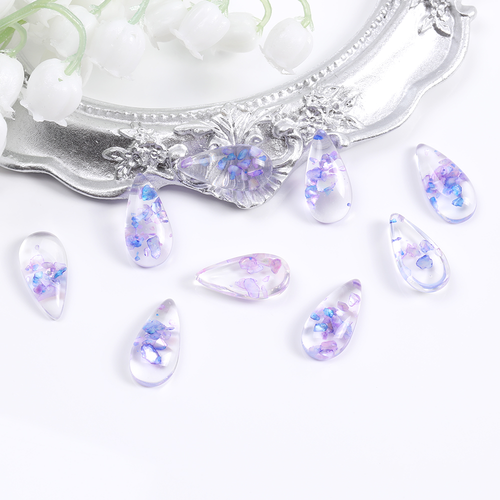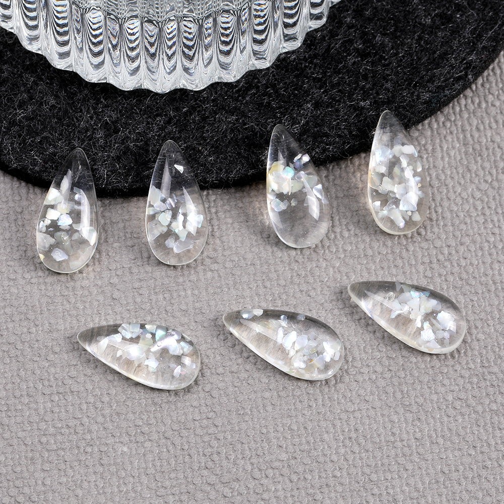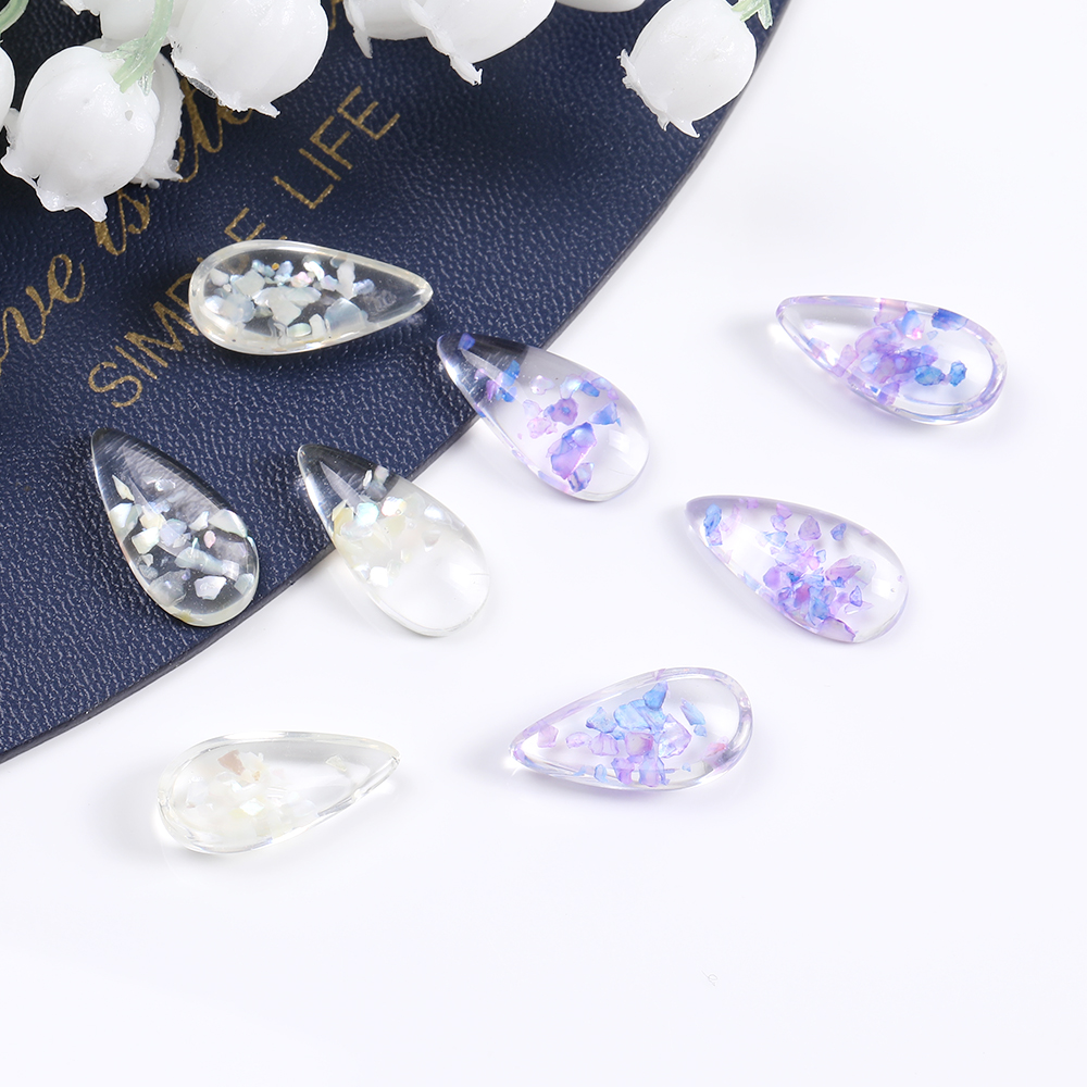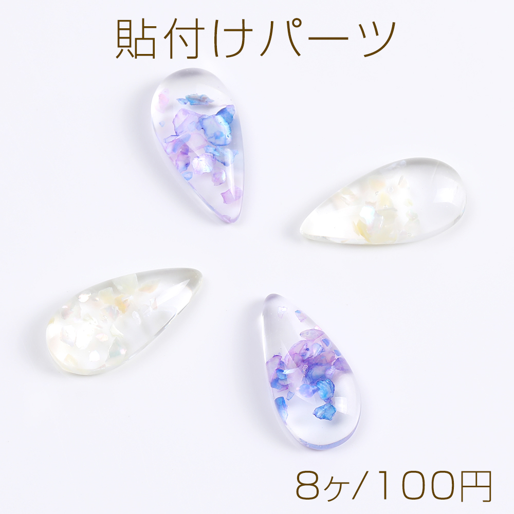 レジン調貼付けパーツ 樹脂製 カボション デコパーツ シェルパウダー入り しずく型 8.5×17mm(8ヶ)