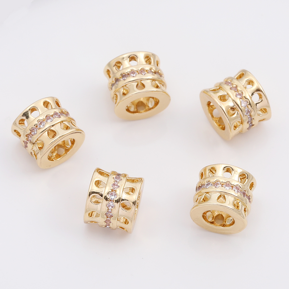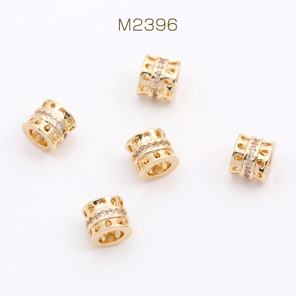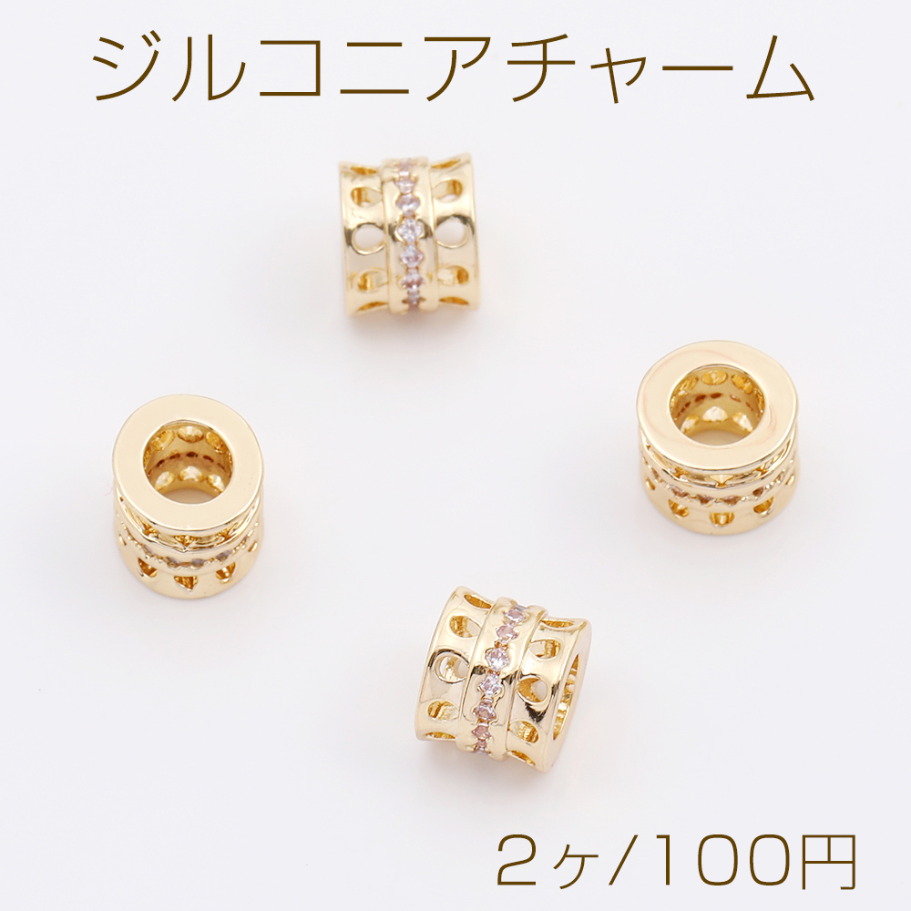 高品質ジルコニアチャーム 円筒形 6×7mm ゴールド(2ヶ)