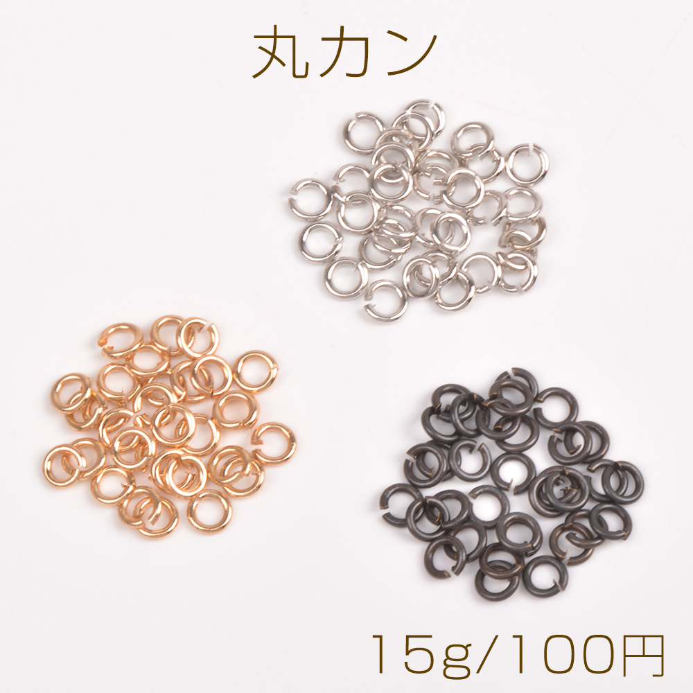 丸カン ミックス 0.6×3mm ゴールド&ロジウム&ブラックニッケル 各約5g(15g)