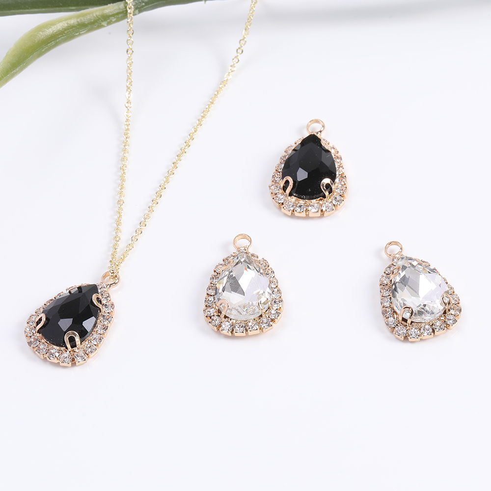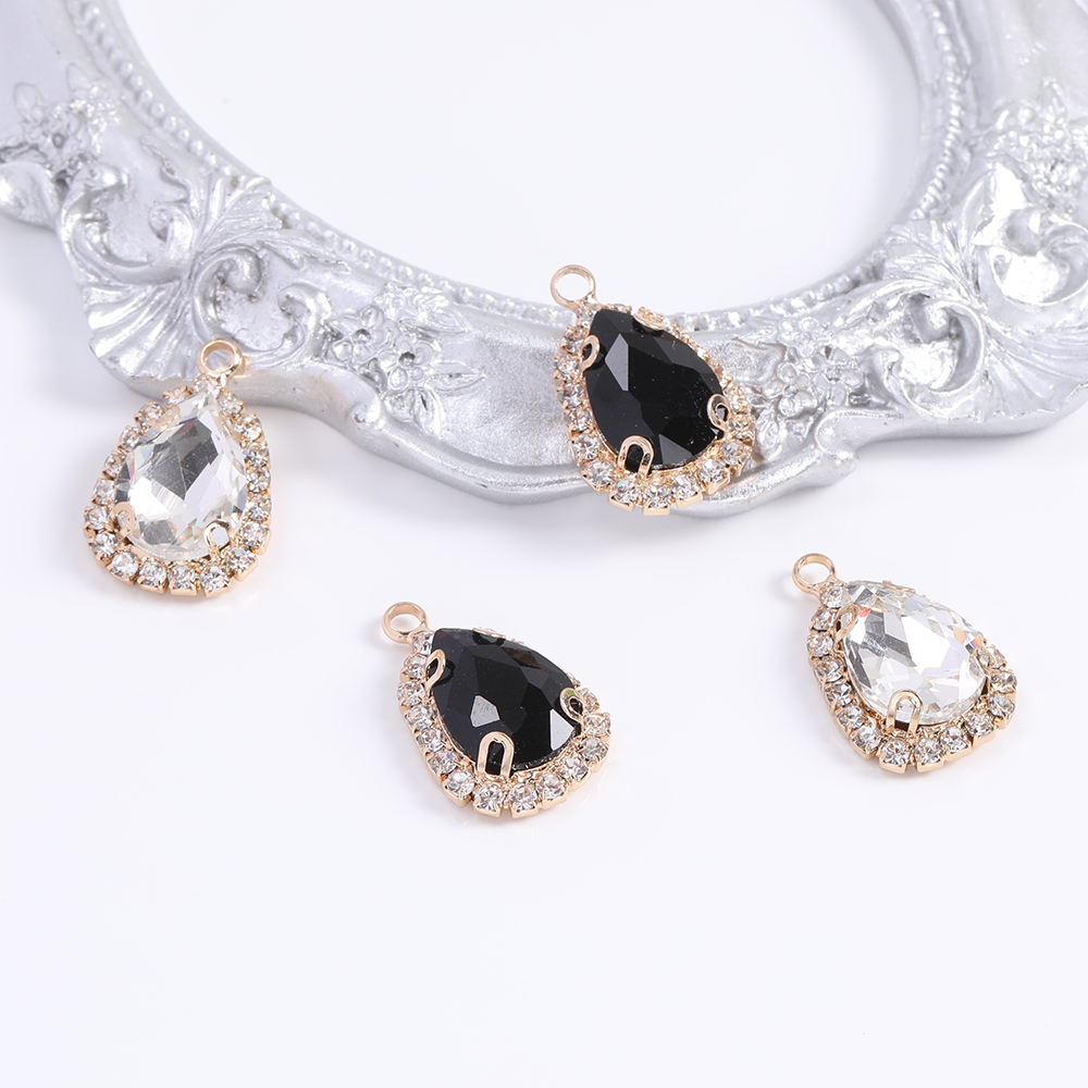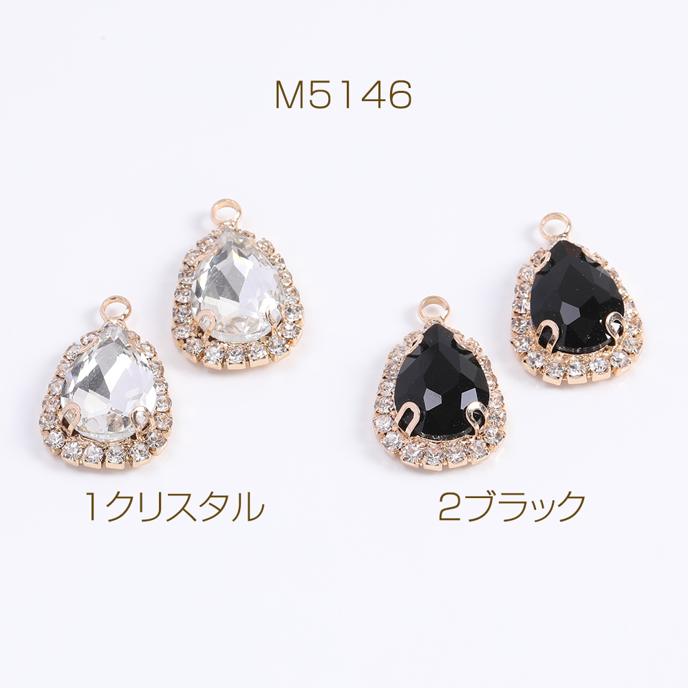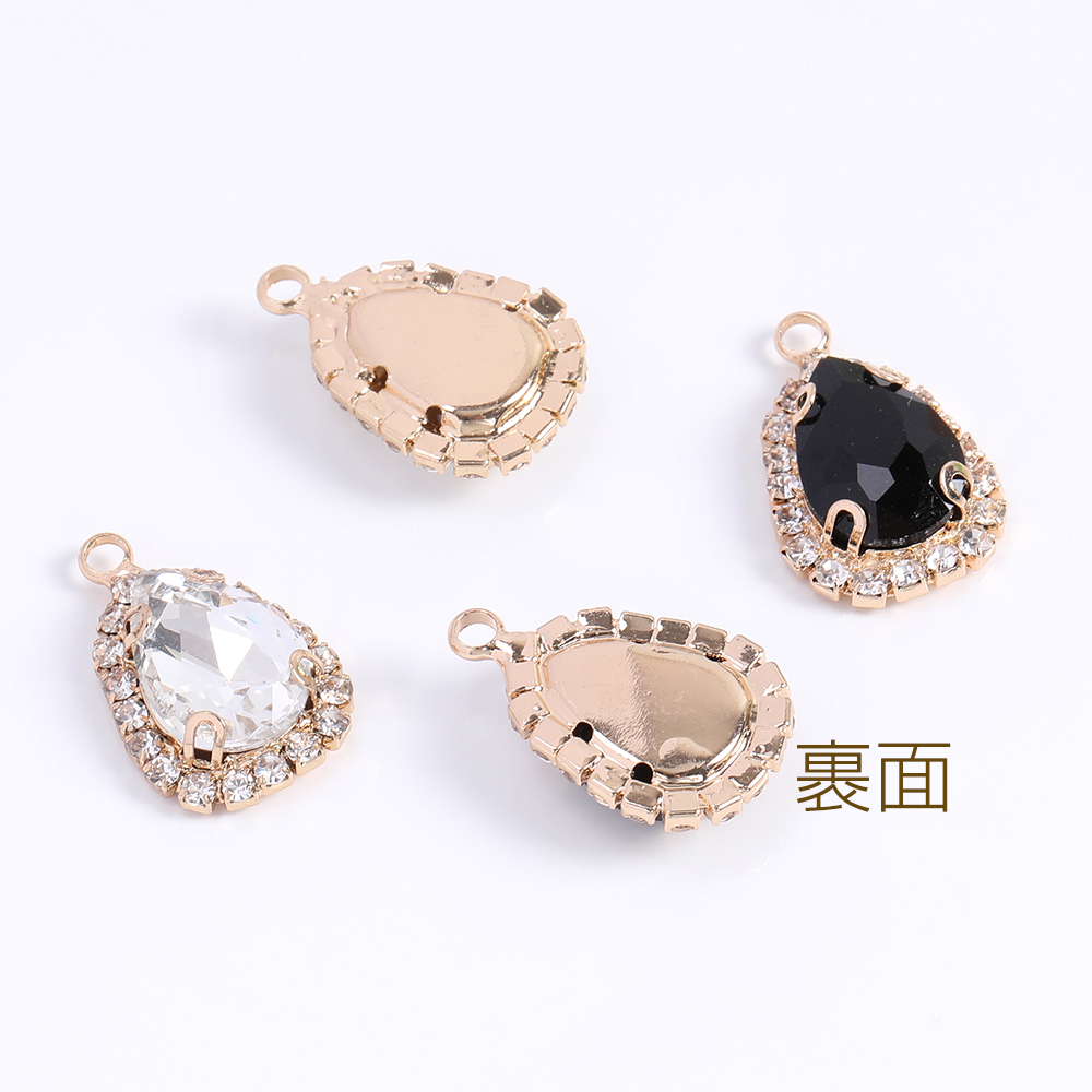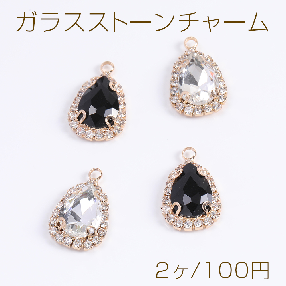 ガラスストーンチャーム しずく型 15×22mm ゴールド(2ヶ)