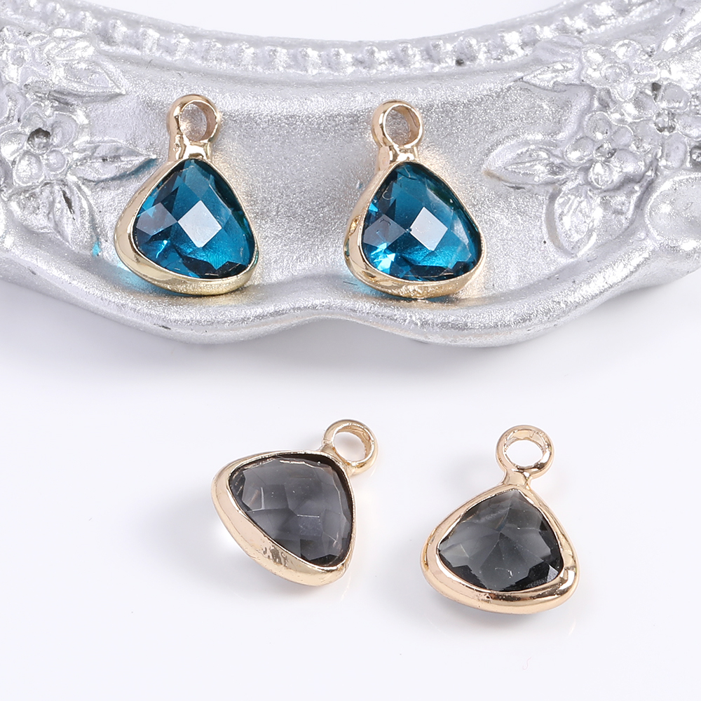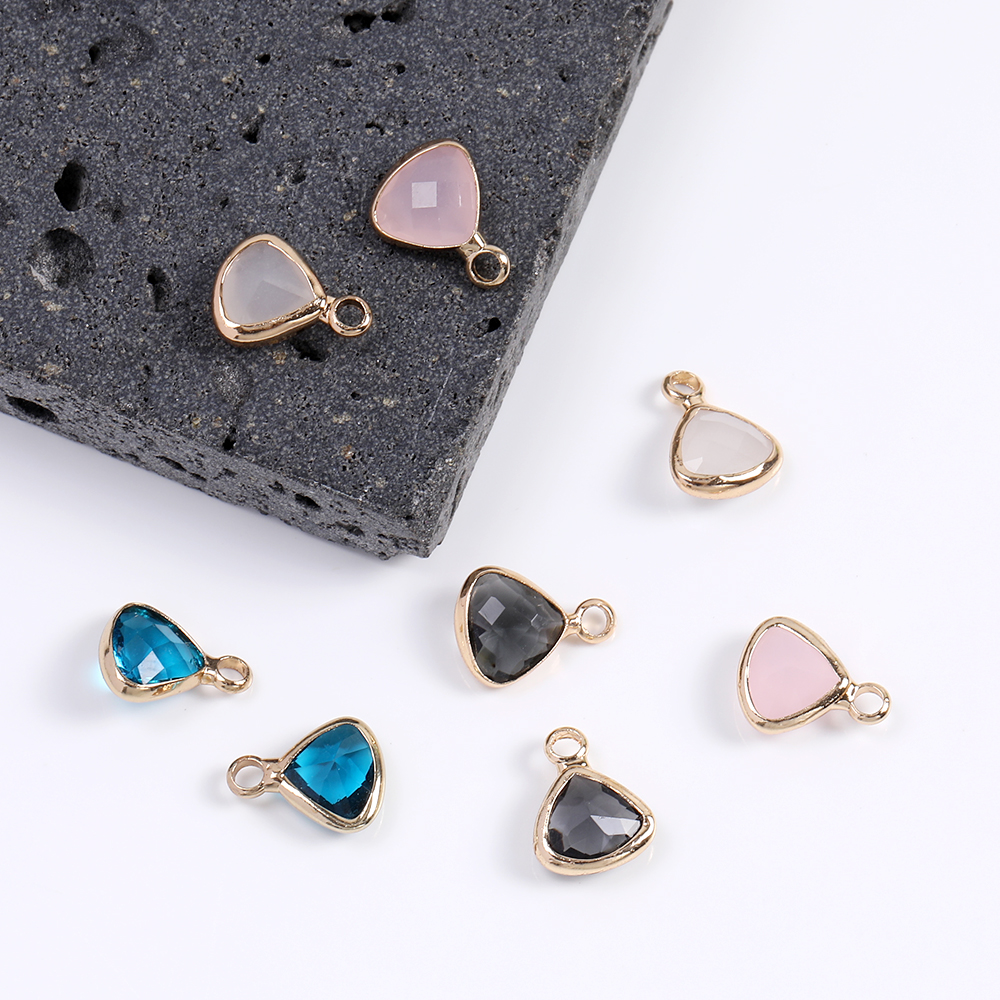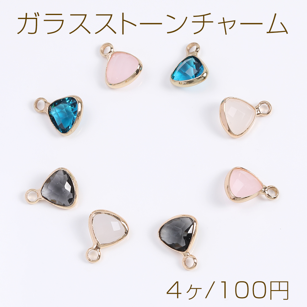 ガラスストーンチャーム 三角形 8×10mm ゴールド(4ヶ)