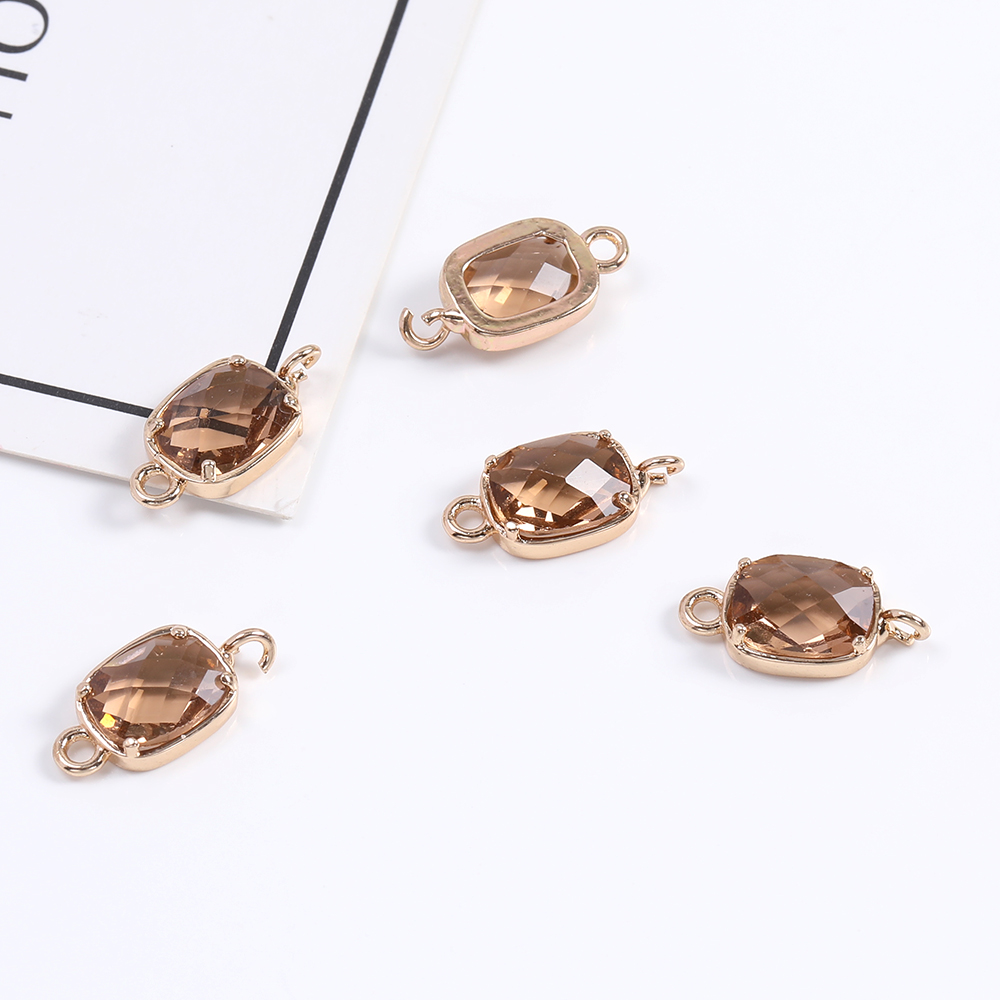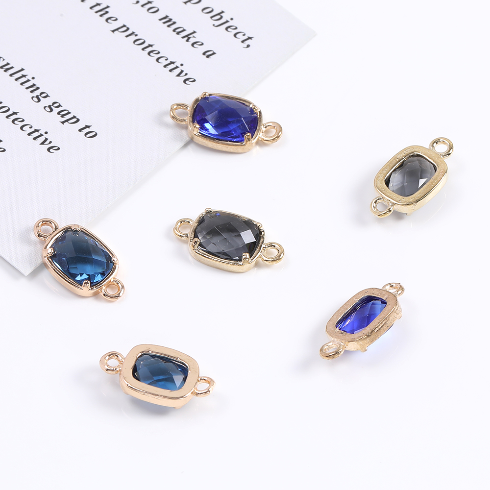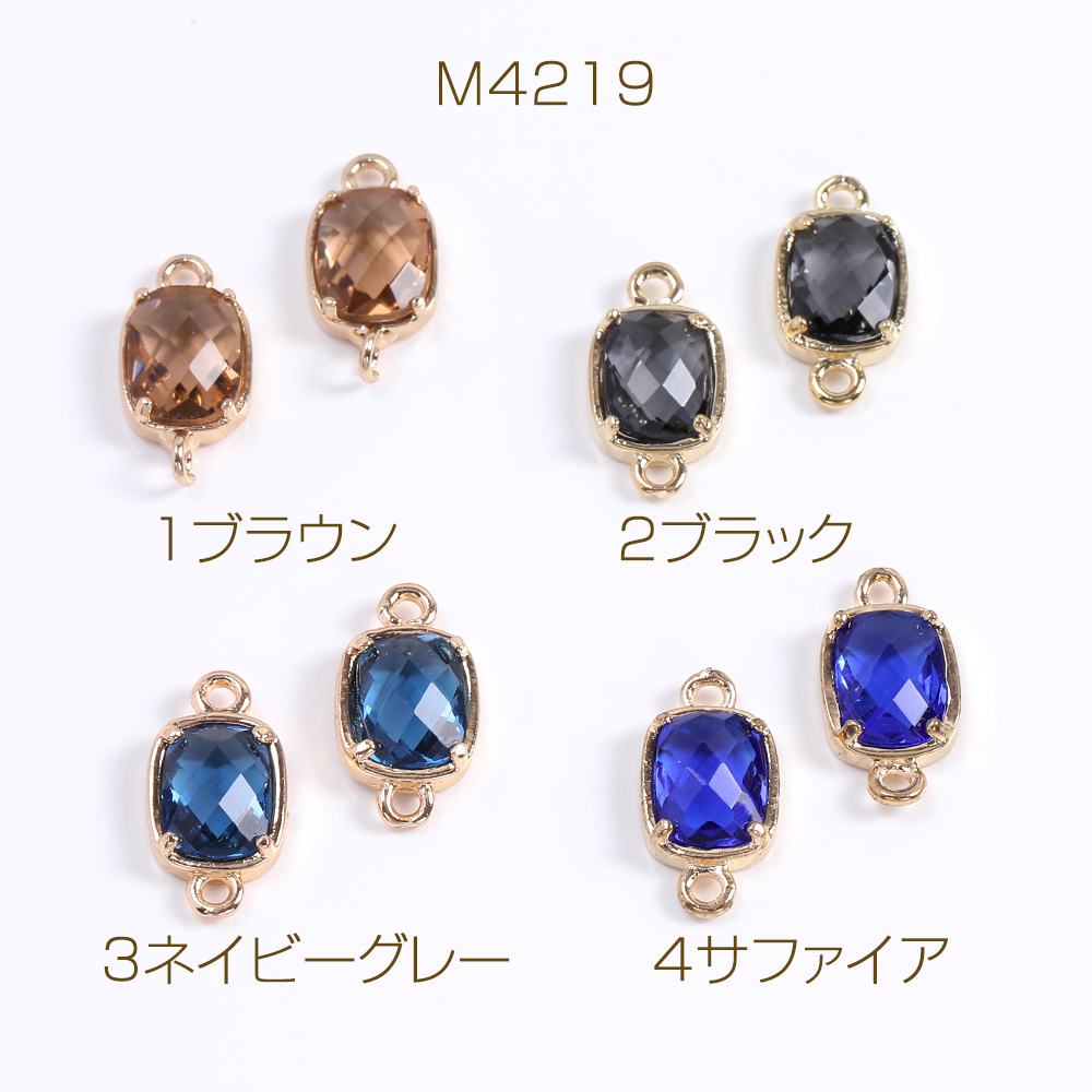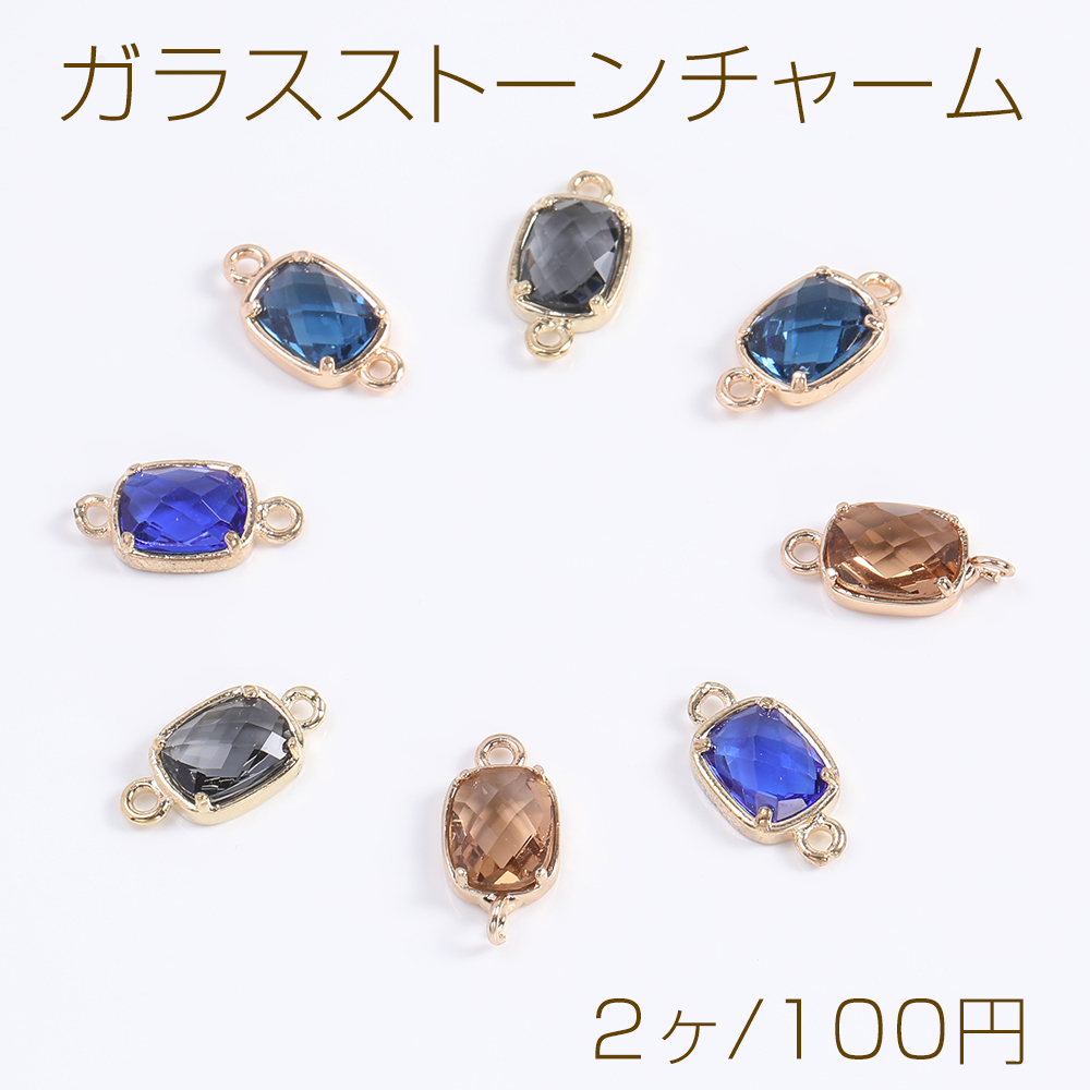 ガラスストーンチャーム コネクターチャーム 長方形型 2カン付き 8×15mm ゴールド(2ヶ)