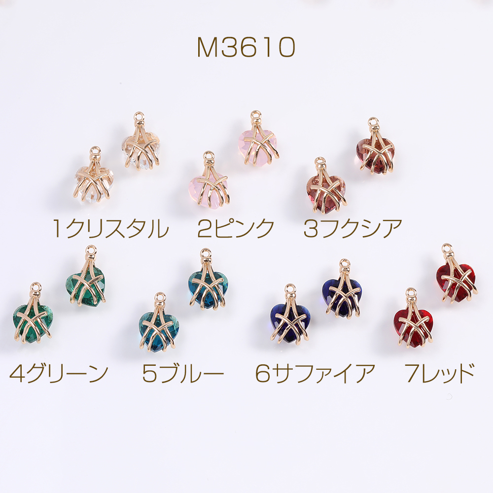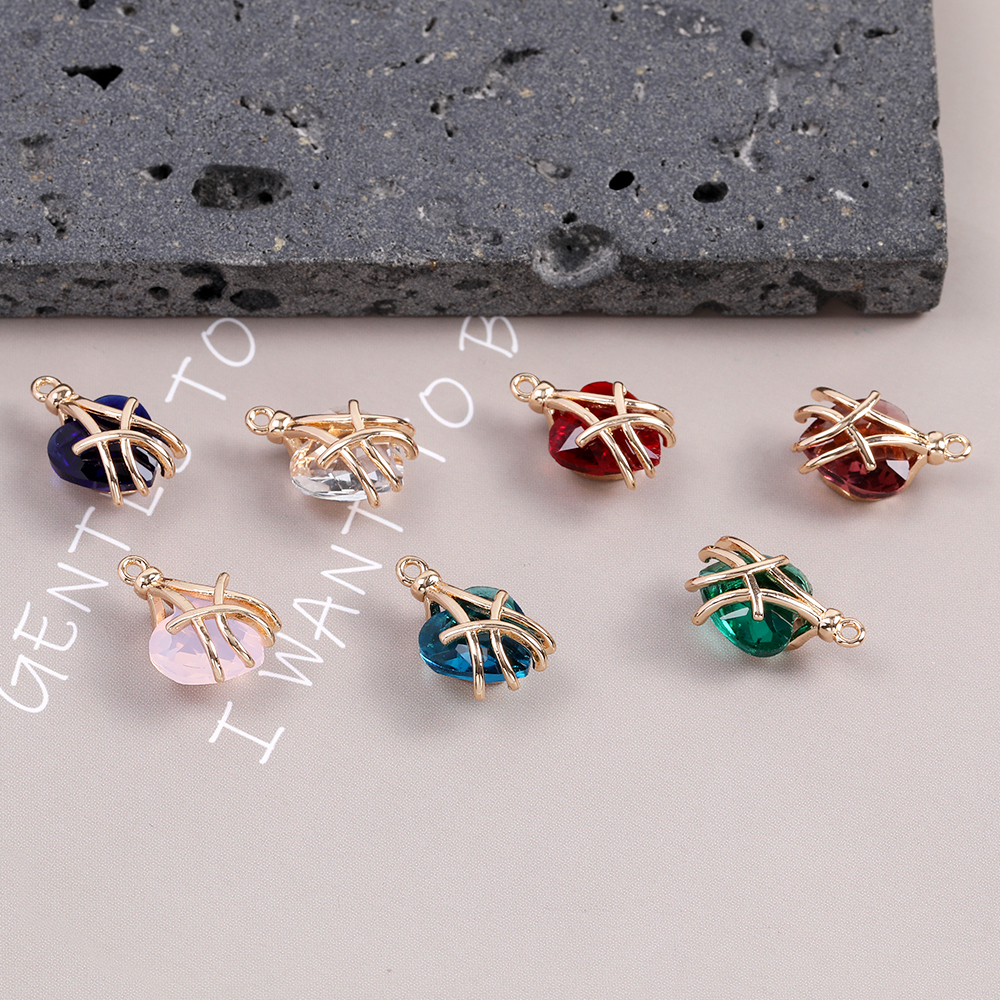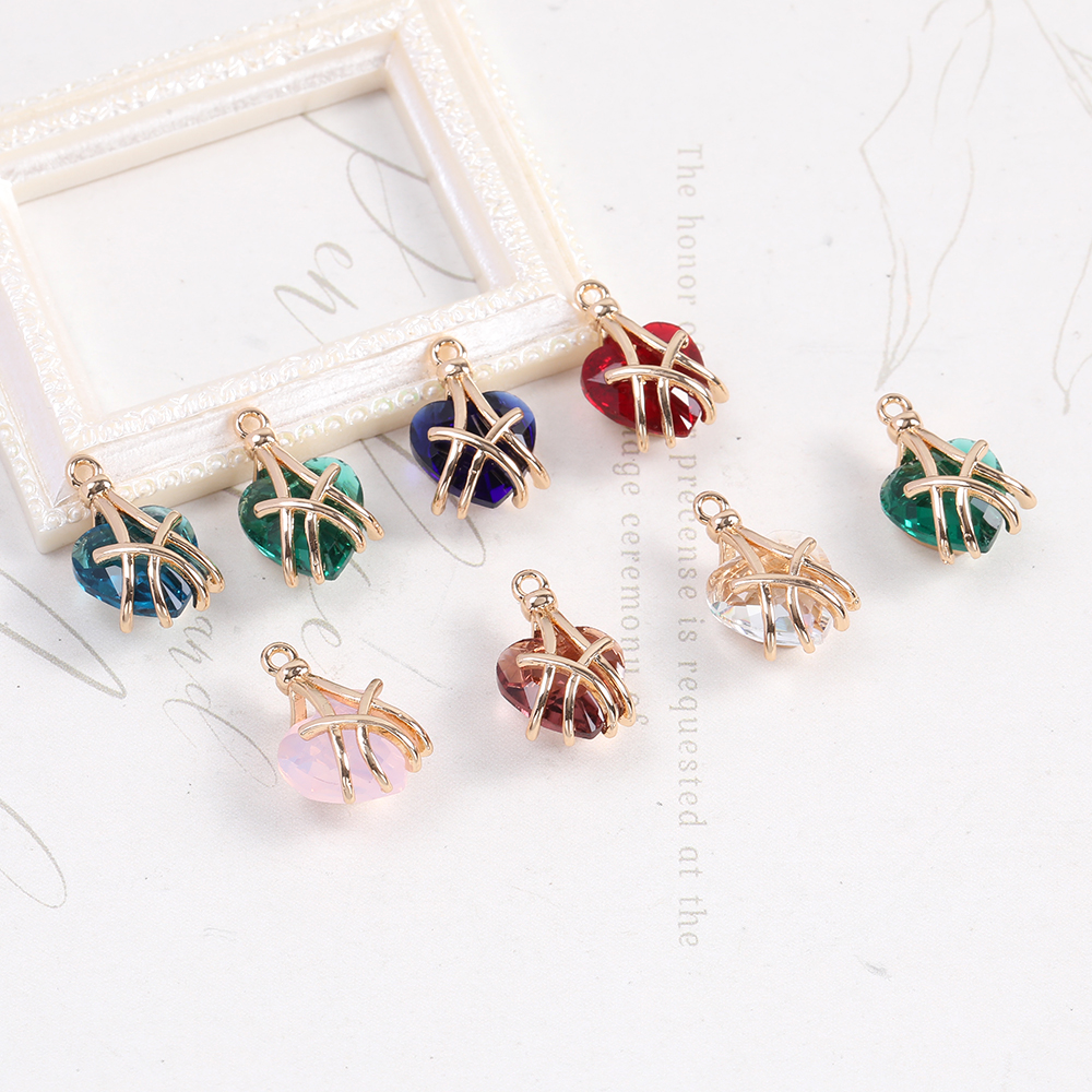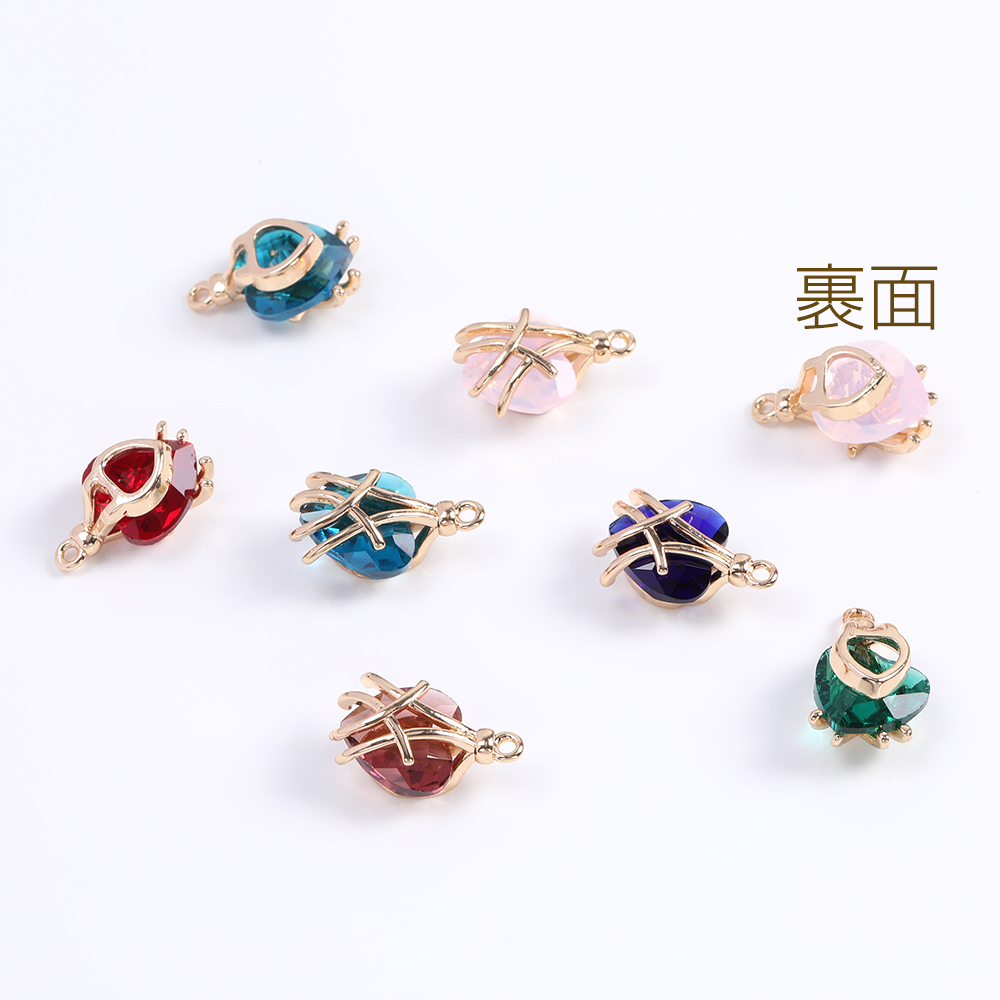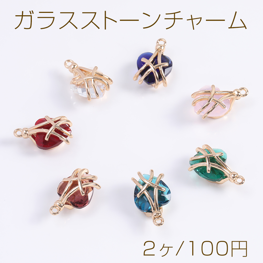 ガラスストーンチャーム ハート型 10×17mm ゴールド(2ヶ)
