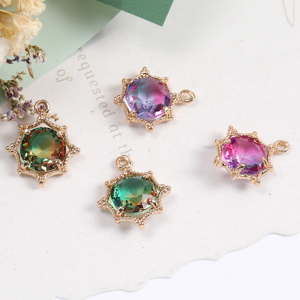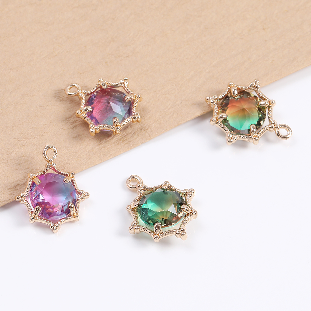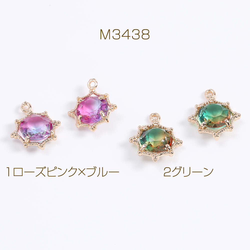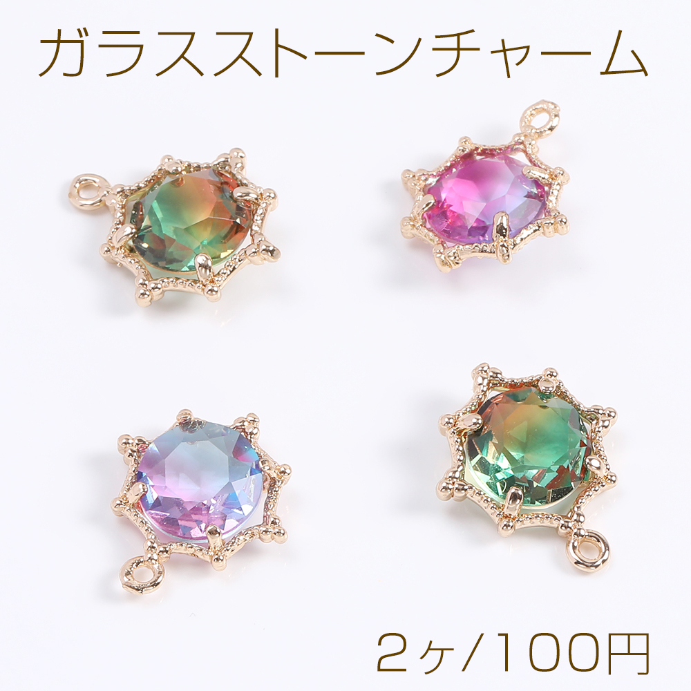 ガラスストーンチャーム 太陽の花 8×12mm ゴールド(2ヶ)