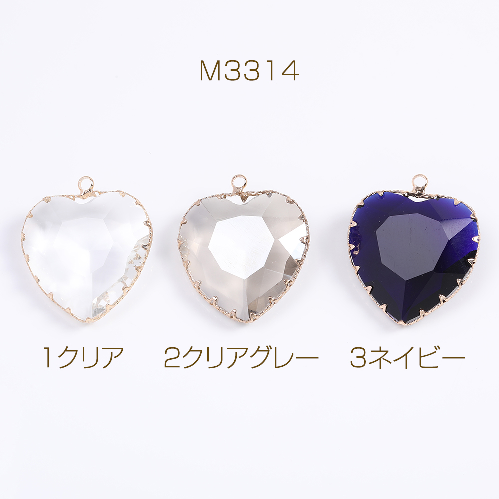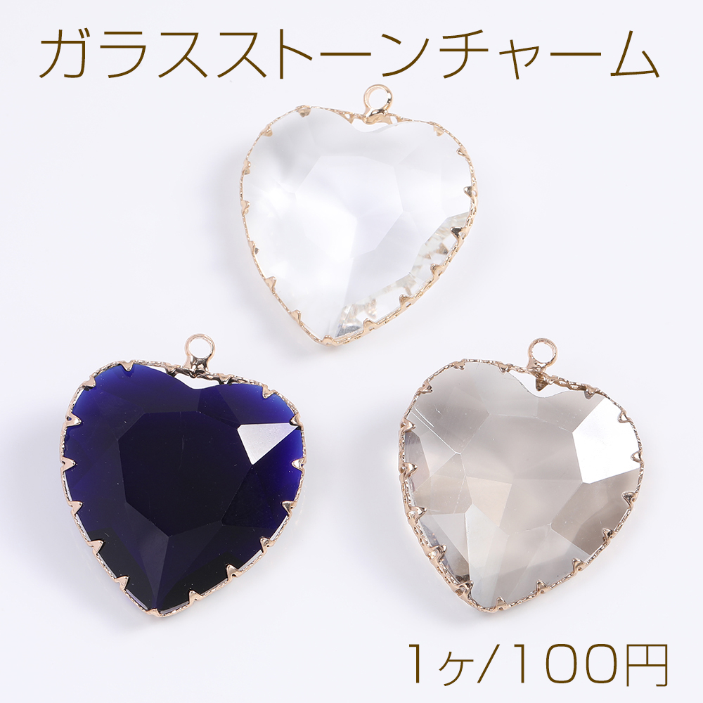 ガラスストーンチャーム ハート型 26×27mm ゴールド(1ヶ)