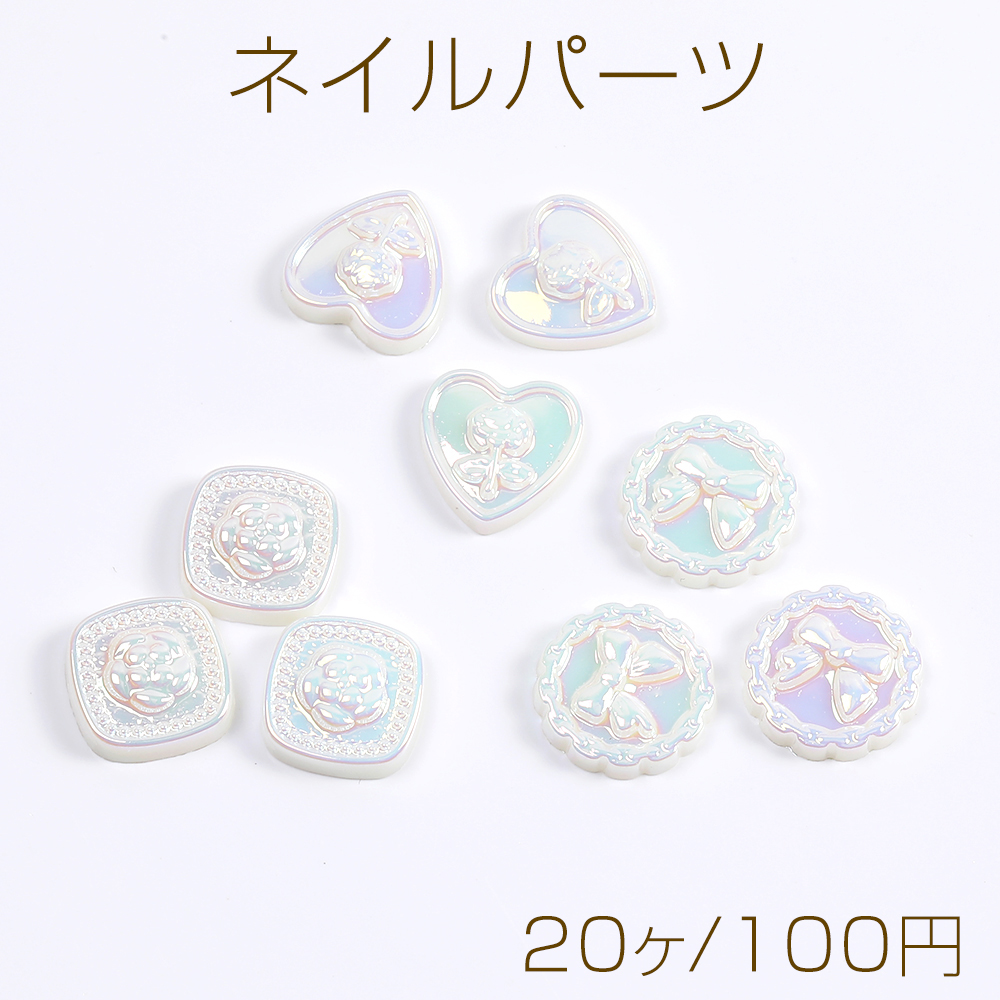 アクリル製貼付けパーツ アクリルカボション デコレーションパーツ オーロラカラーホワイト(20ヶ)