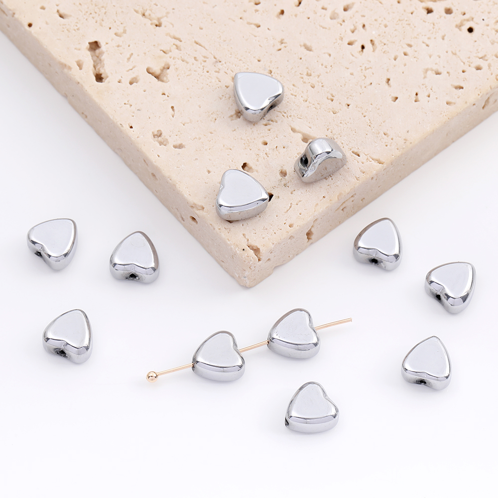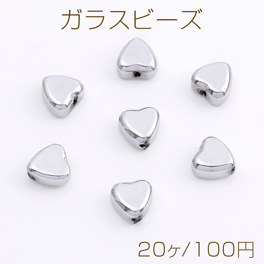 メッキガラスビーズ ハート型 8×8mm ロジウム(20ヶ)