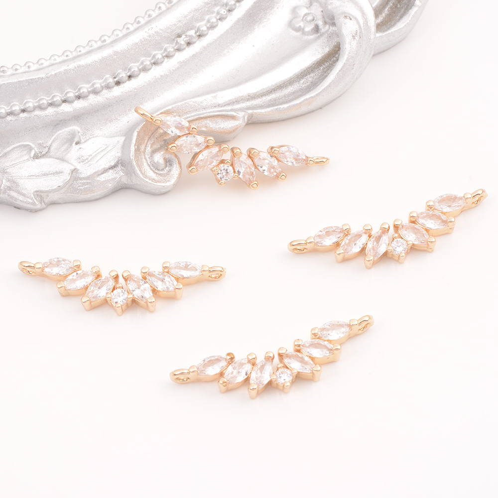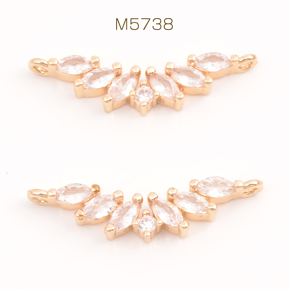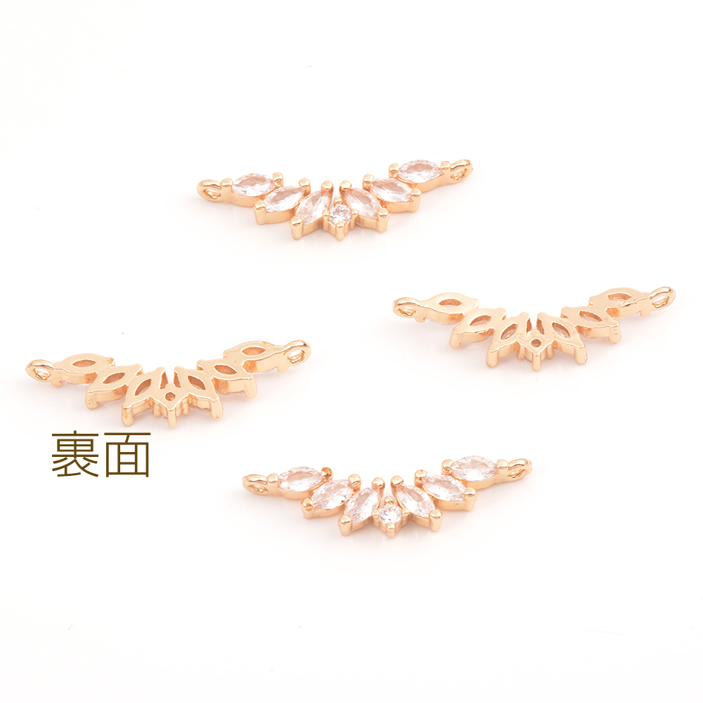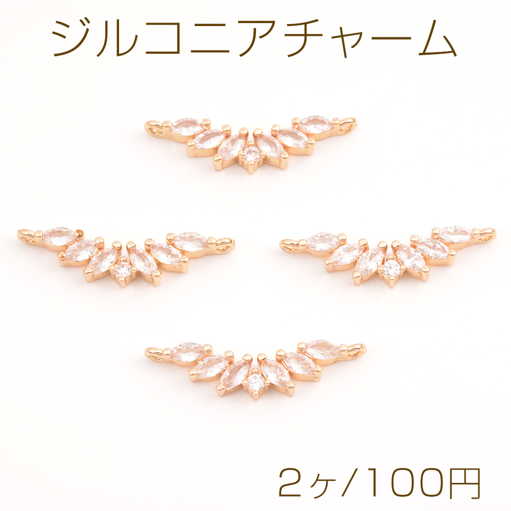 高品質ジルコニアチャーム コネクターチャーム 2カン付き 8×27mm ゴールド(2ヶ)